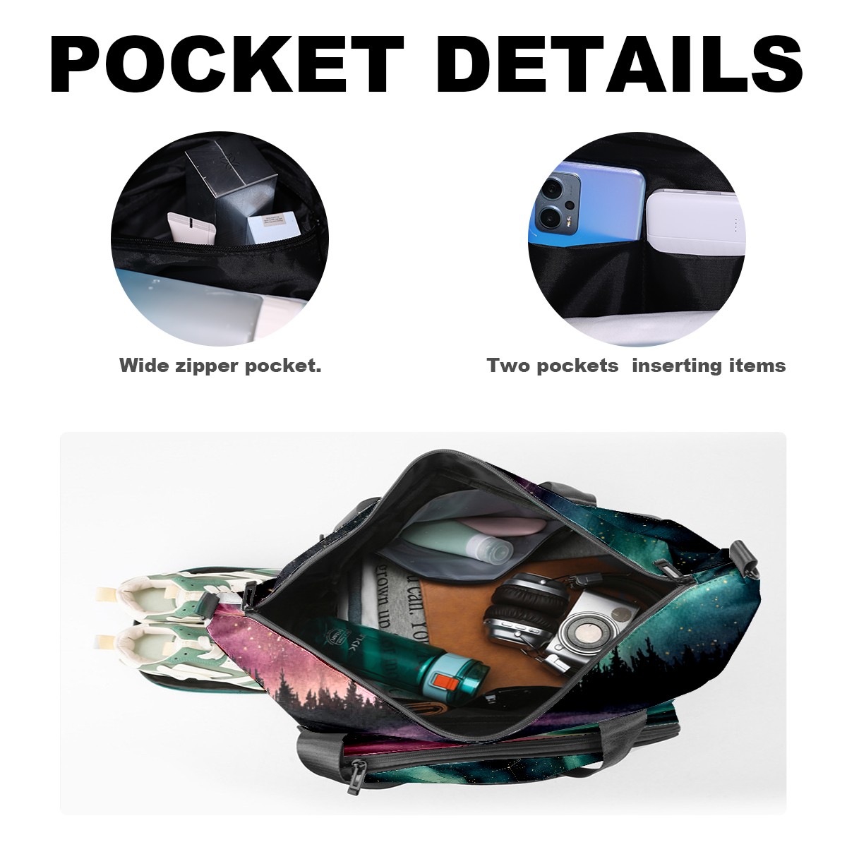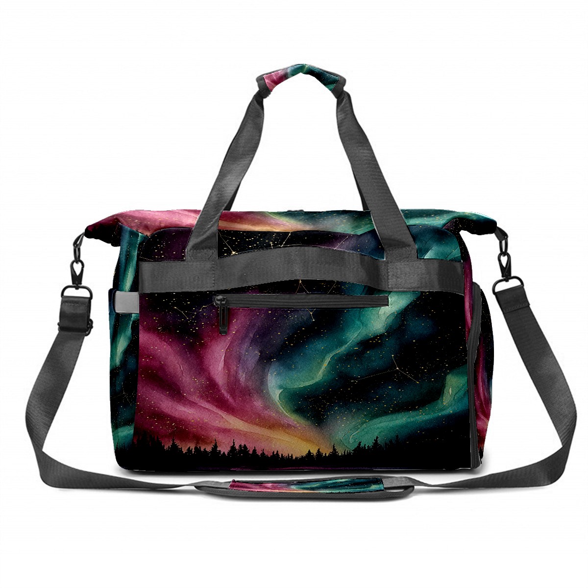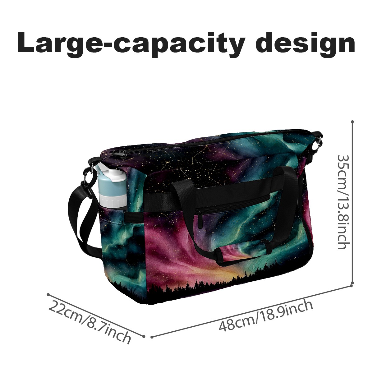 Counullo Dreamy Aurora Blue Gym Bag for Women & Tennis Bag, Large Sports Duffel Bag Waterproof with Ventilated Shoe Compartment & Front Racket Sleeve, Lightweight Travel Weekender Overnight Bag