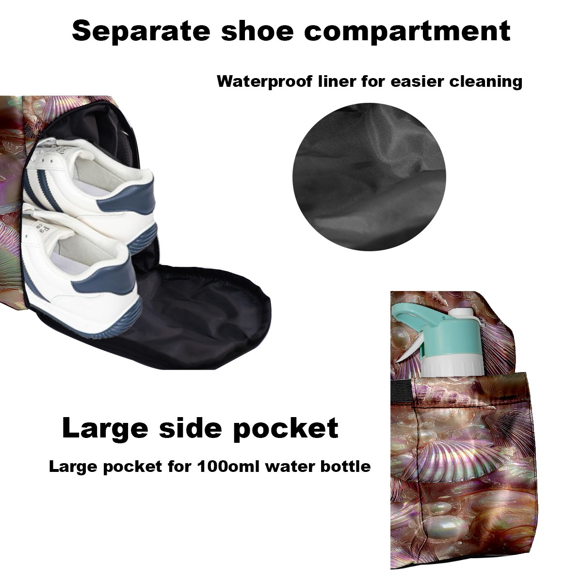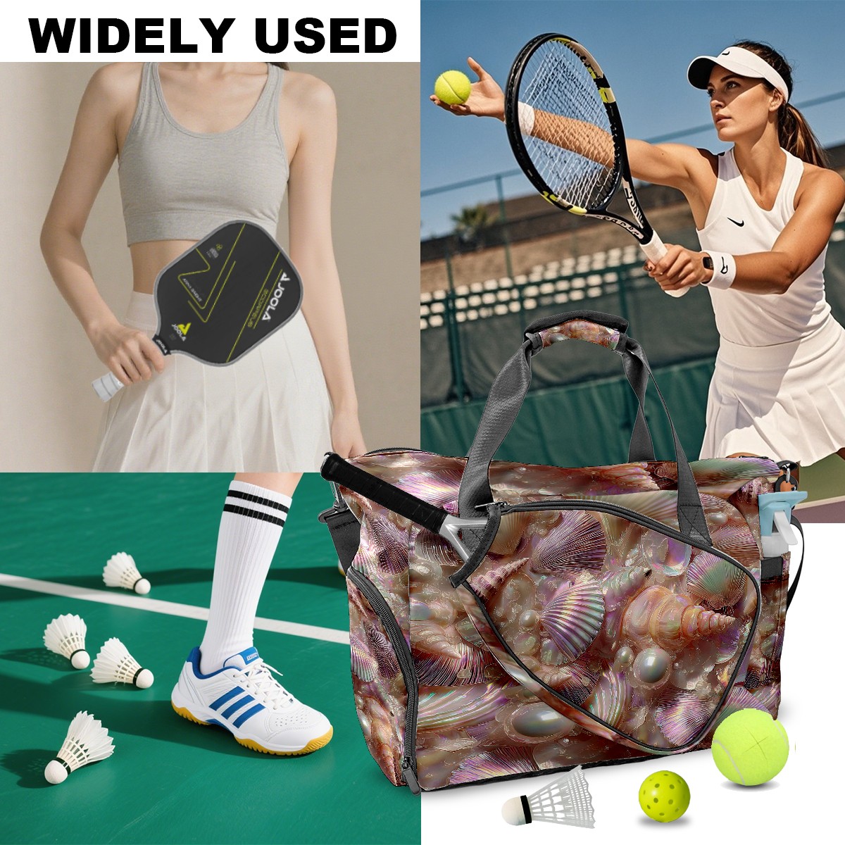 Counullo Gentle Shell Pink Gym Bag for Women & Tennis Bag, Large Sports Duffel Bag Waterproof with Ventilated Shoe Compartment & Front Racket Sleeve, Lightweight Travel Weekender Overnight Bag
