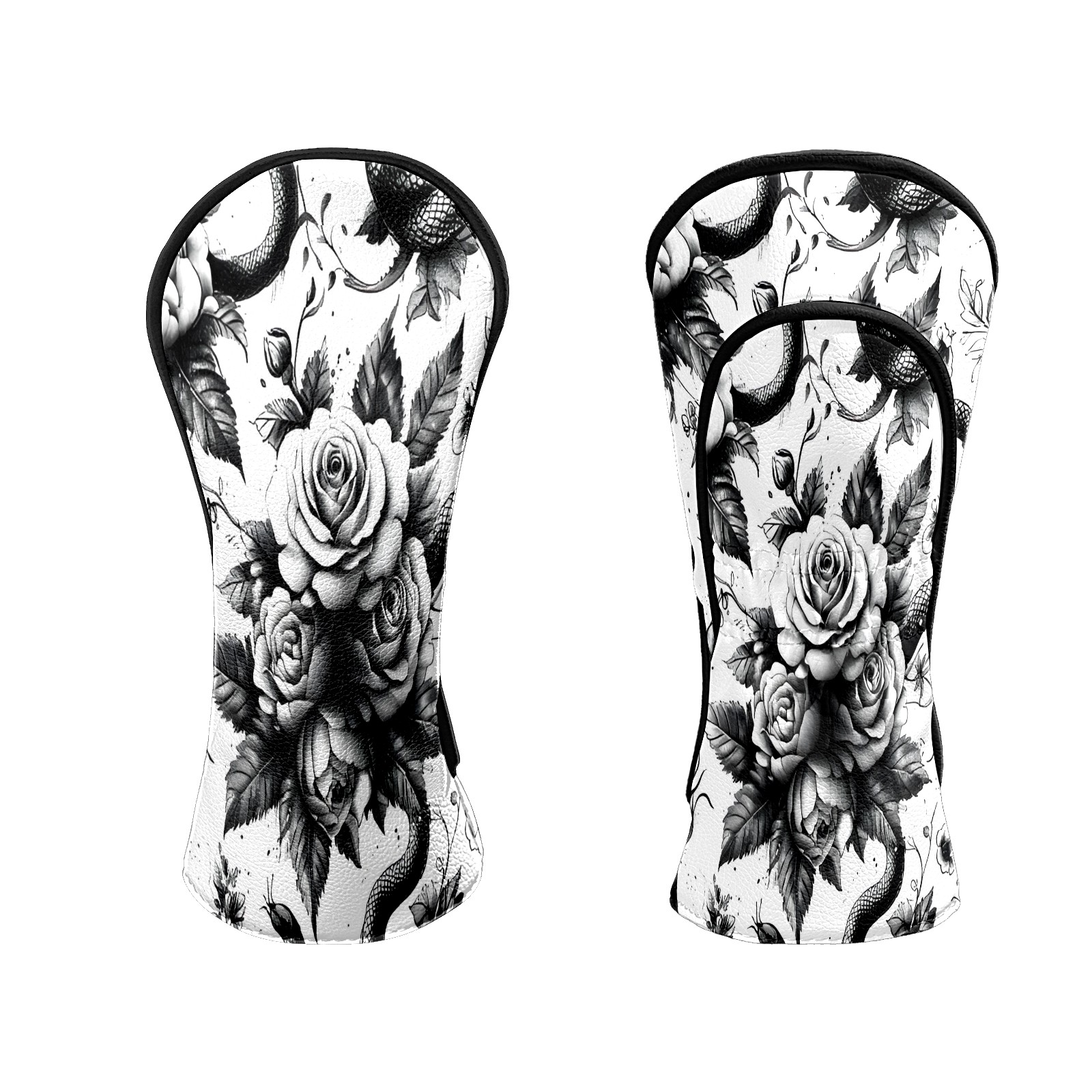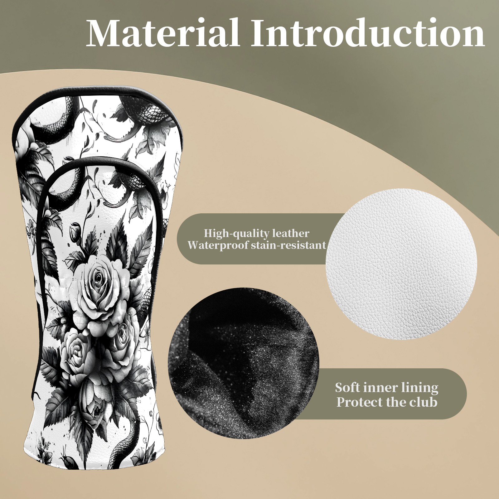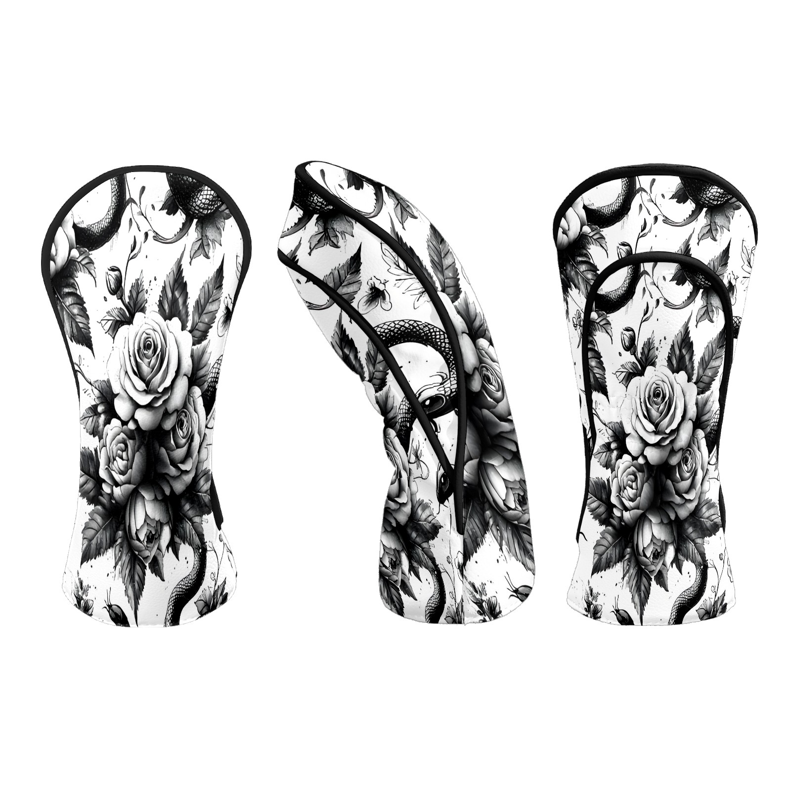 Golf Club Head Covers BlackWhite RoseSnake Premium Plush Velvet Lining, Waterproof Golf Headcovers Driver & Fairway Woods for Scratch Protection Novelty Gift for Men & Women