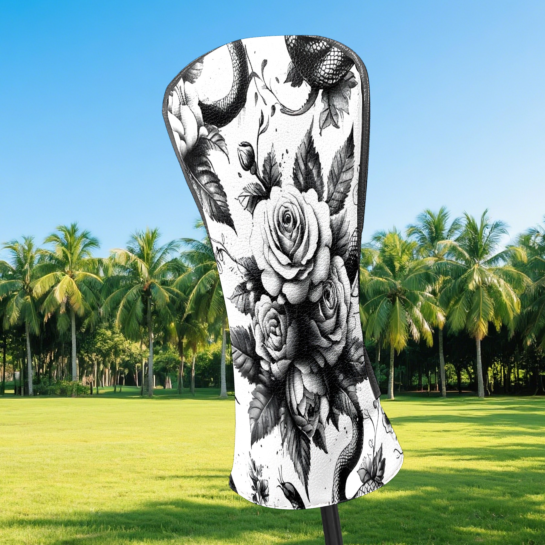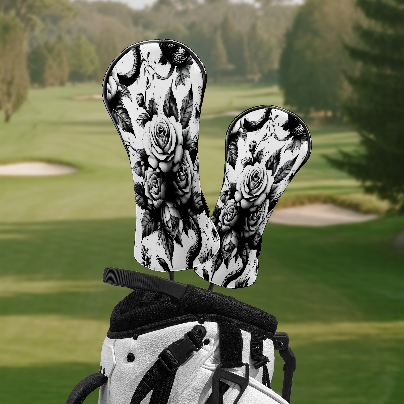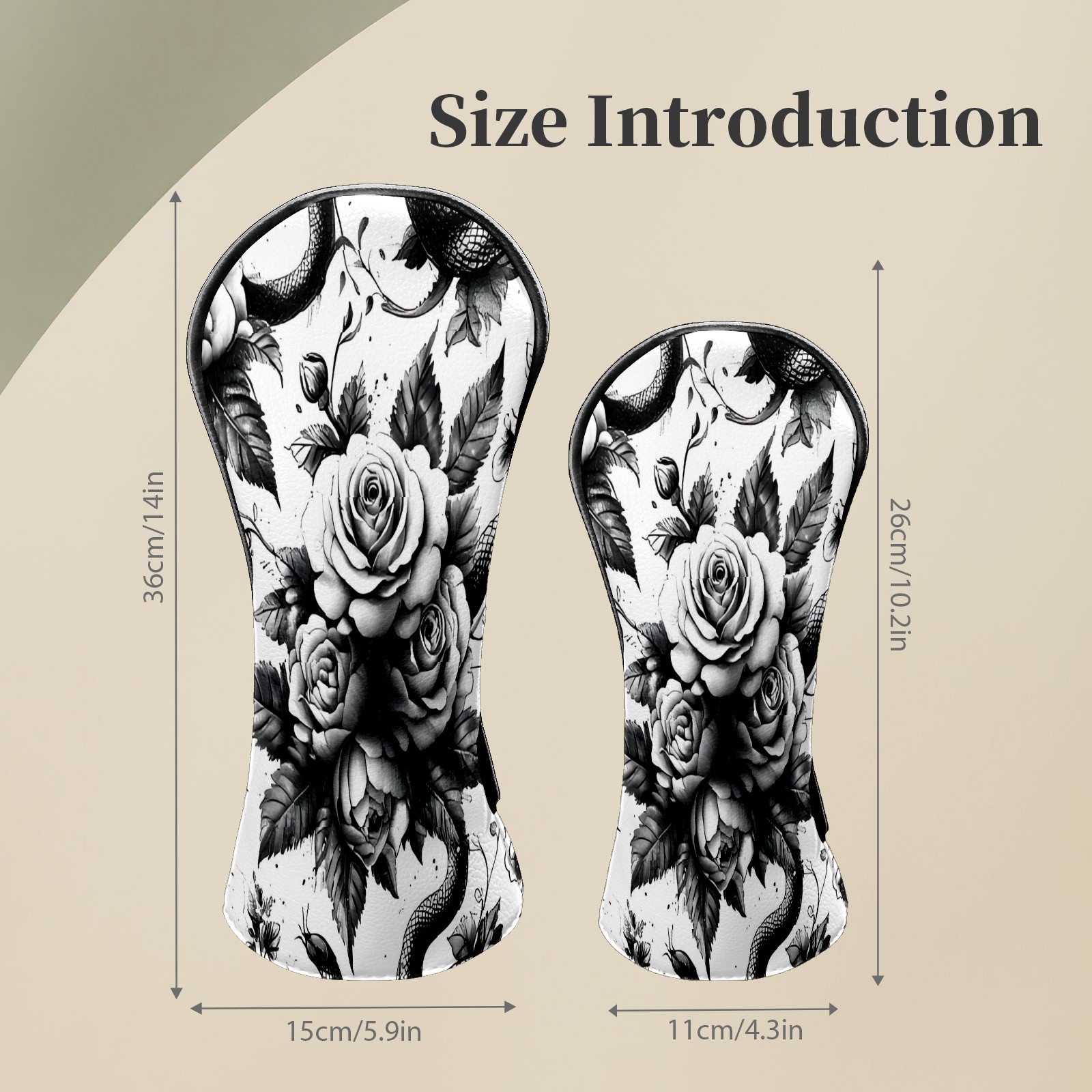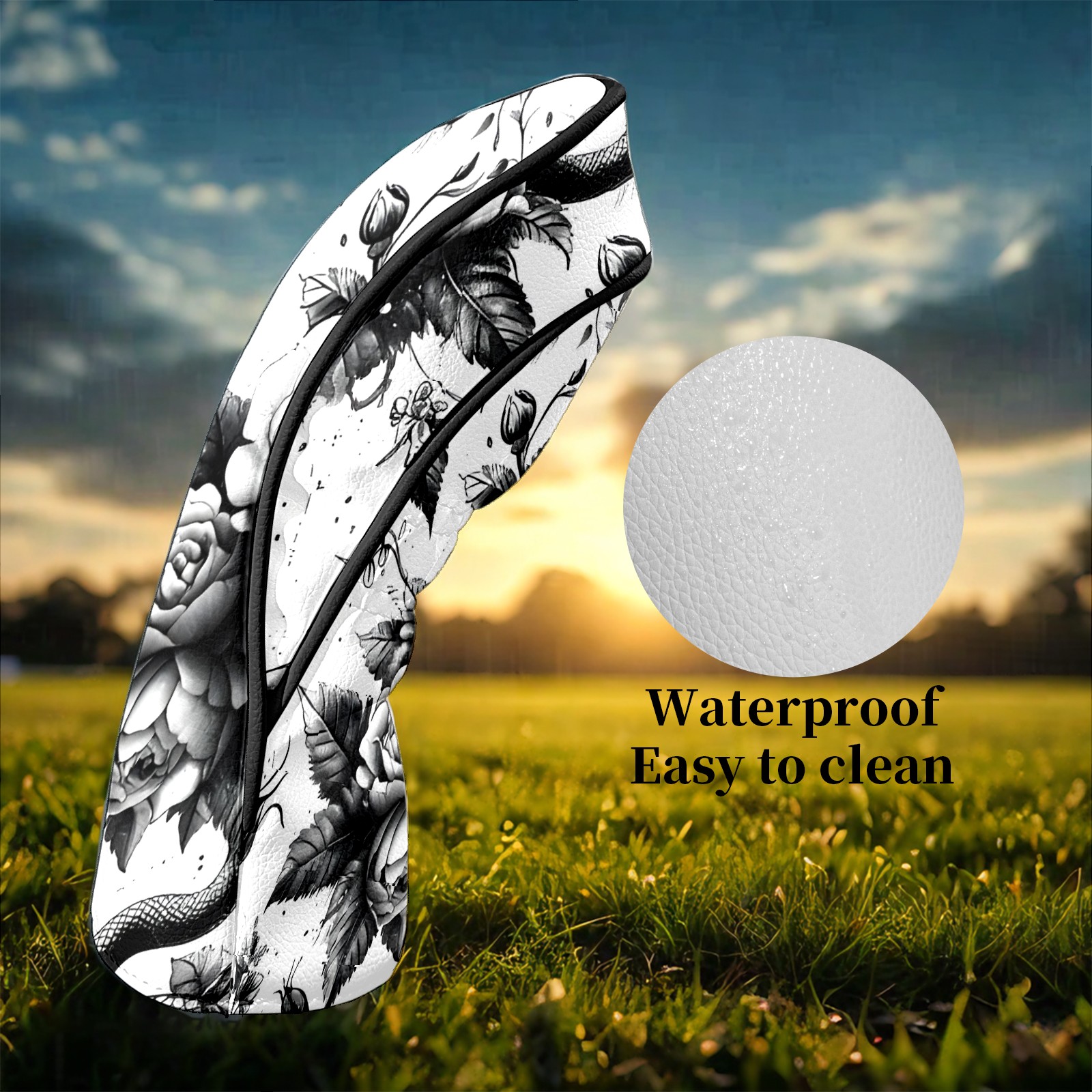 Golf Club Head Covers BlackWhite RoseSnake Premium Plush Velvet Lining, Waterproof Golf Headcovers Driver & Fairway Woods for Scratch Protection Novelty Gift for Men & Women