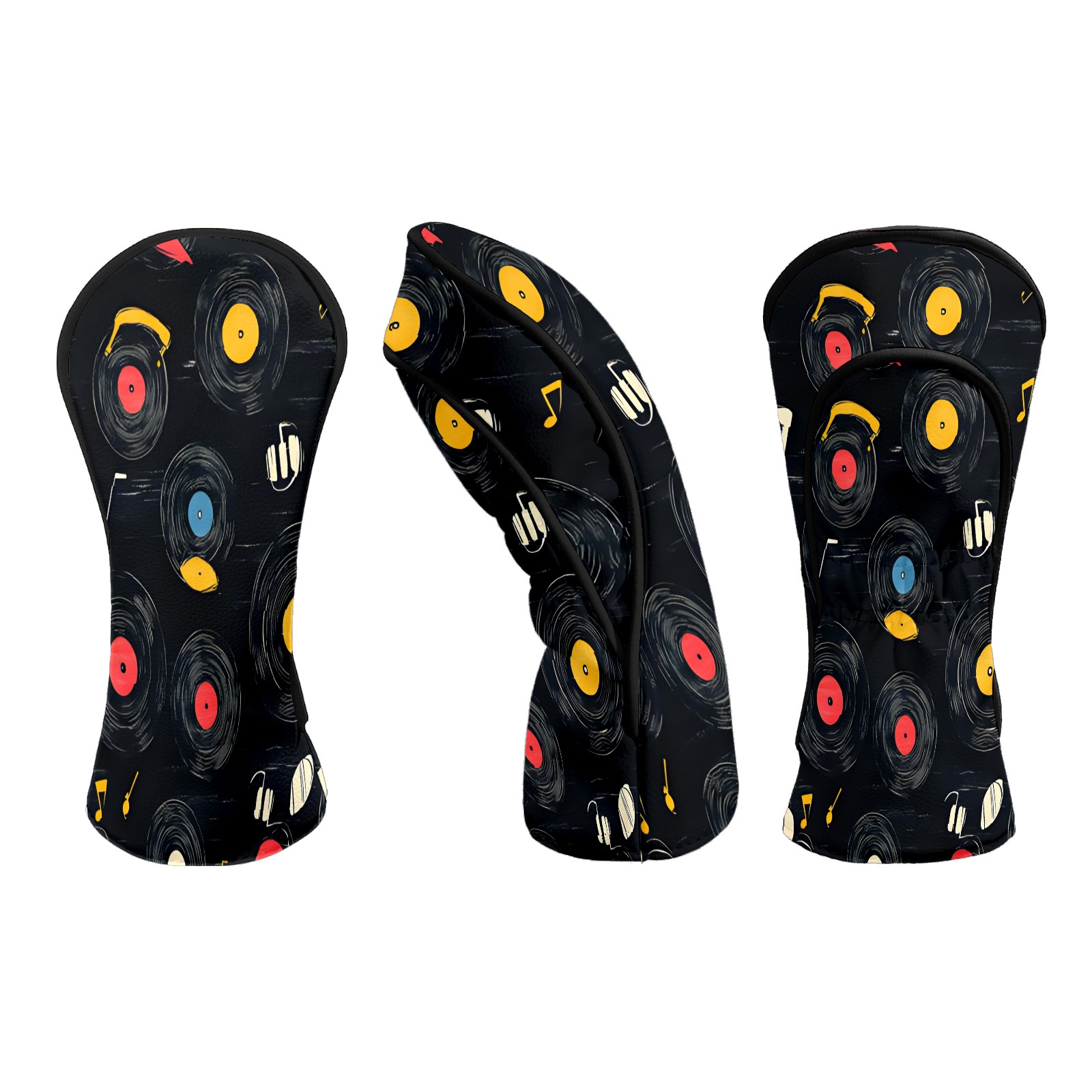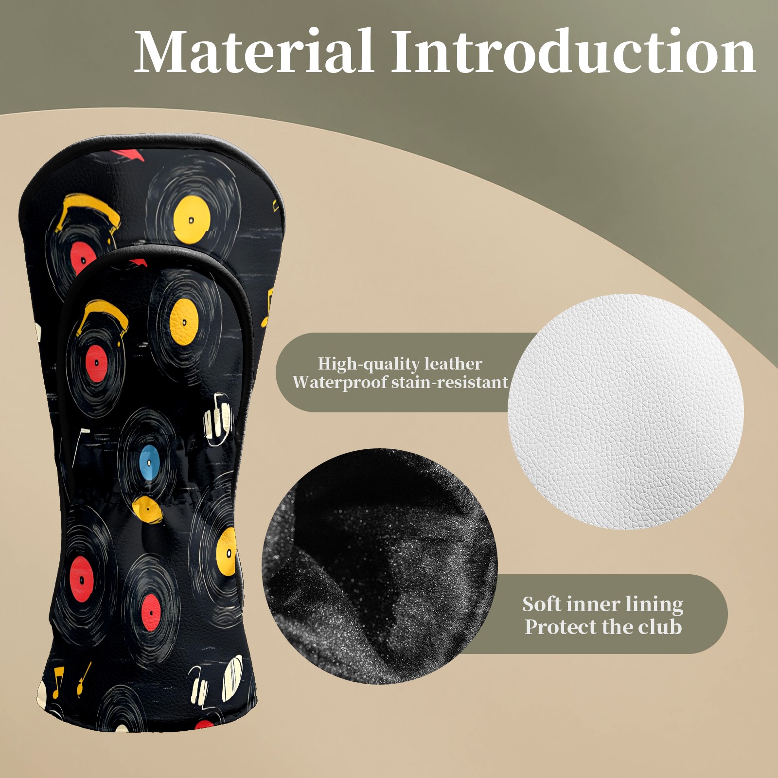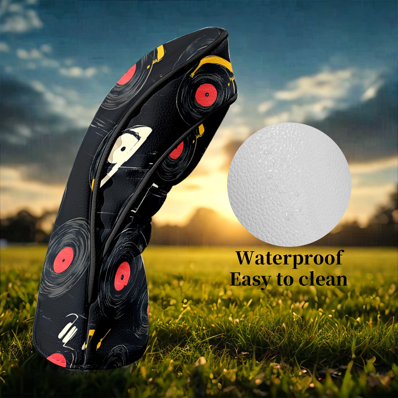 Golf Club Head Covers Black MusicRecord Premium Plush Velvet Lining, Waterproof Golf Headcovers Driver & Fairway Woods for Scratch Protection Novelty Gift for Men & Women