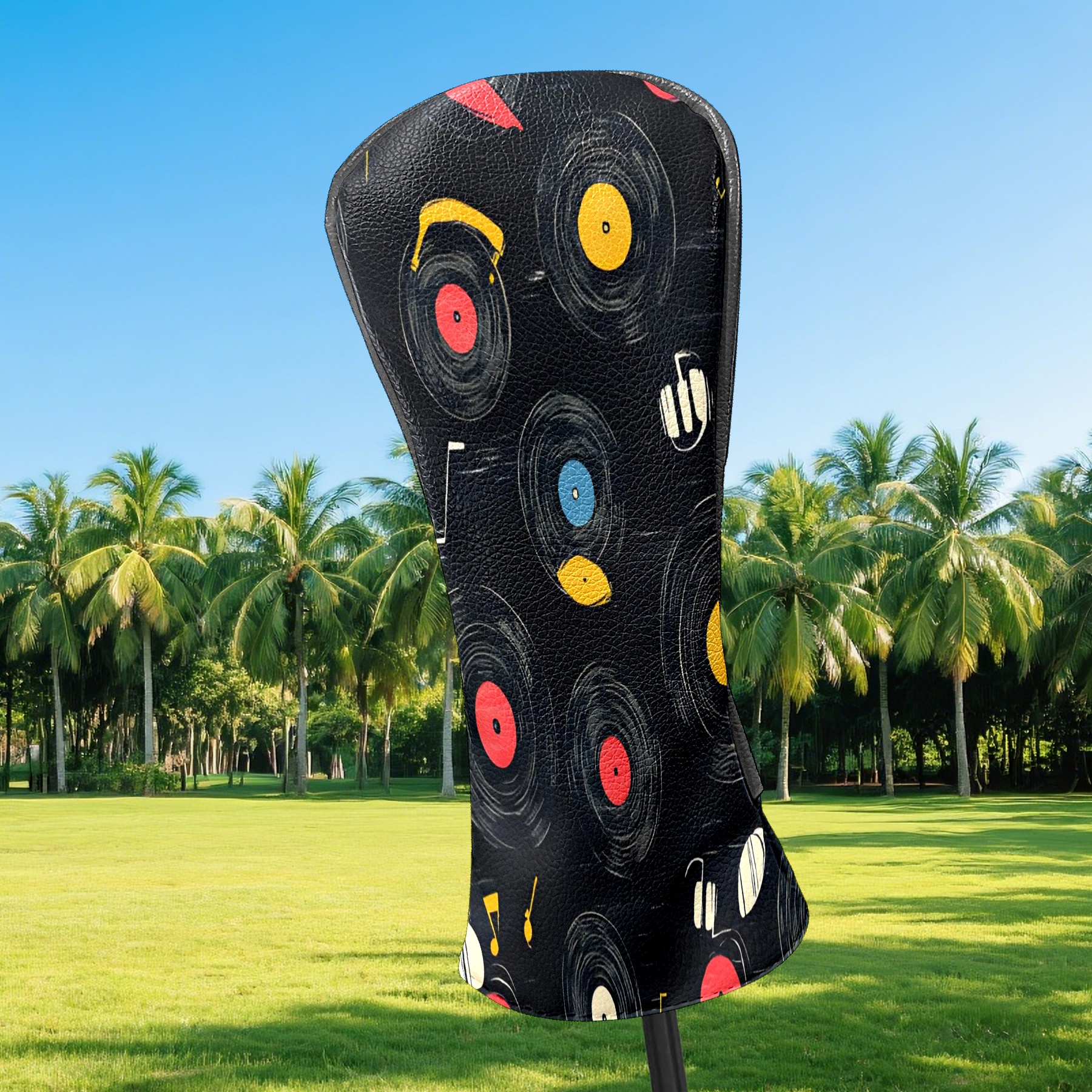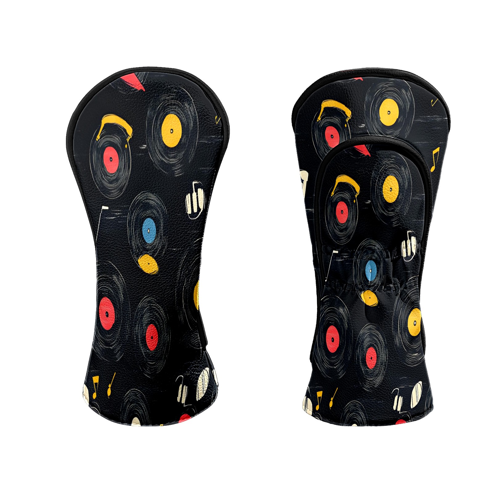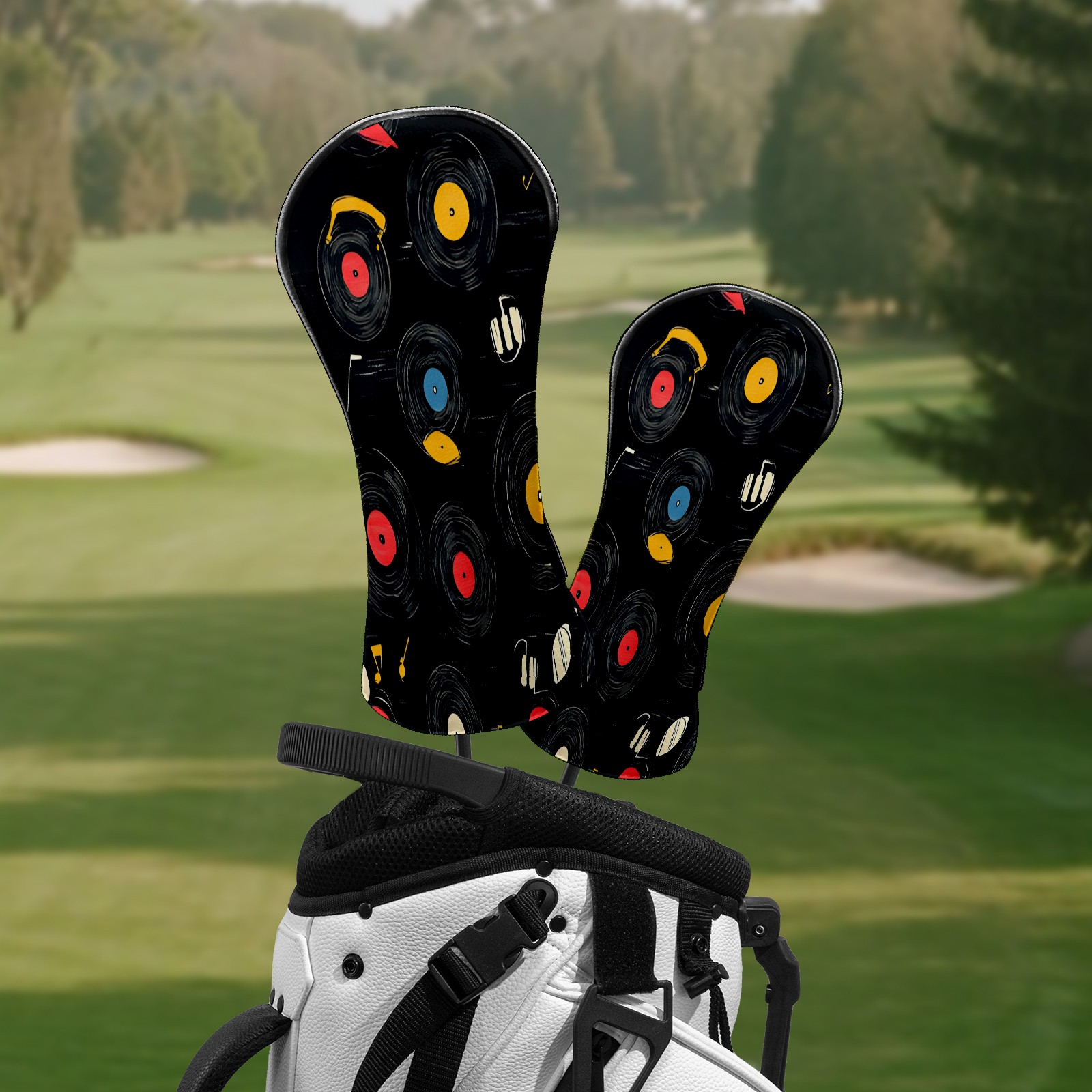 Golf Club Head Covers Black MusicRecord Premium Plush Velvet Lining, Waterproof Golf Headcovers Driver & Fairway Woods for Scratch Protection Novelty Gift for Men & Women