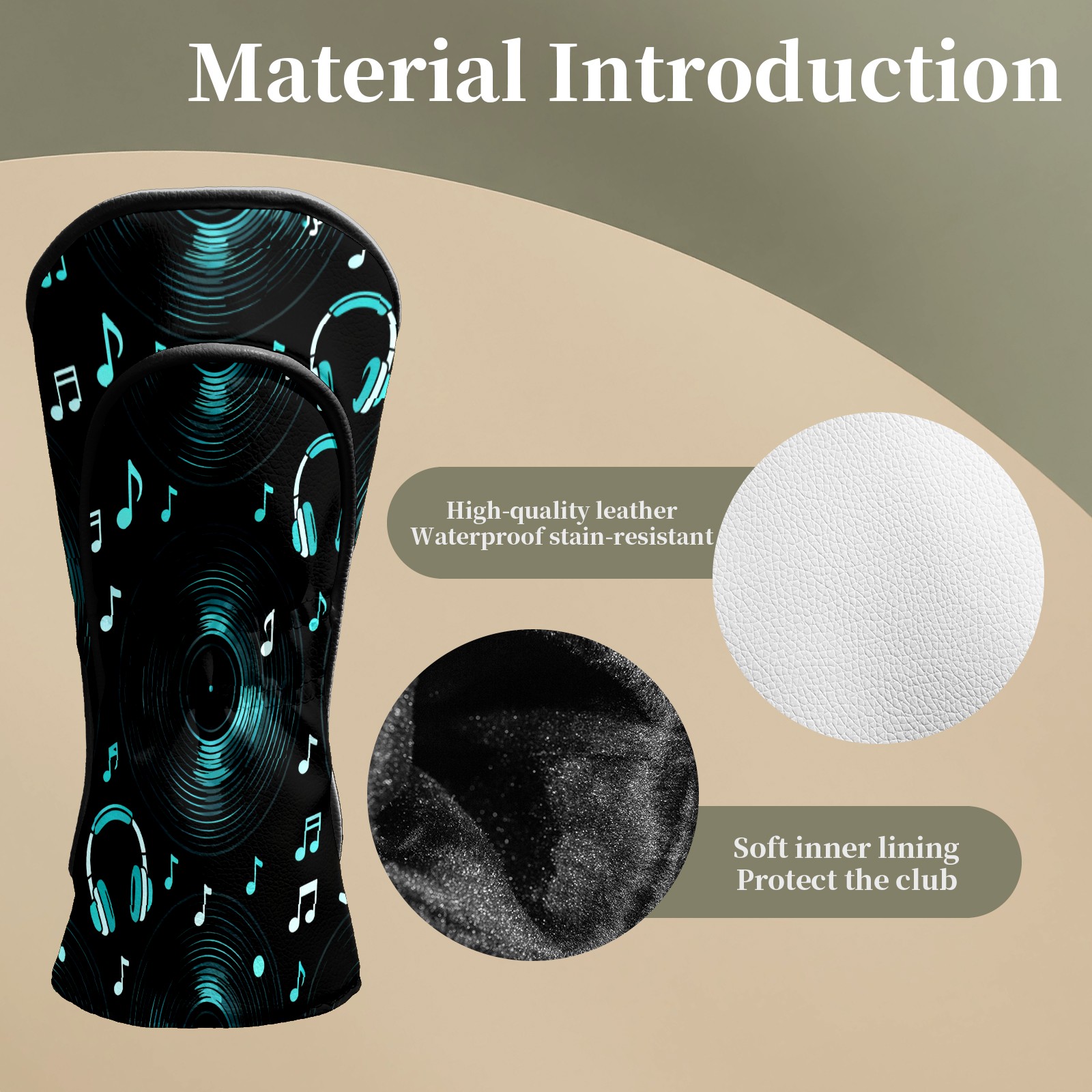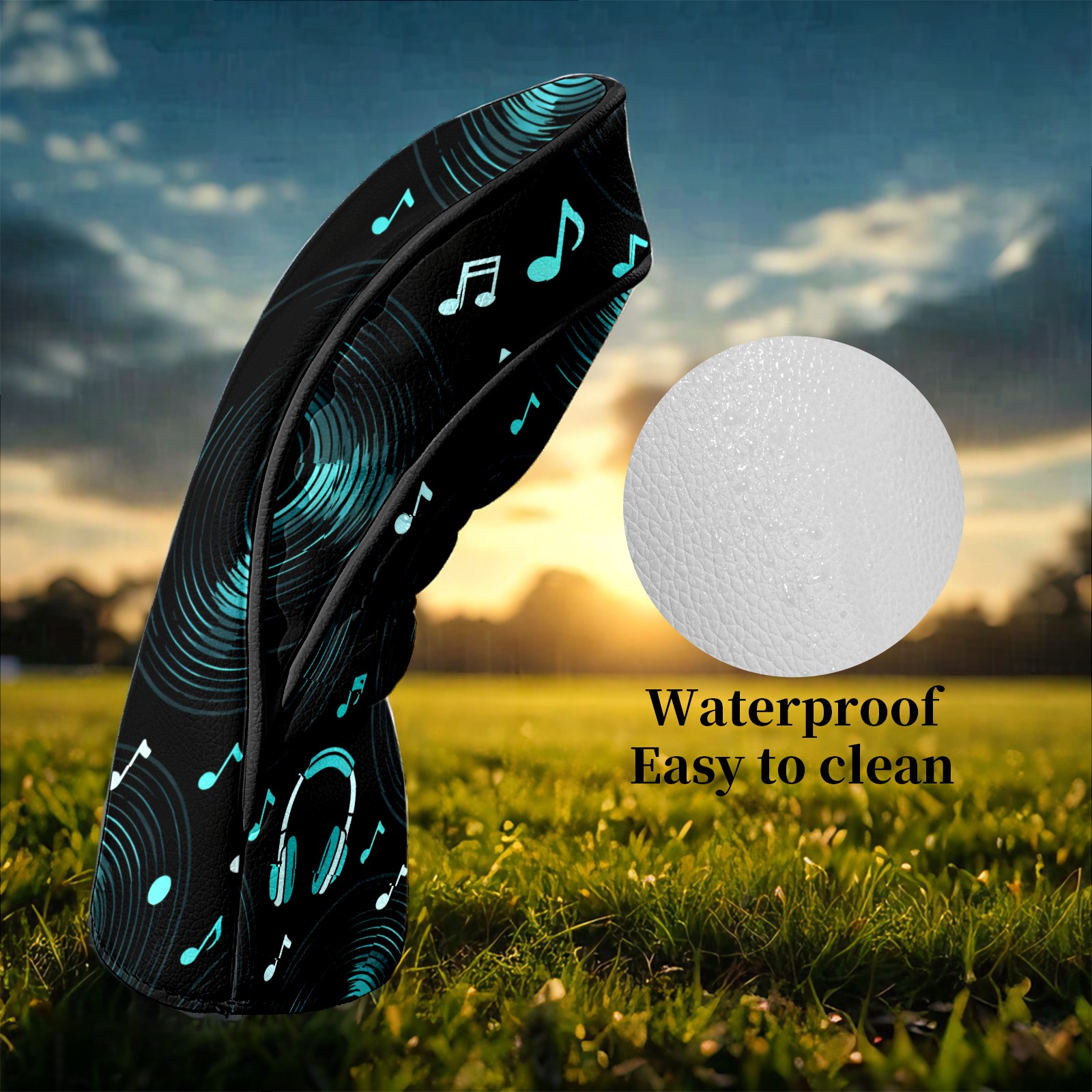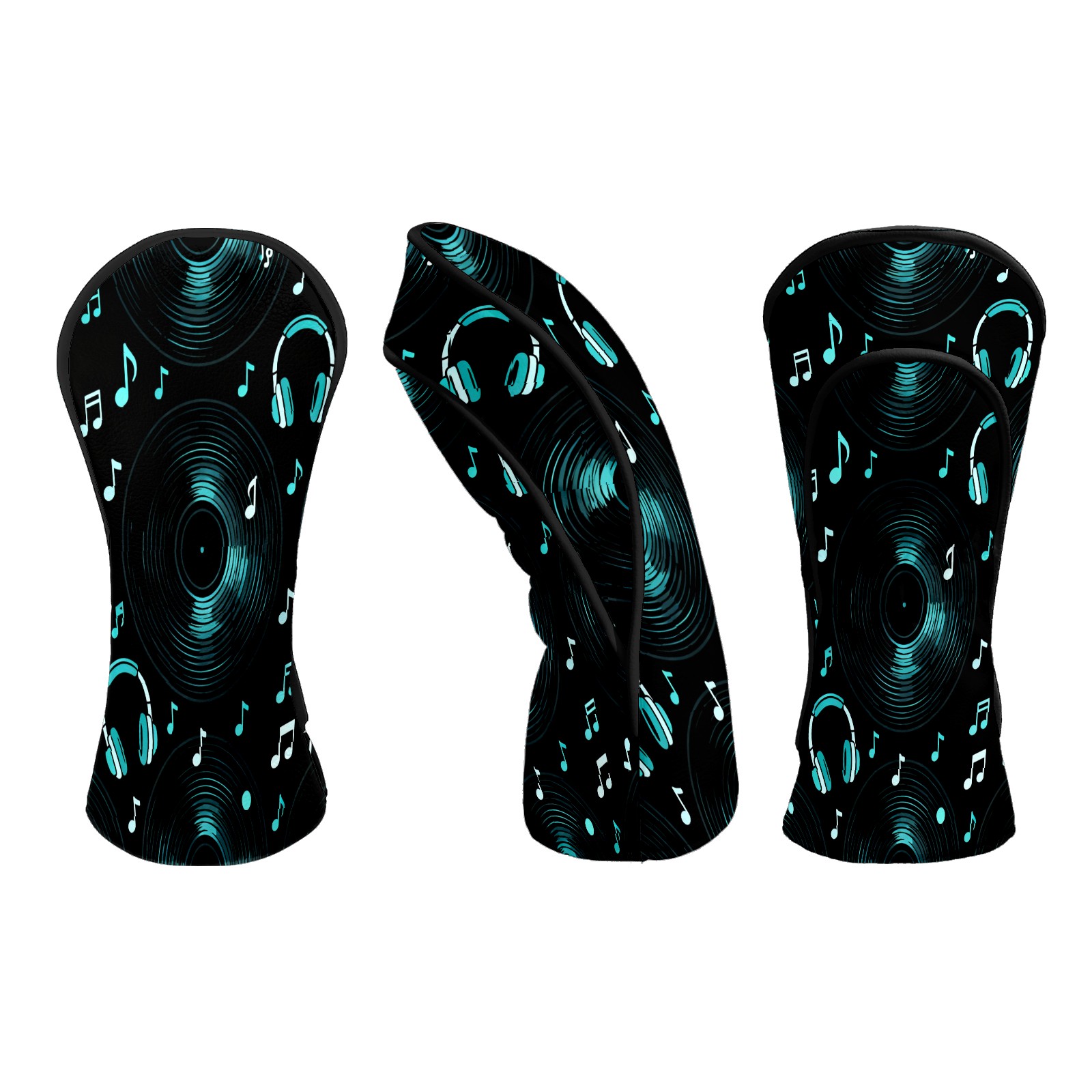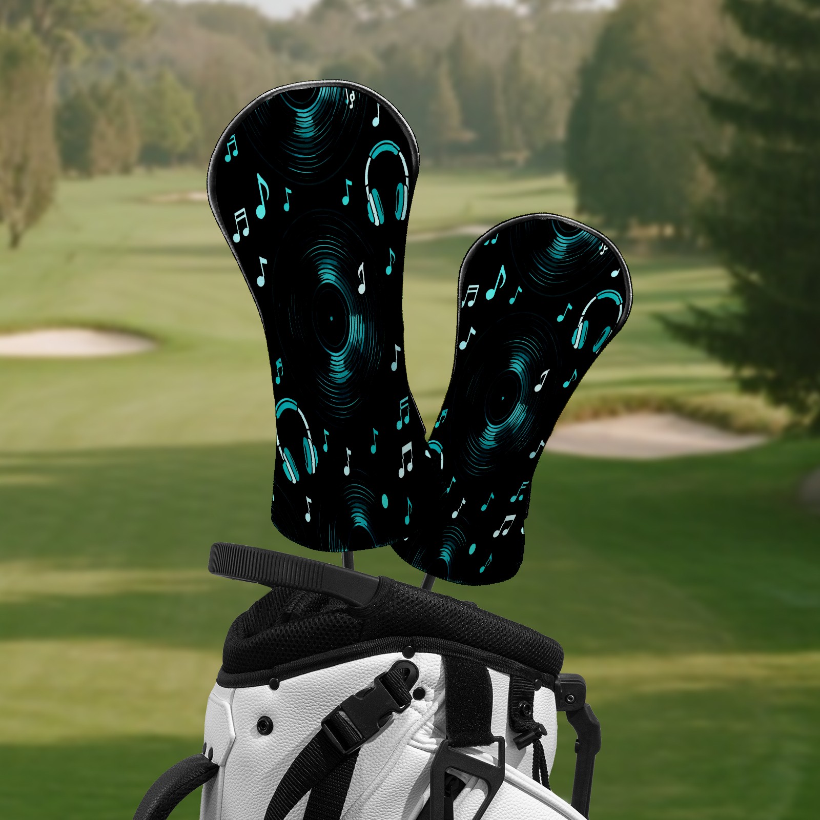Golf Club Head Covers Black MusicHeadphone Premium Plush Velvet Lining, Waterproof Golf Headcovers Driver & Fairway Woods for Scratch Protection Novelty Gift for Men & Women