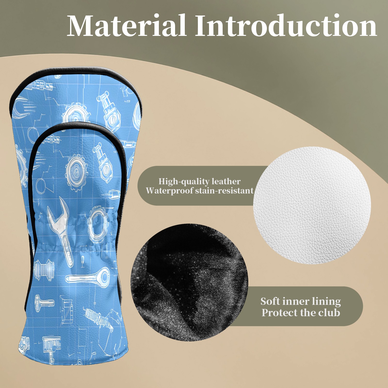 Golf Club Head Covers LightBlue ToolGear Premium Plush Velvet Lining, Waterproof Golf Headcovers Driver & Fairway Woods for Scratch Protection Novelty Gift for Men & Women