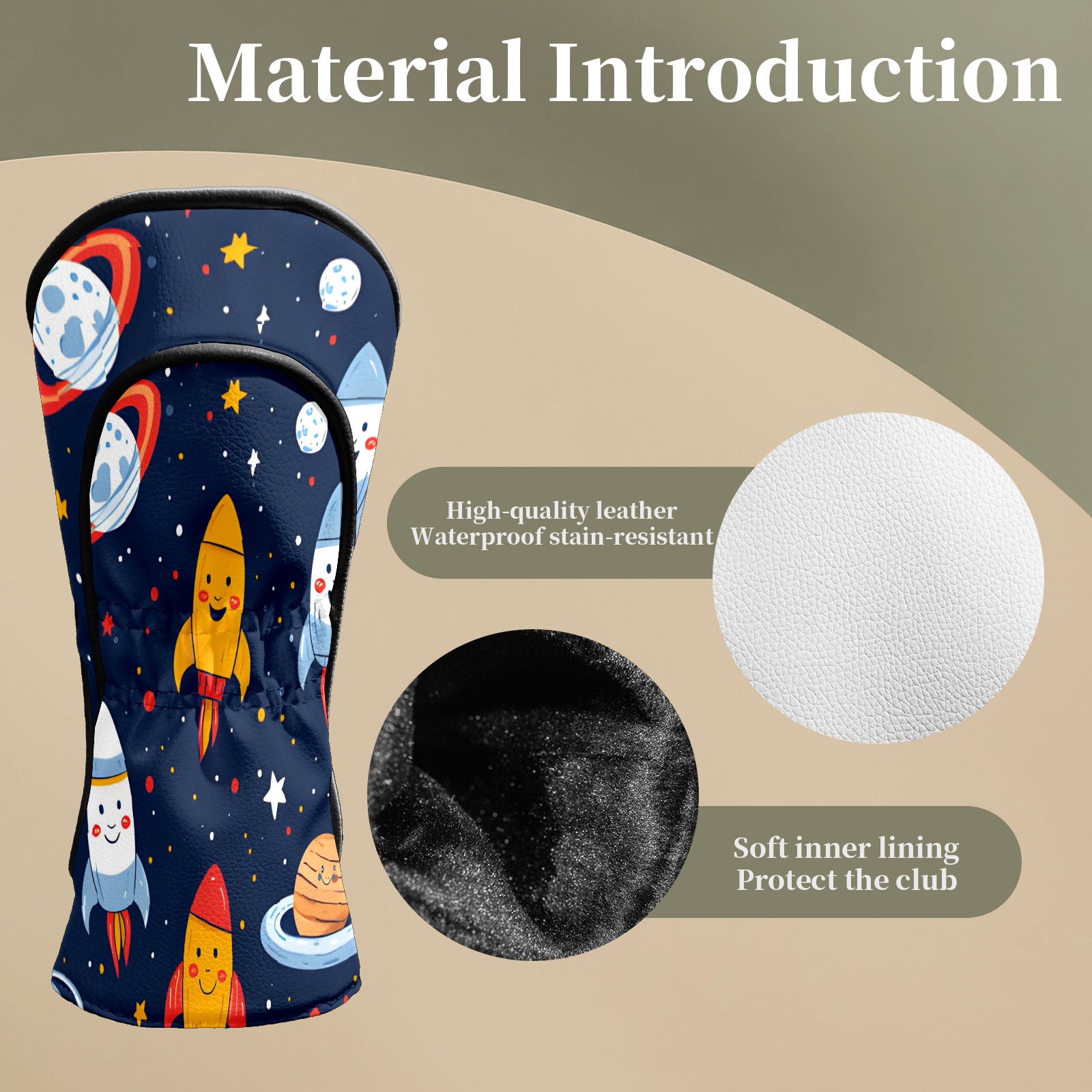 Golf Club Head Covers DarkBlue RocketPlanet Premium Plush Velvet Lining, Waterproof Golf Headcovers Driver & Fairway Woods for Scratch Protection Novelty Gift for Men & Women