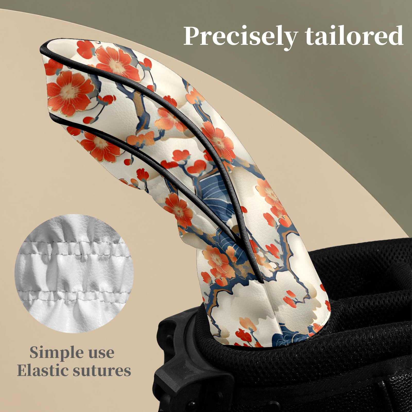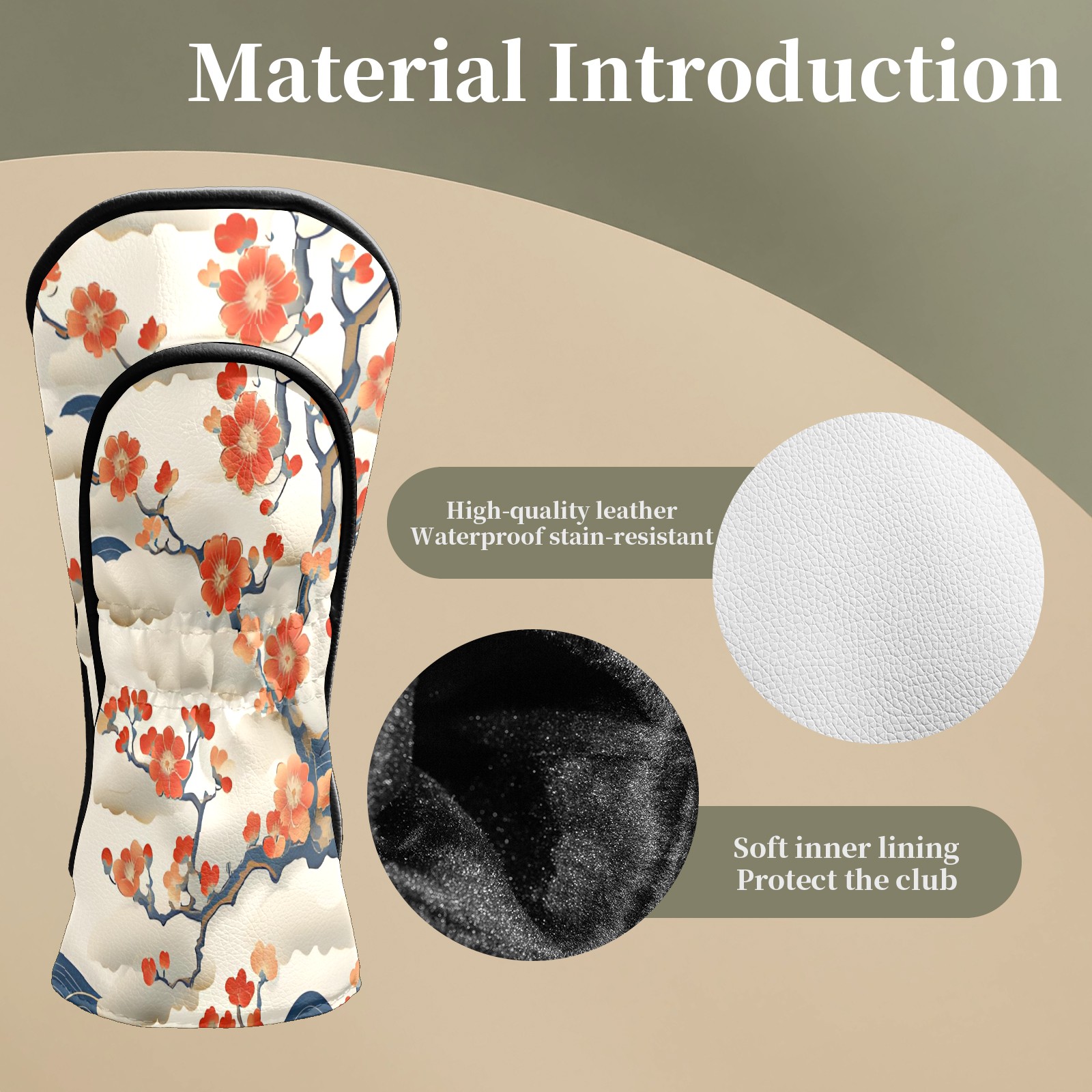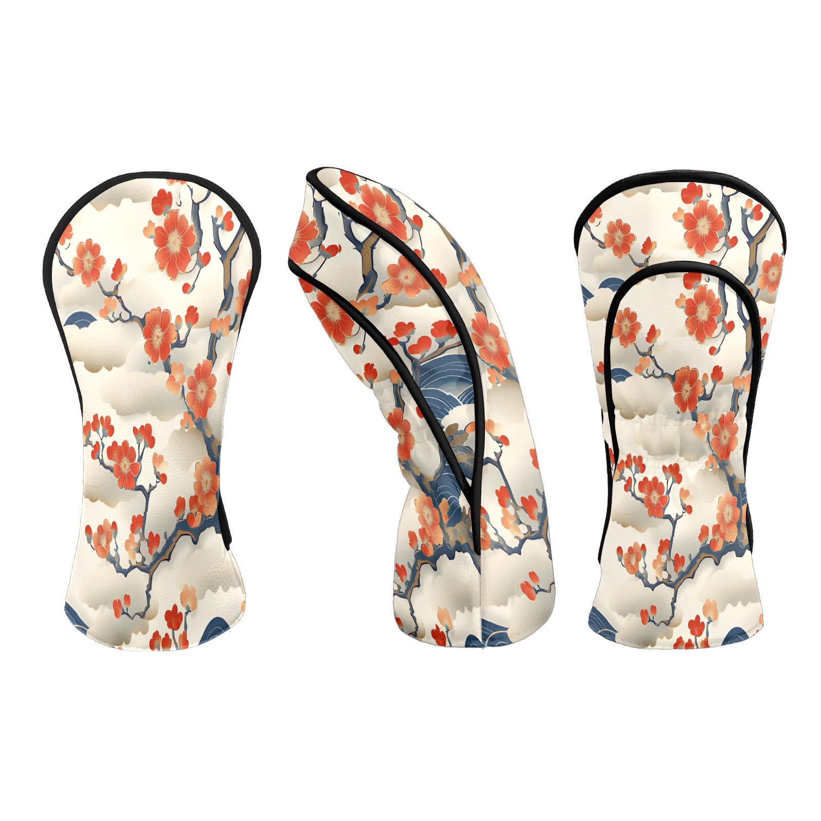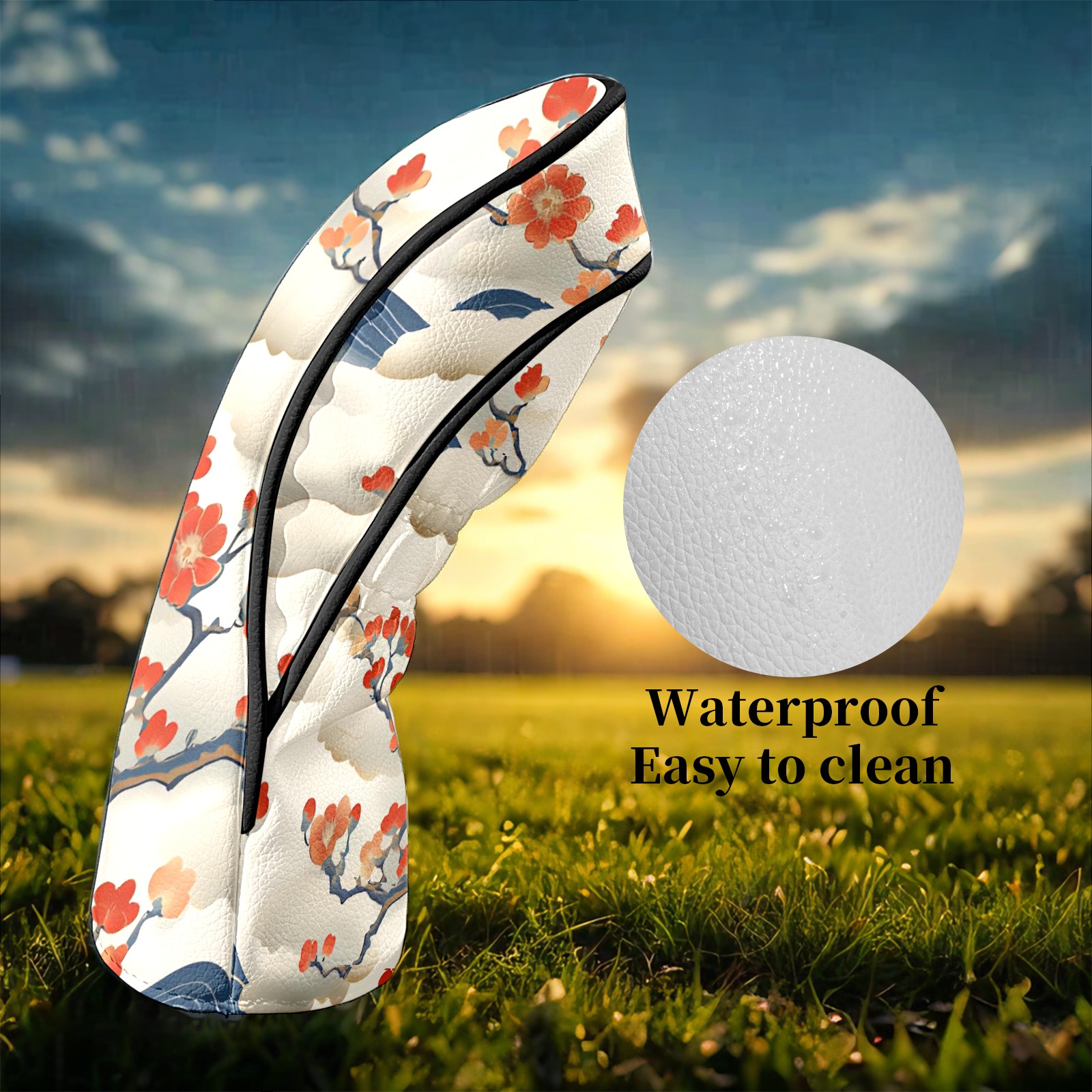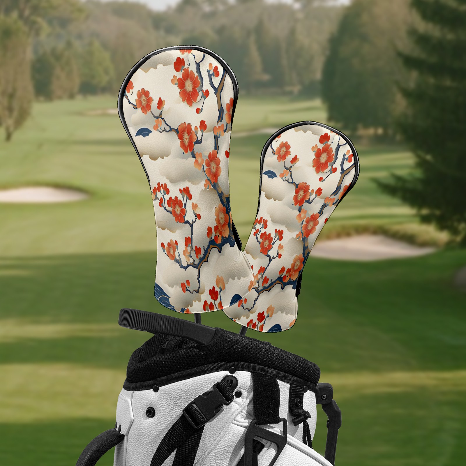 Golf Club Head Covers White CherryBlossomWave Premium Plush Velvet Lining, Waterproof Golf Headcovers Driver & Fairway Woods for Scratch Protection Novelty Gift for Men & Women