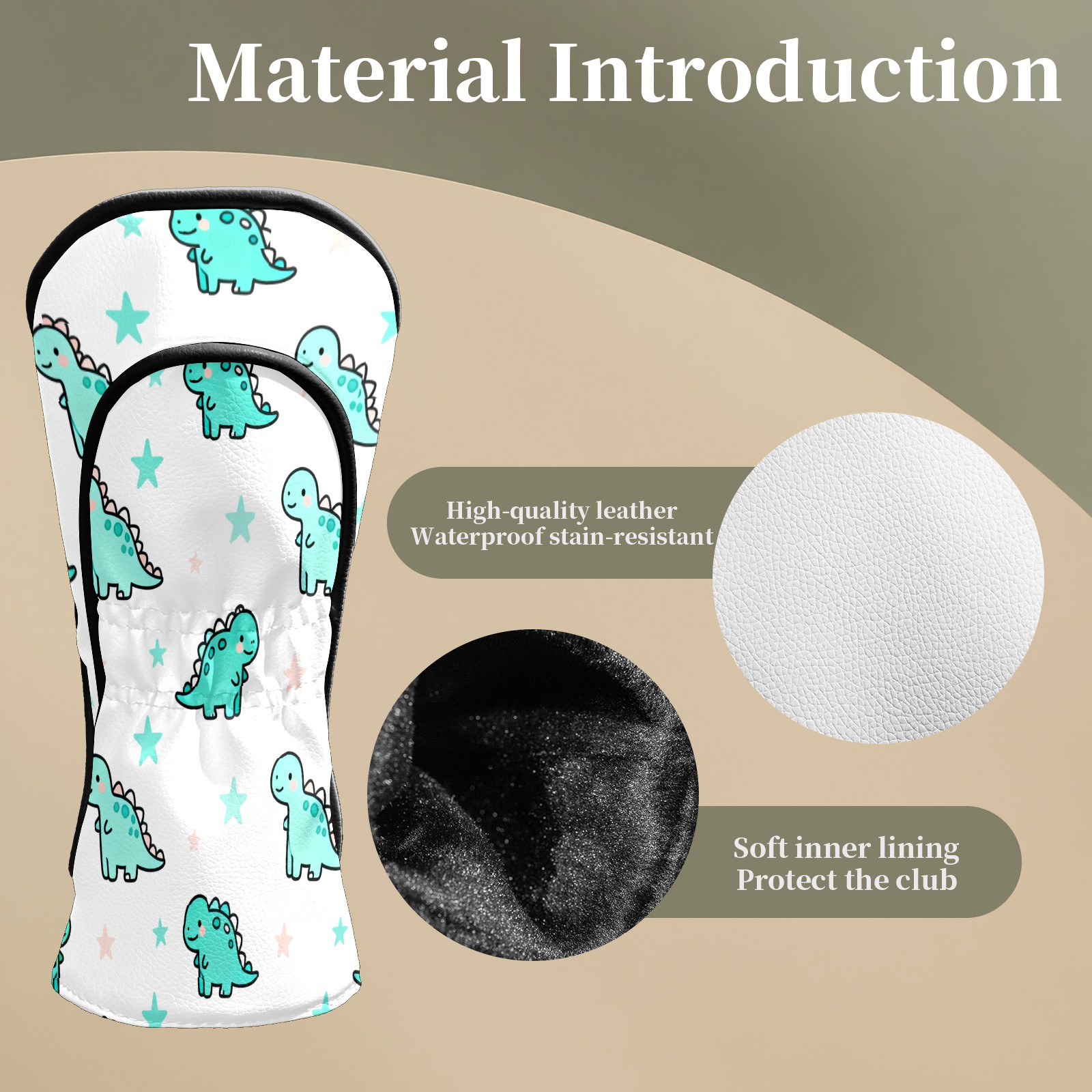 Golf Club Head Covers LightBlue DinosaurStar Premium Plush Velvet Lining, Waterproof Golf Headcovers Driver & Fairway Woods for Scratch Protection Novelty Gift for Men & Women