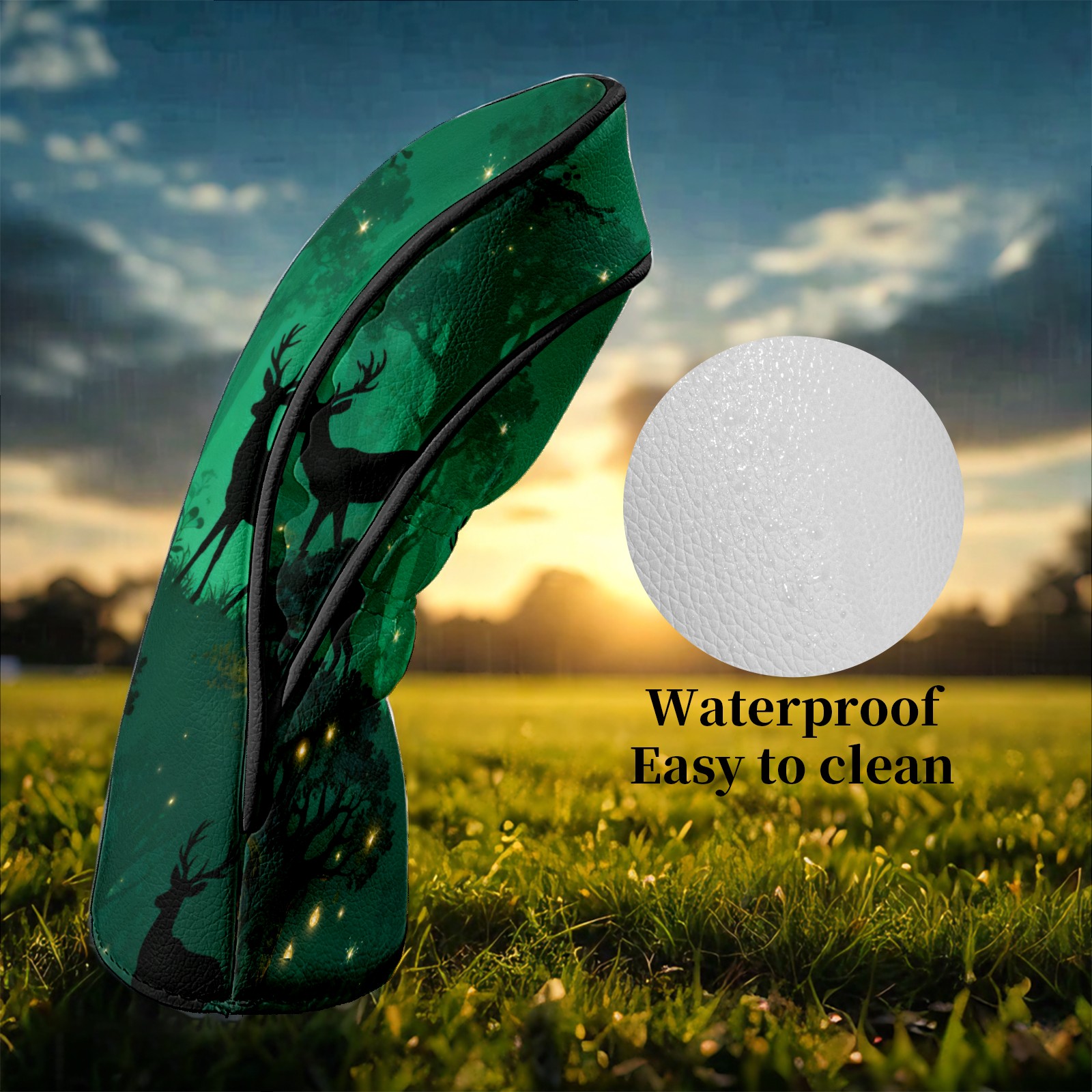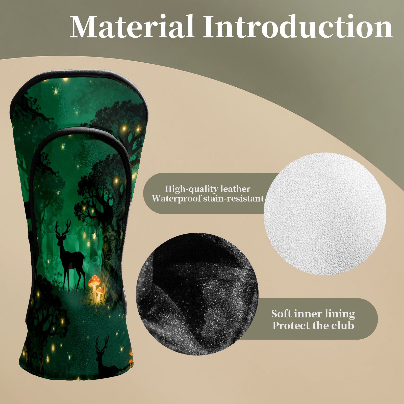 Golf Club Head Covers Green DeerForest Premium Plush Velvet Lining, Waterproof Golf Headcovers Driver & Fairway Woods for Scratch Protection Novelty Gift for Men & Women