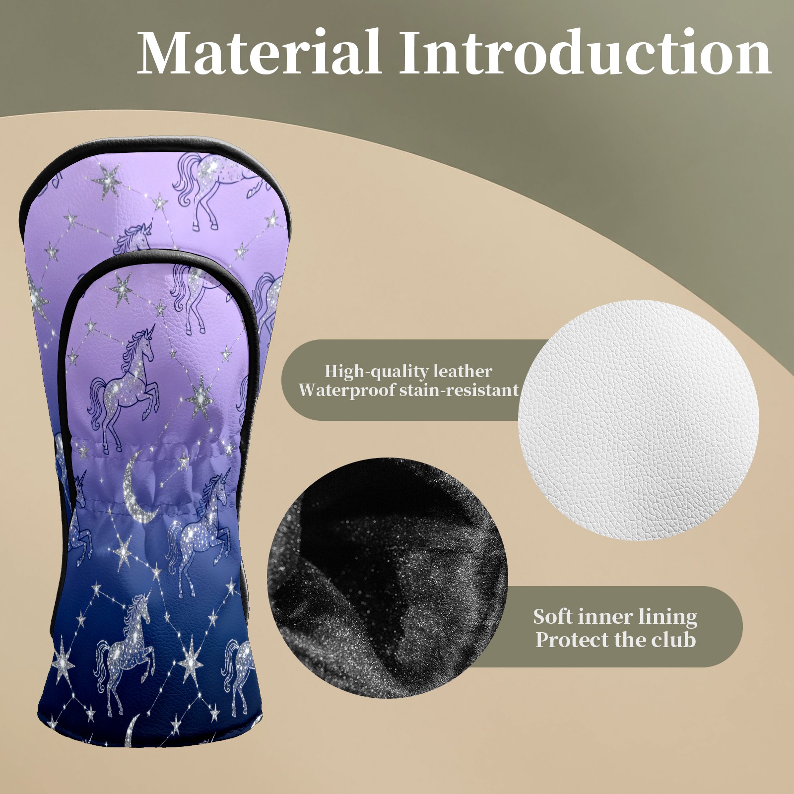 Golf Club Head Covers Purple UnicornConstellation Premium Plush Velvet Lining, Waterproof Golf Headcovers Driver & Fairway Woods for Scratch Protection Novelty Gift for Men & Women