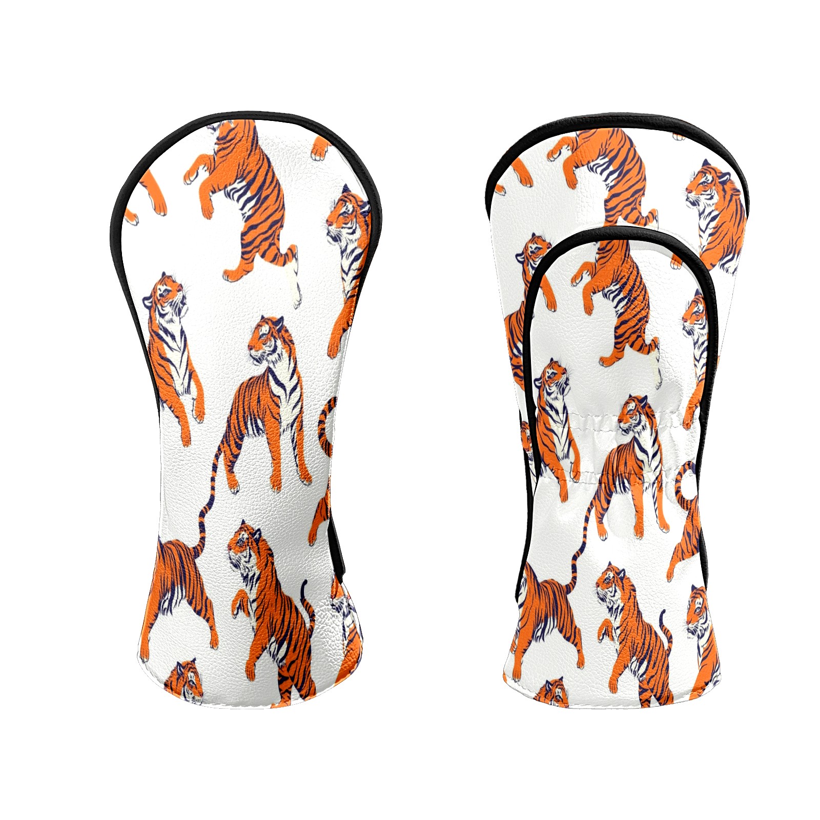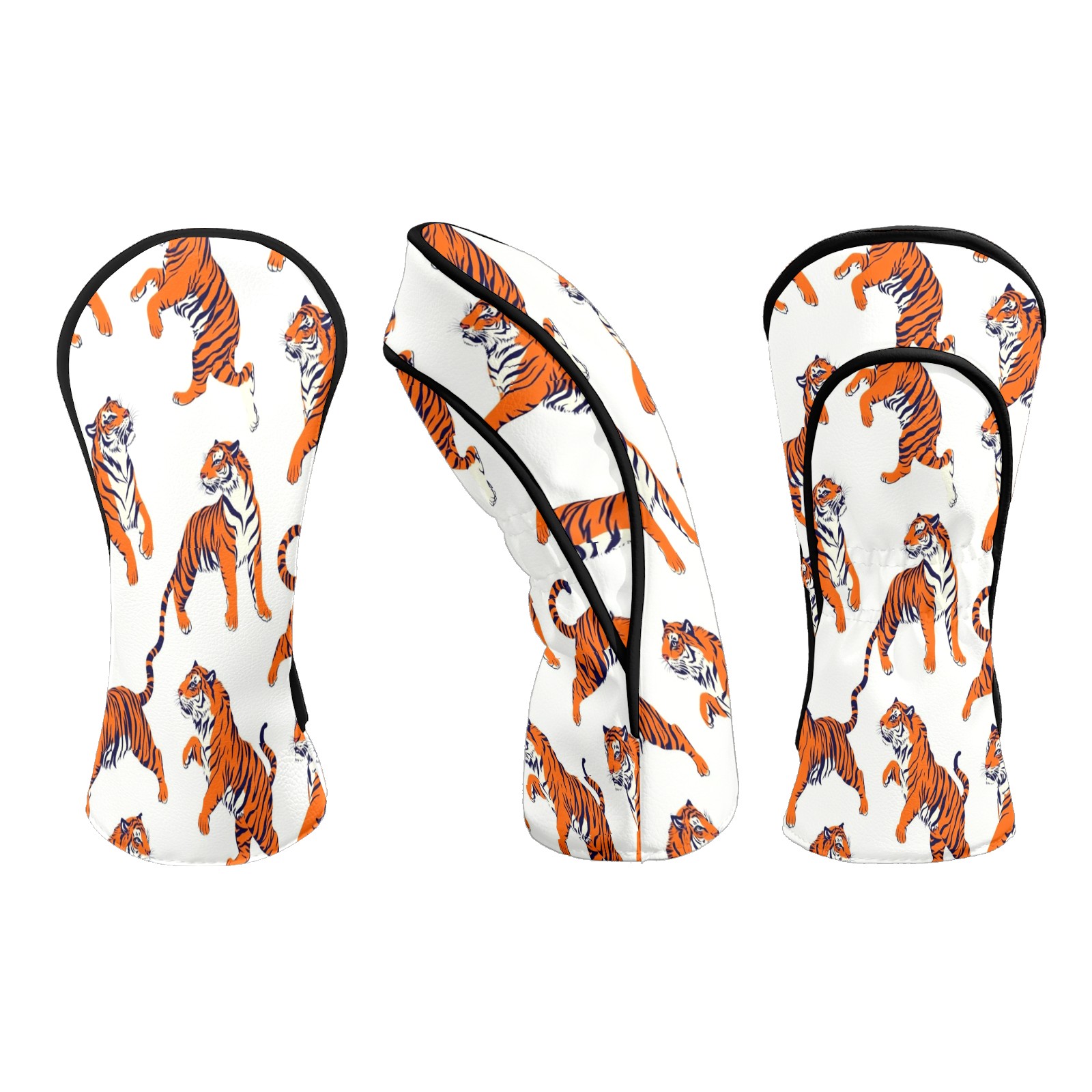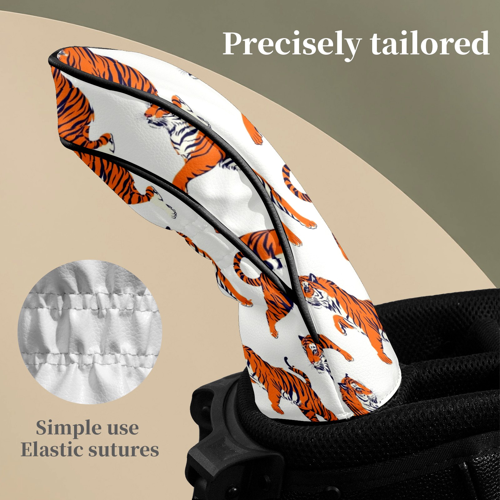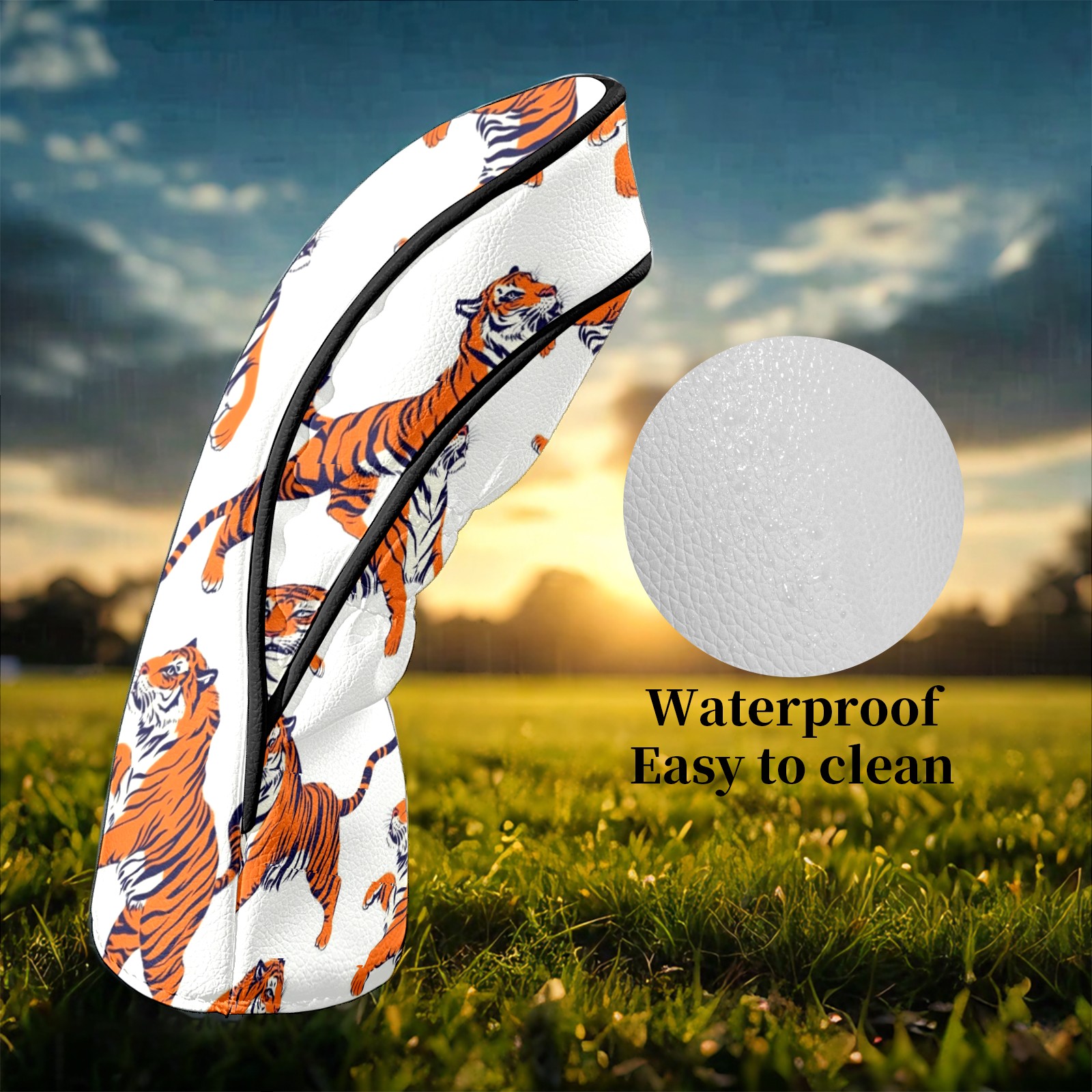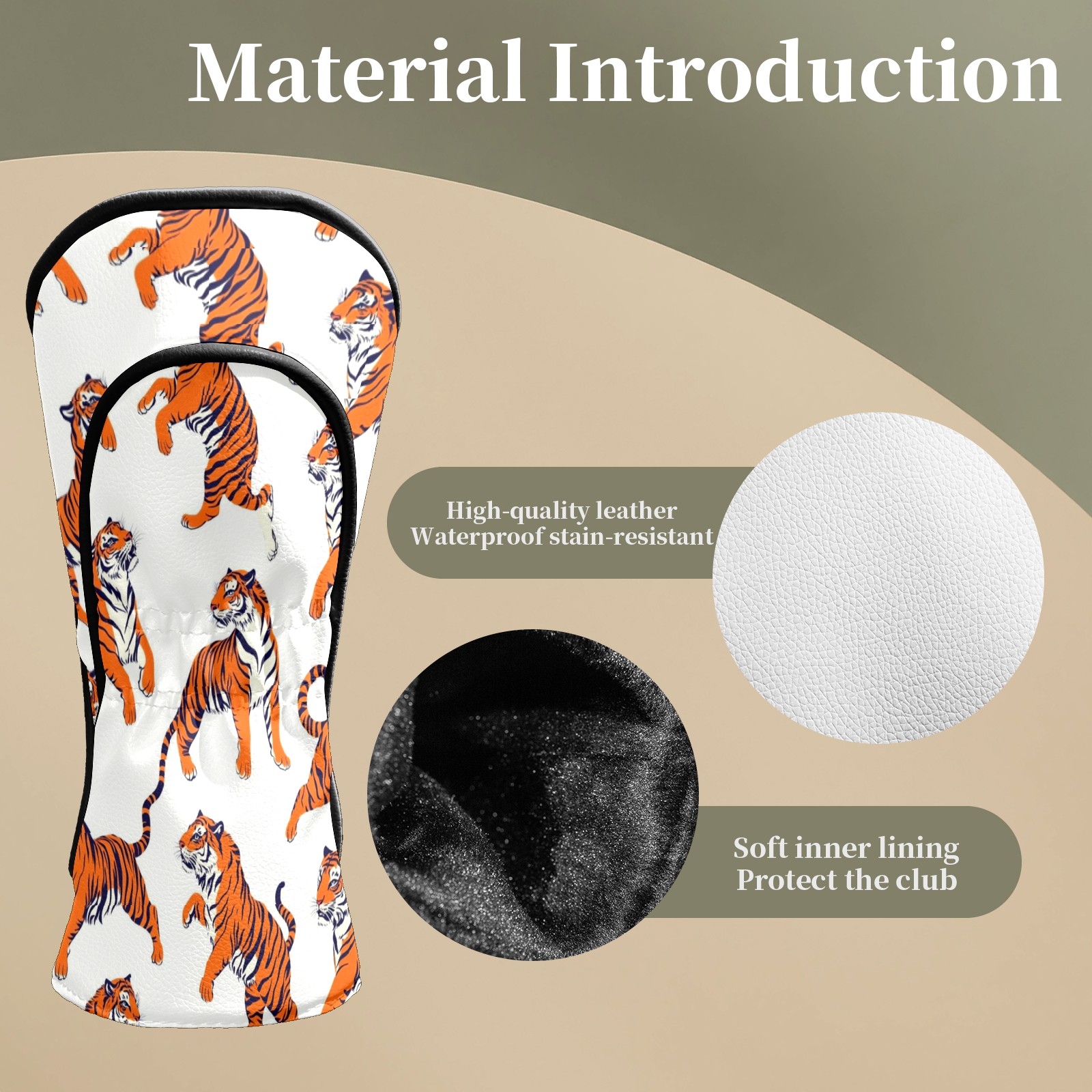 Golf Club Covers Ferocious Tiger Driver Head cover, Leather Golf Club Head Covers for Driver Fairway Woods Waterproof Golf Headcovers with Anti-Scratch Lining Fits Most Clubs