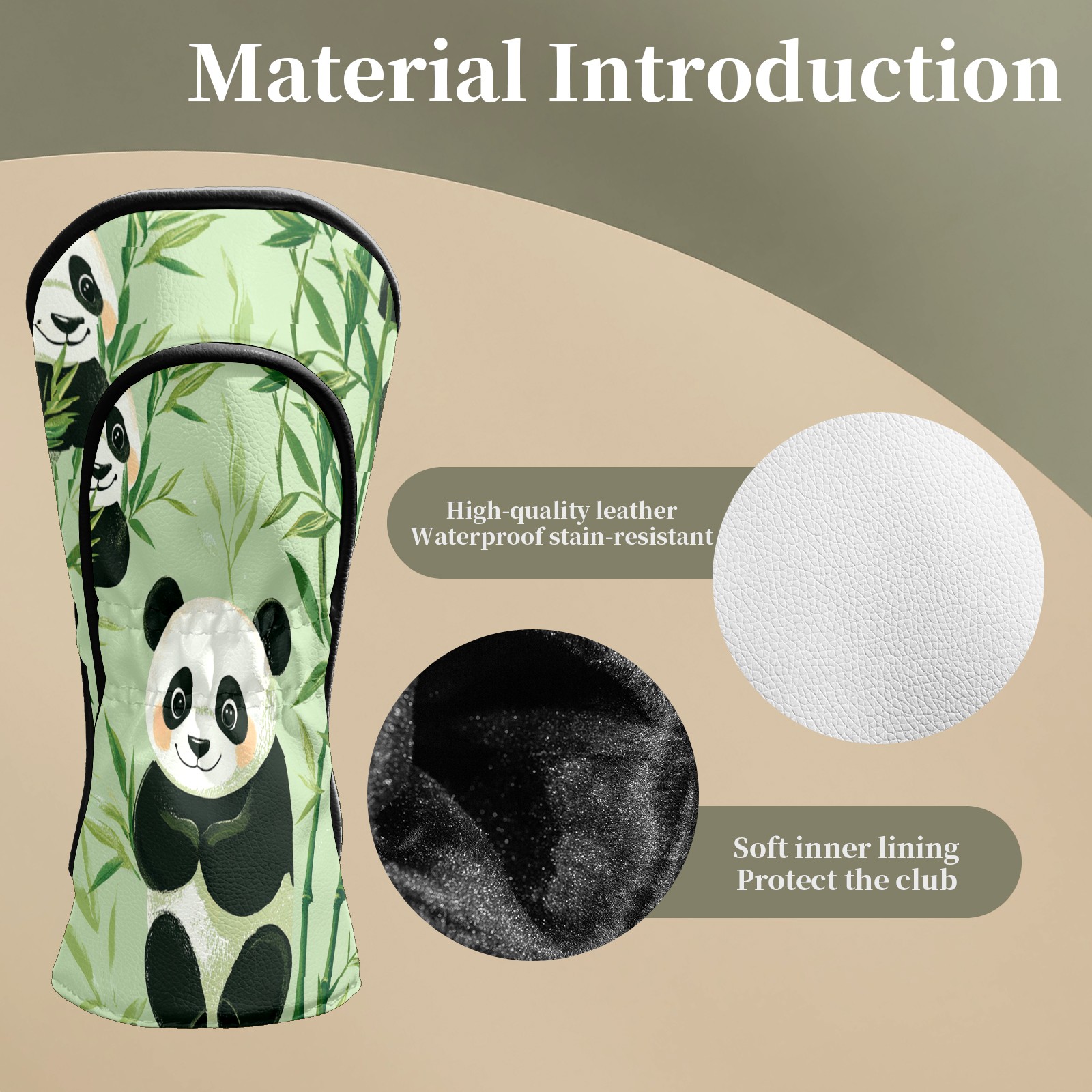 Golf Club Covers Giant Panda Driver Head cover, Leather Golf Club Head Covers for Driver Fairway Woods Waterproof Golf Headcovers with Anti-Scratch Lining Fits Most Clubs