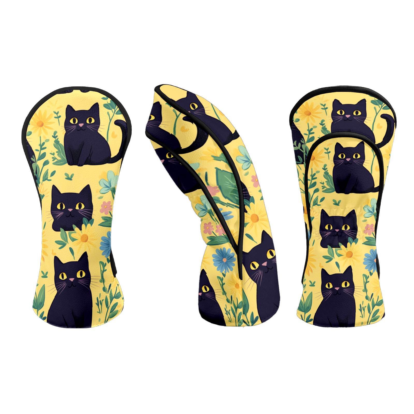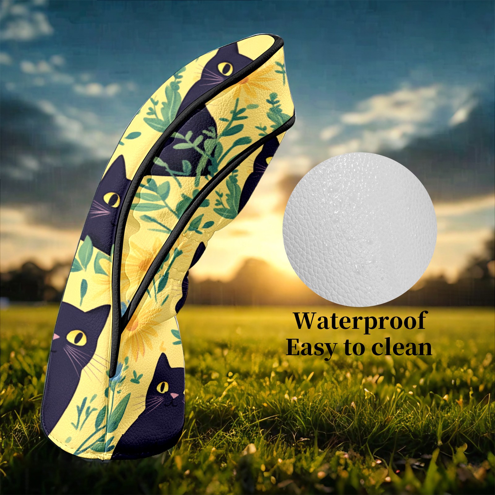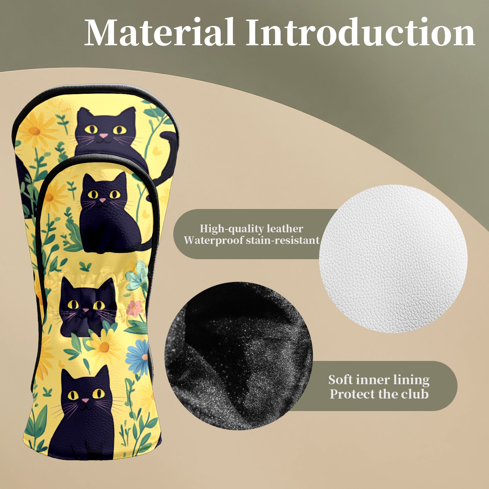 Golf Club Covers Cat Family Driver Head cover, Leather Golf Club Head Covers for Driver Fairway Woods Waterproof Golf Headcovers with Anti-Scratch Lining Fits Most Clubs
