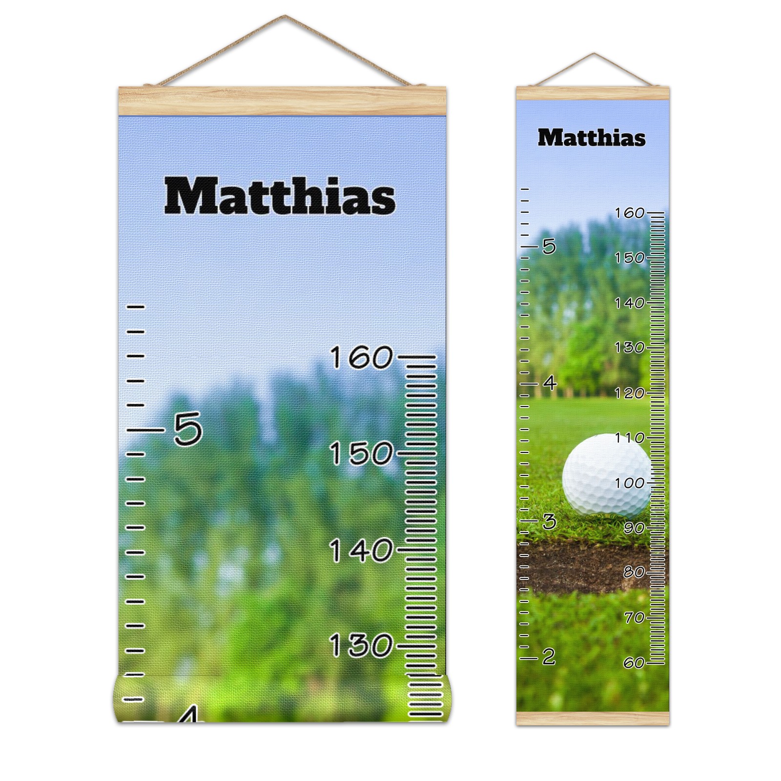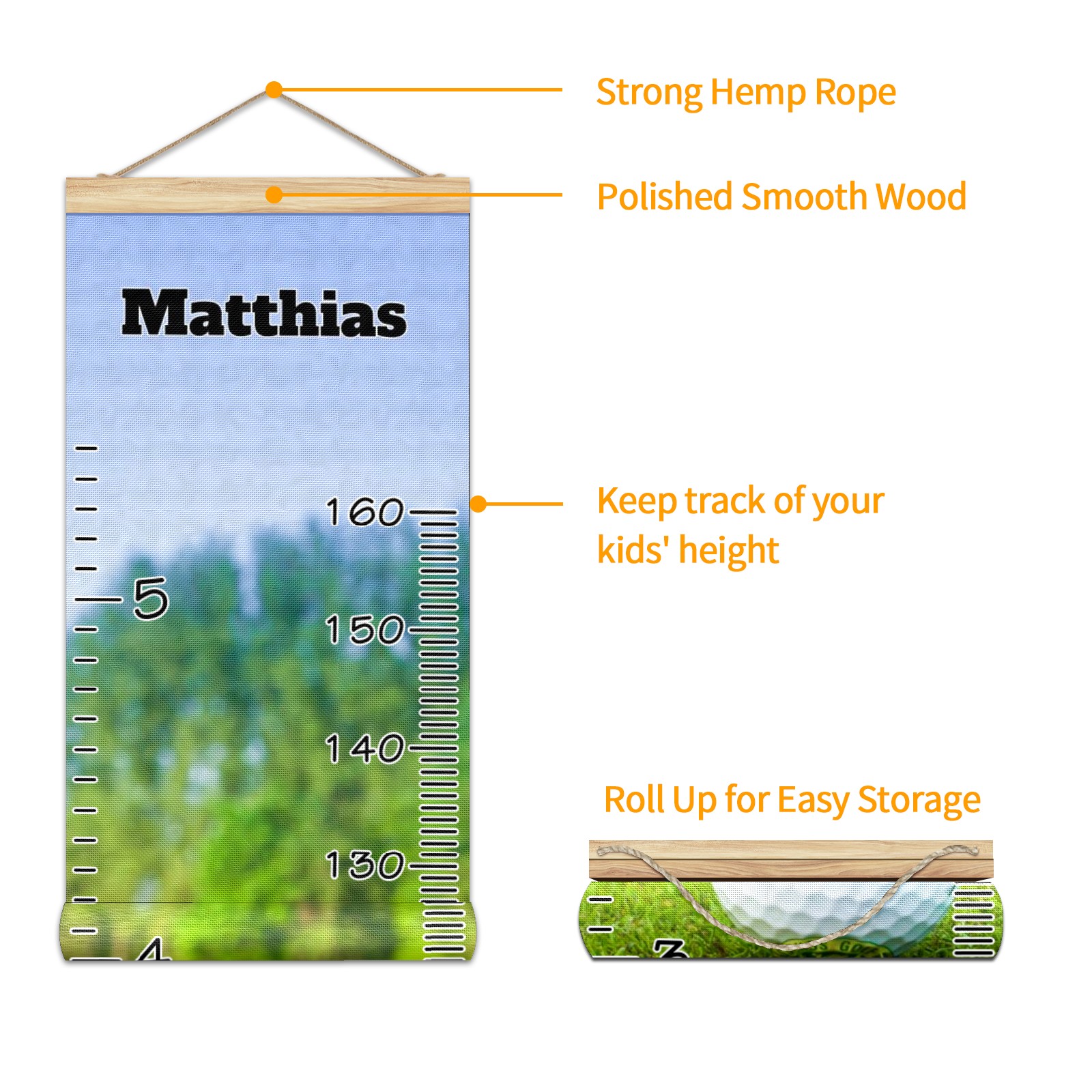 Personalized Kids Name Growth Chart Ruler for Wall Wood Frame Canvas Height Measure Chart 13.4x56 in Hanging Growth Chart Golf1.7 Boys Girls Room Decor