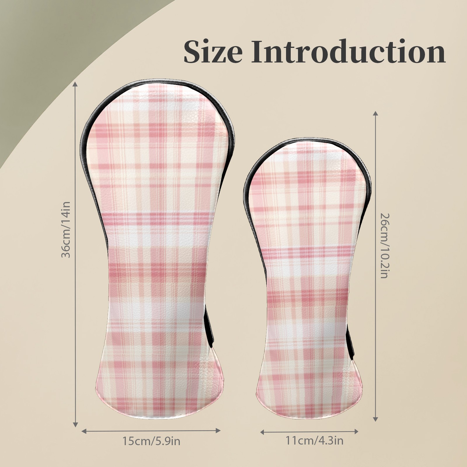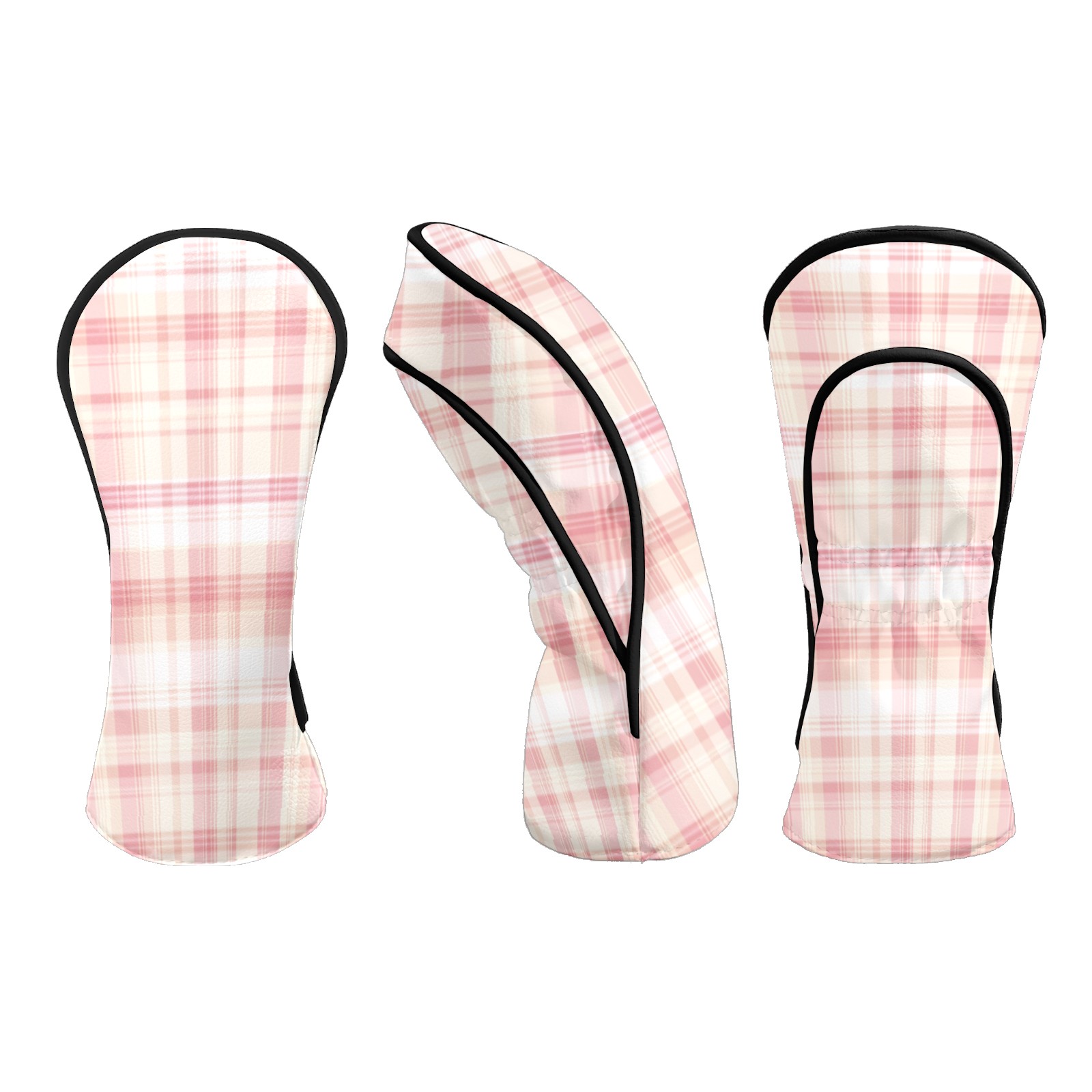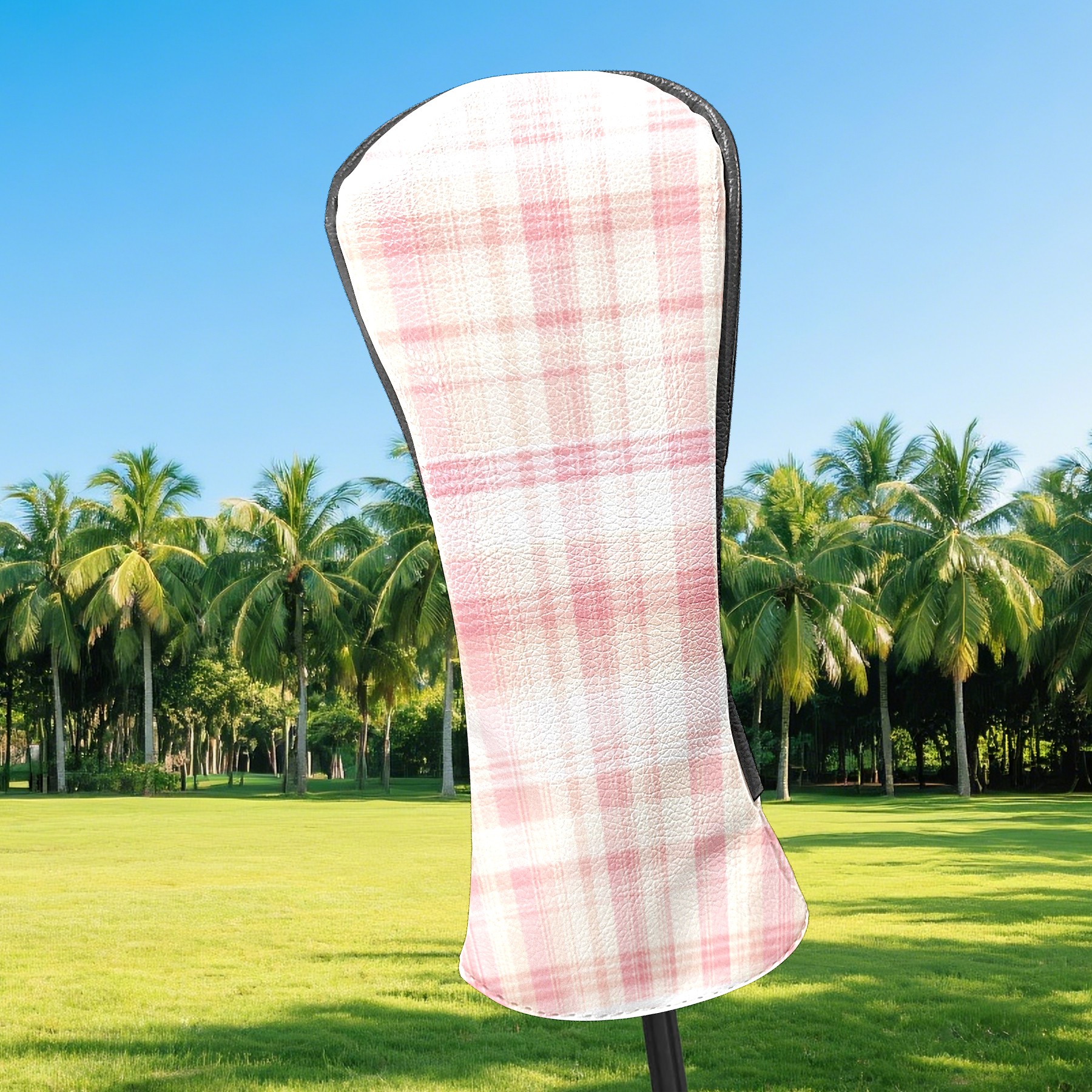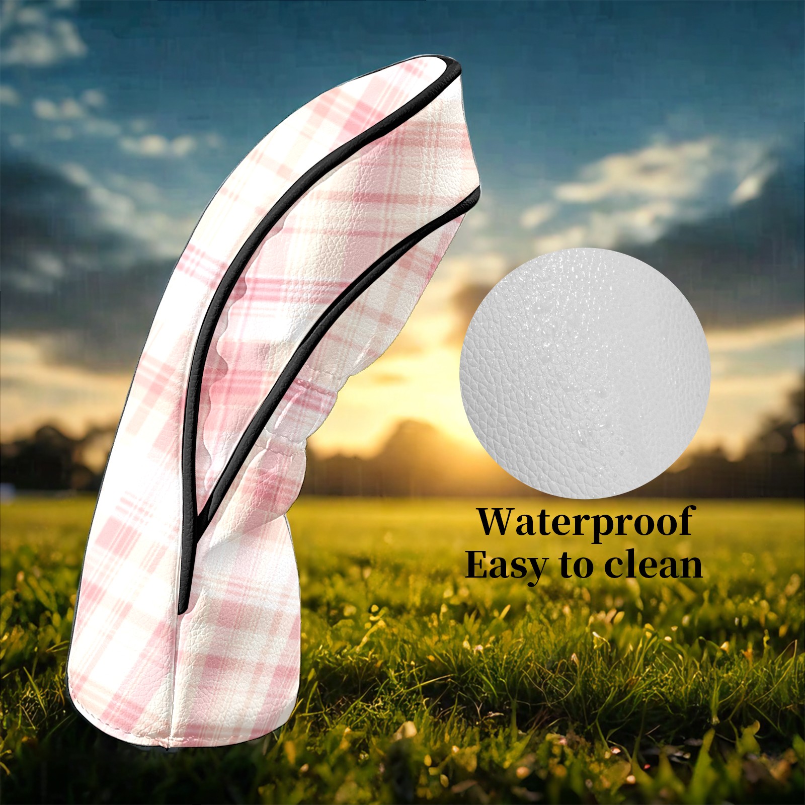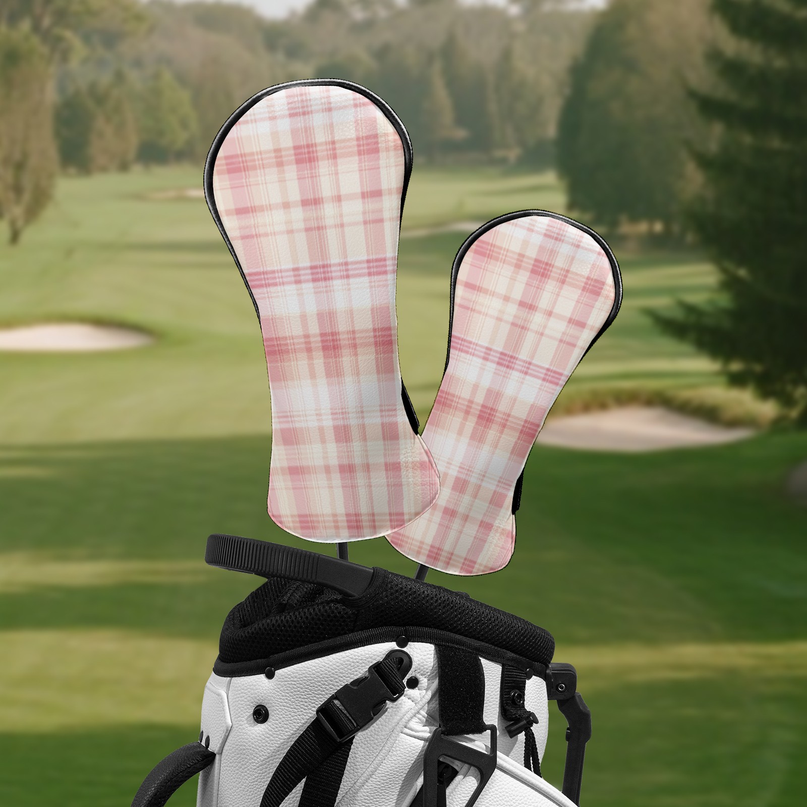 Golf Head Covers for Woods and Driver Waterproof Leather Golf Club Head Covers for Women Men Golf Driver Fairway Wood Headcover Light Pink Plaid Design