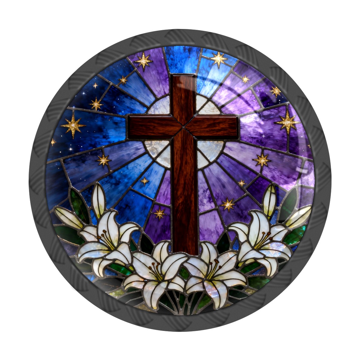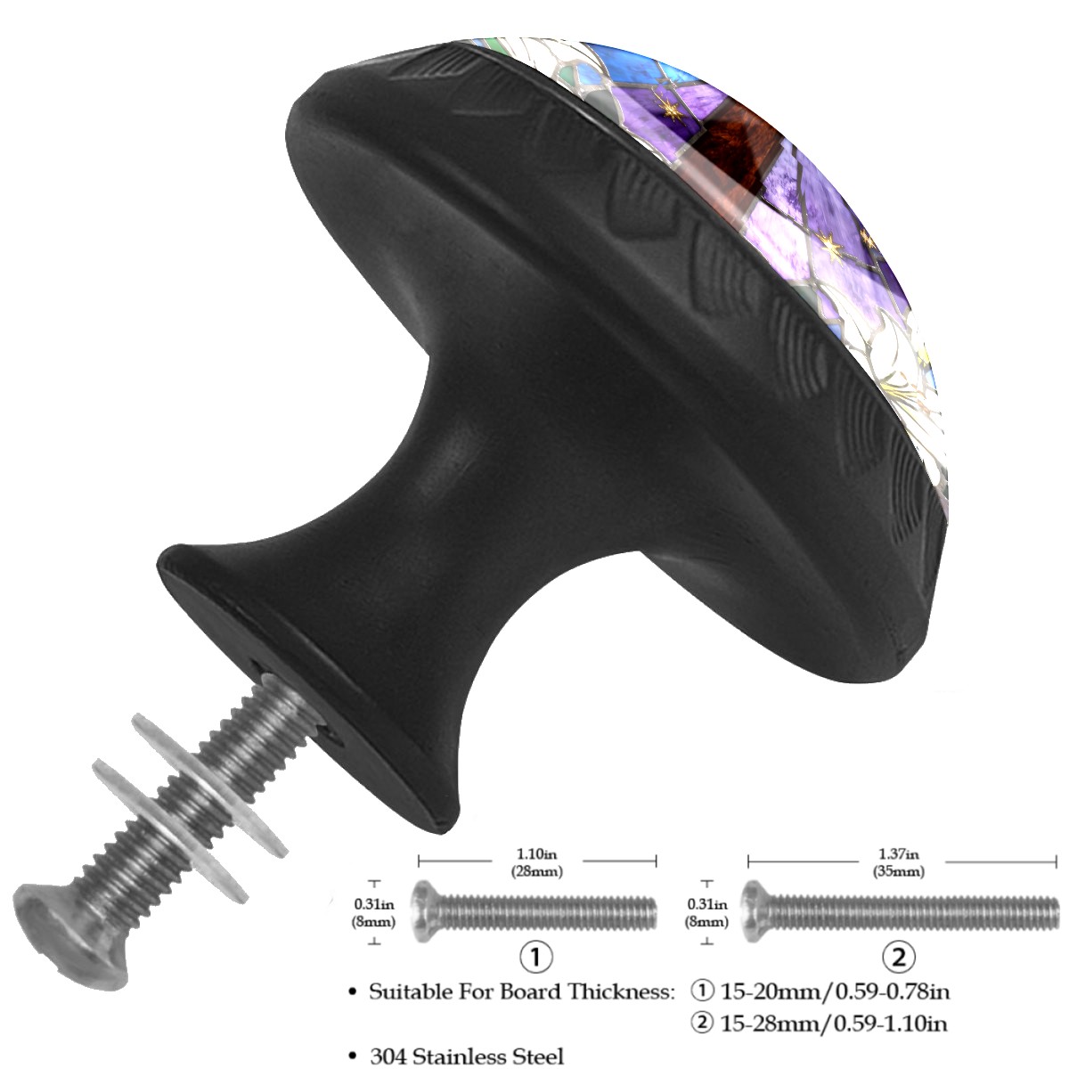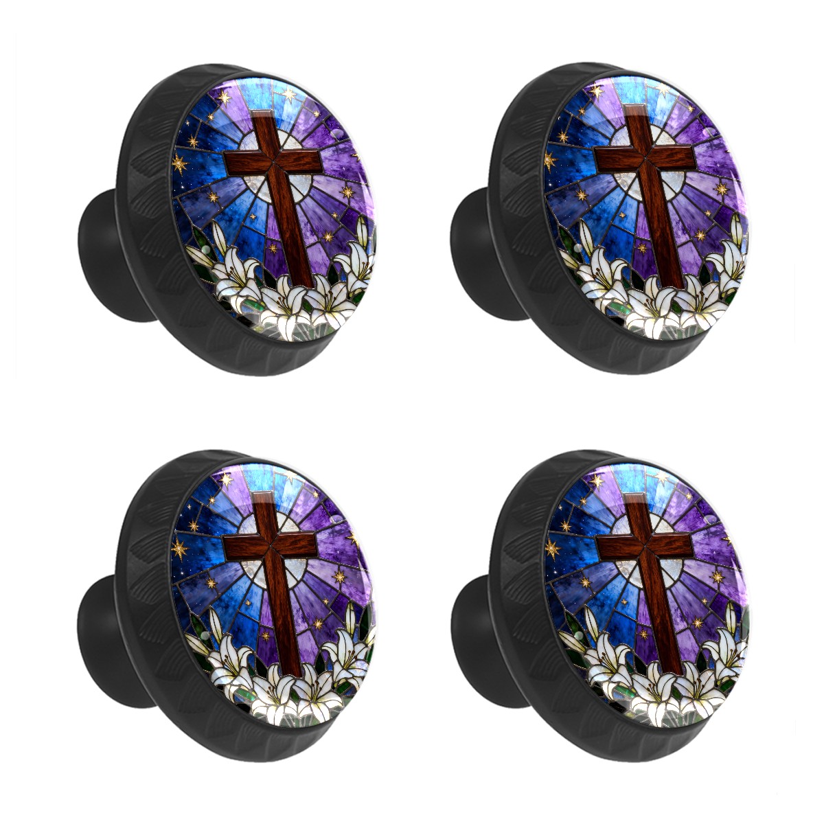 4 Pack Cabinet Knobs Cross Blue Purple Drawer Pulls Crystal Glass Round Knobs Handles for Dressers Drawer Bathroom Kitchen Cupboards Wardrobes Hardware Furniture Knobs