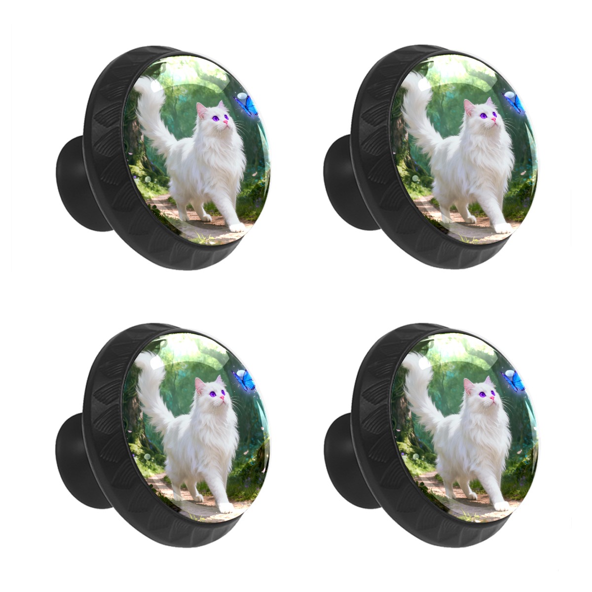 4 Pack Cabinet Knobs Forest Cat Drawer Pulls Crystal Glass Round Knobs Handles for Dressers Drawer Bathroom Kitchen Cupboards Wardrobes Hardware Furniture Knobs