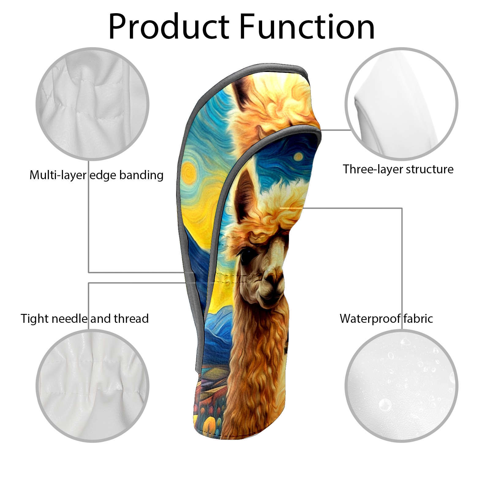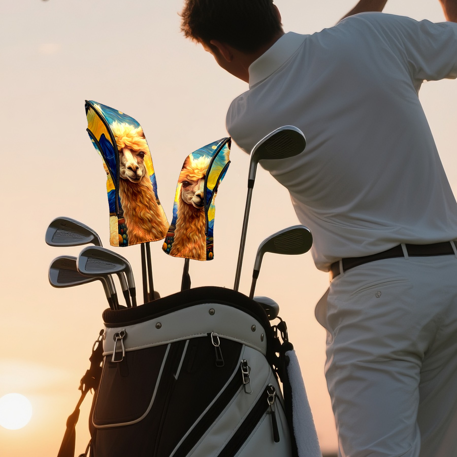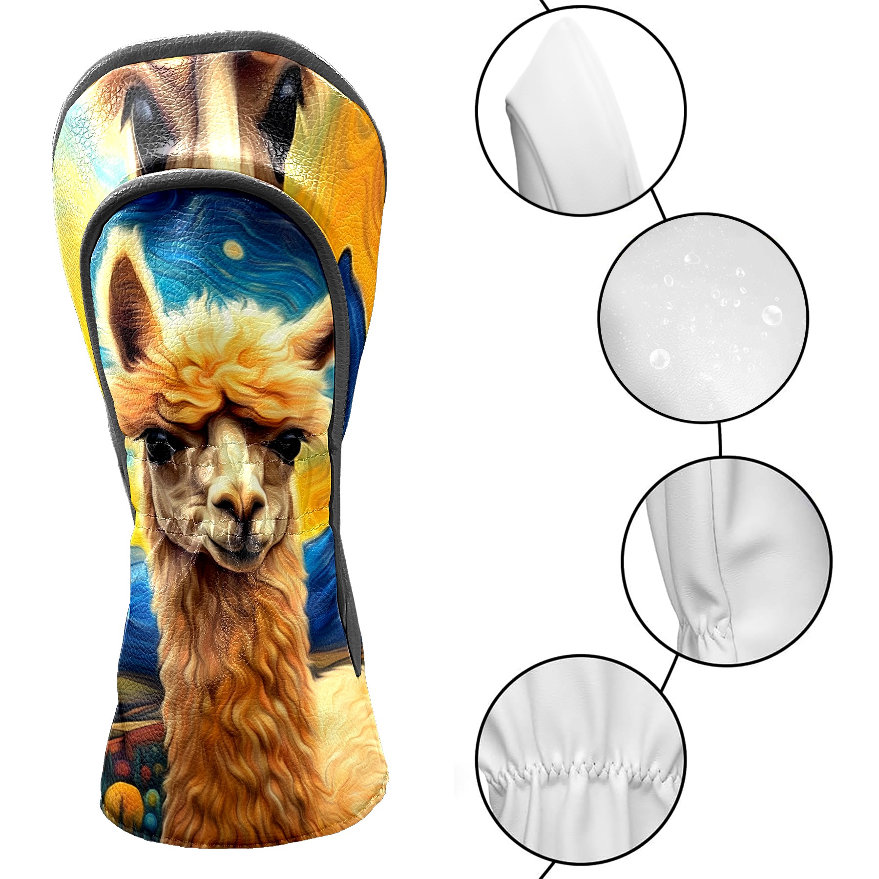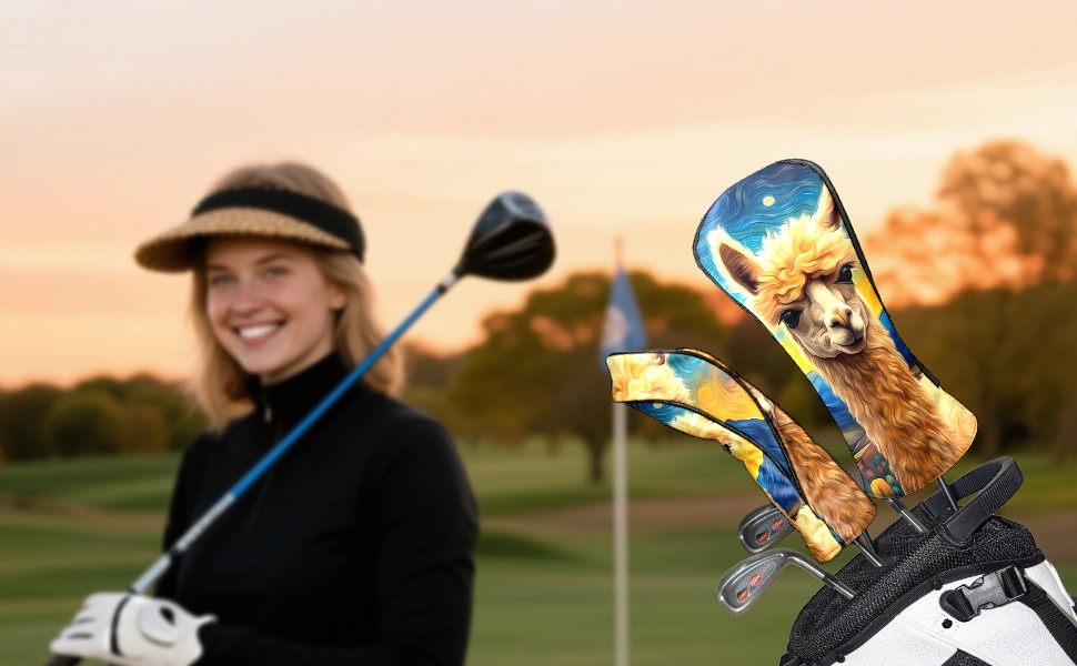 Golf Club Head Covers Premium Leather Driver Head Cover, Golf Head Covers for Woods and Driver Waterproof Golf Headcovers with Anti-Scratch Lining for Men Women (Alpaca Starry Night (1))