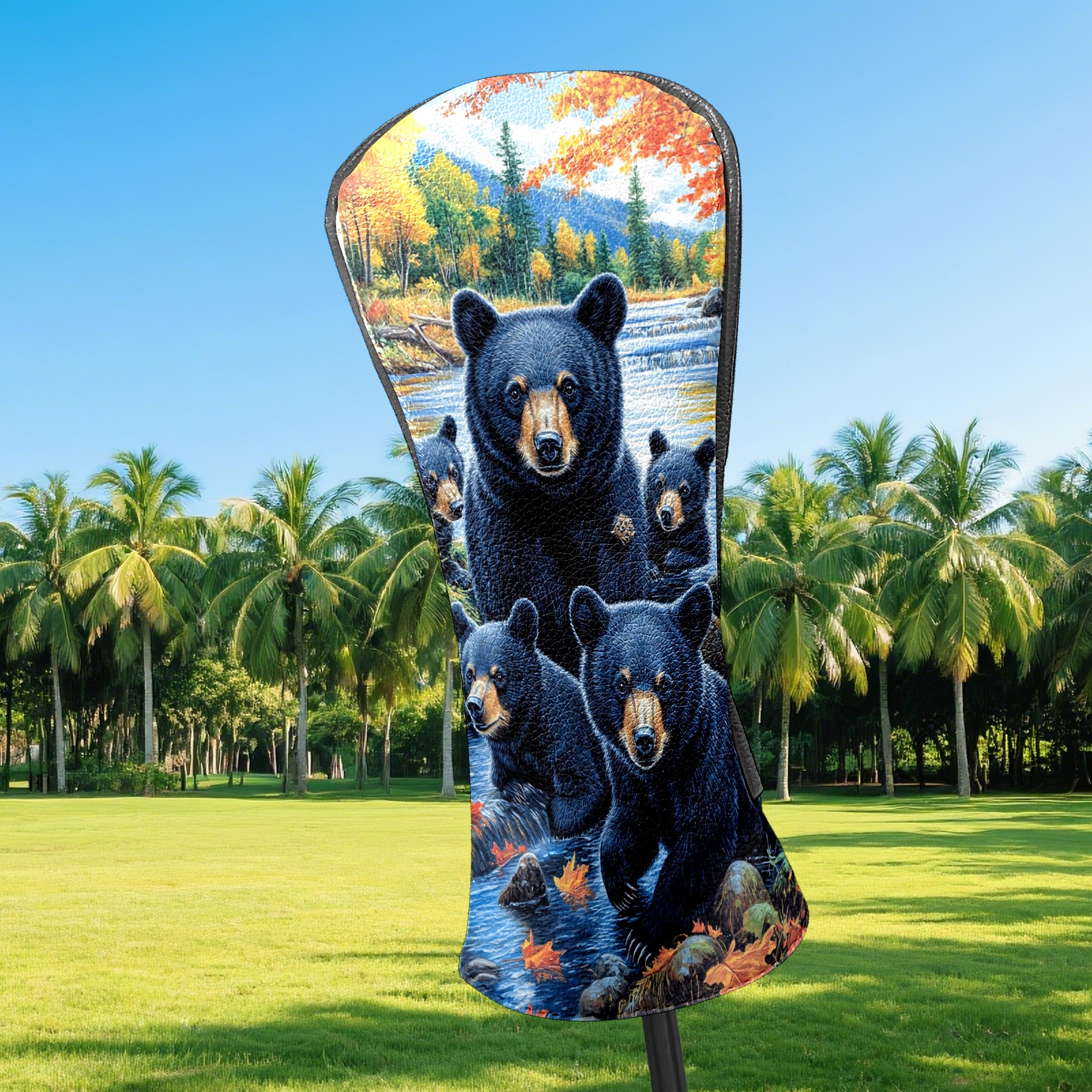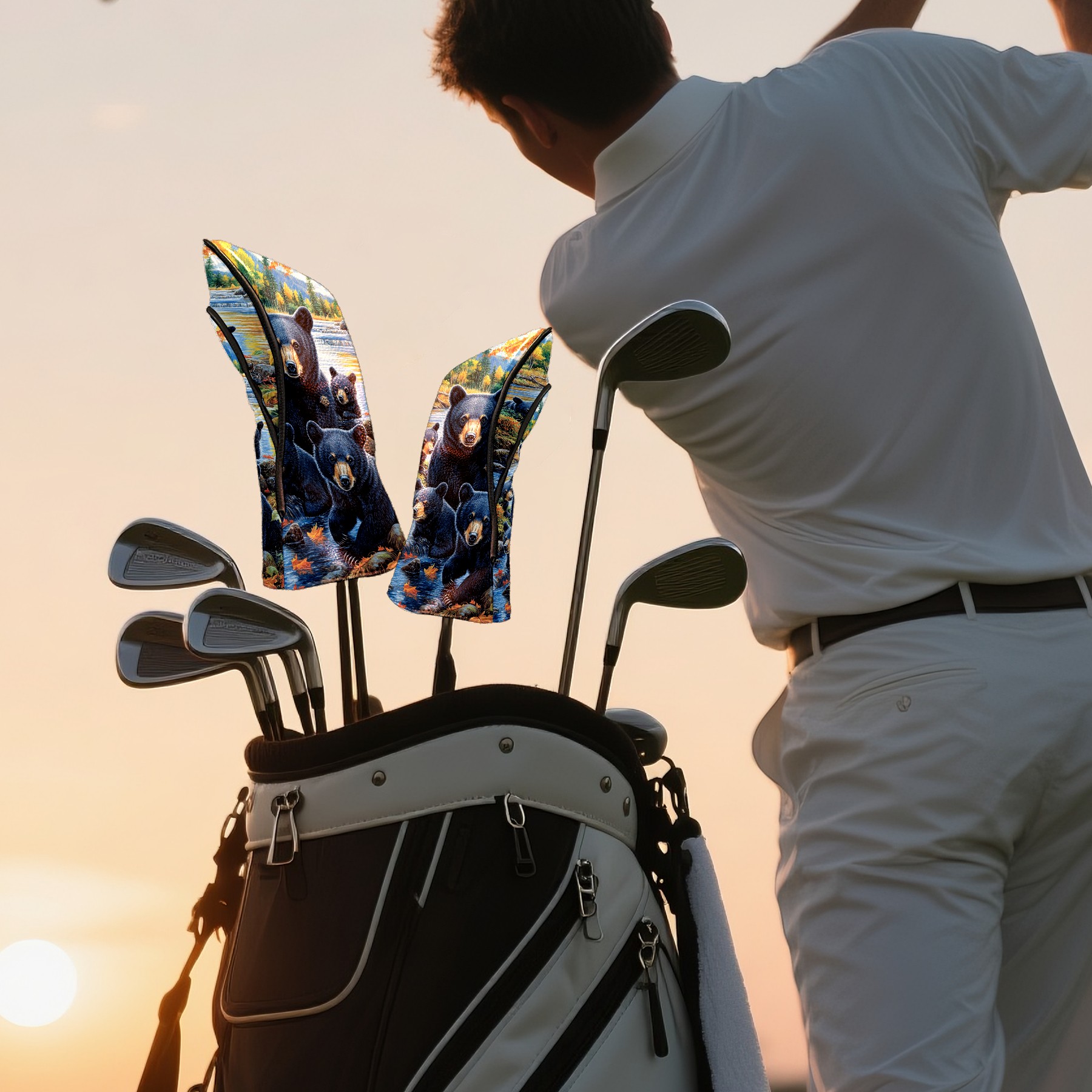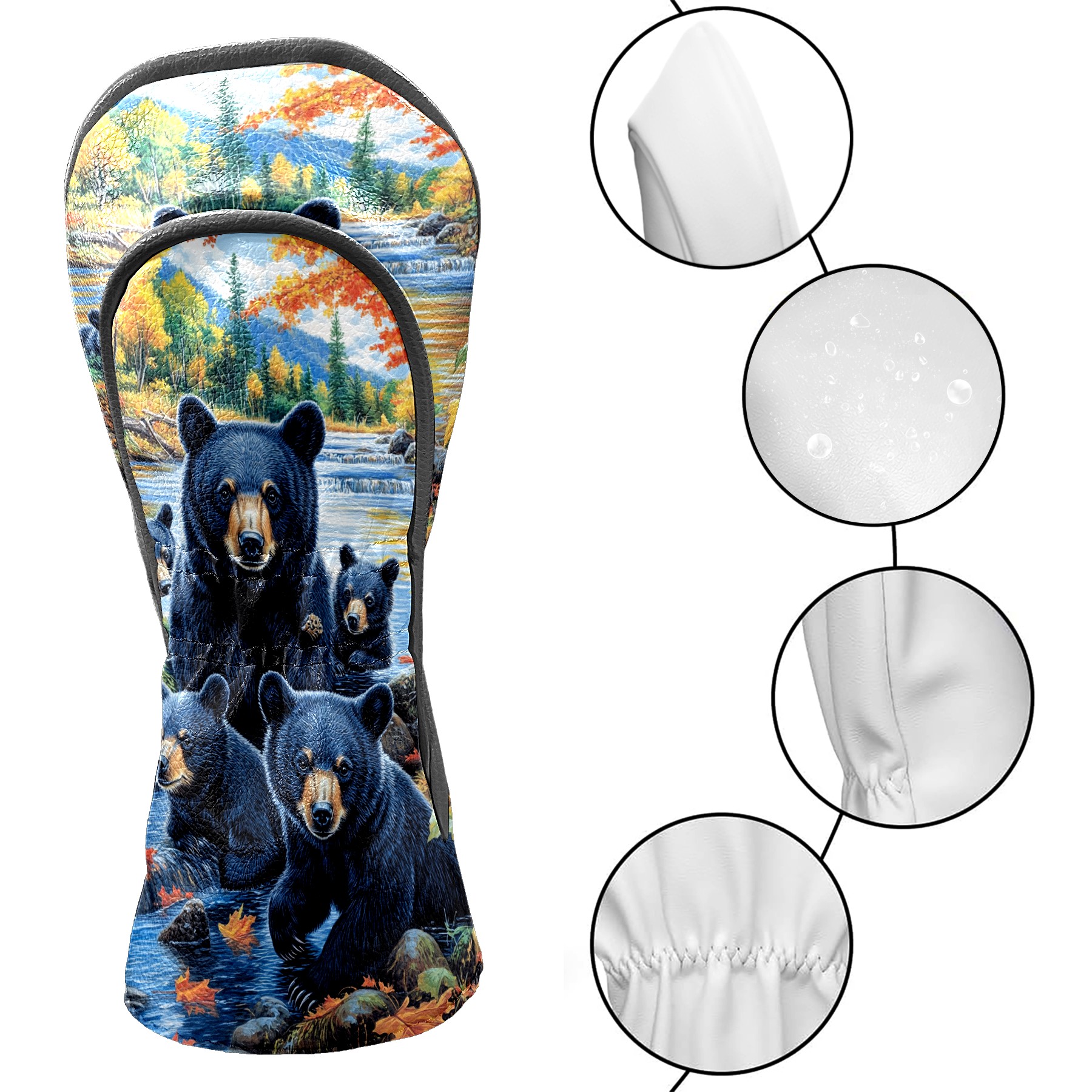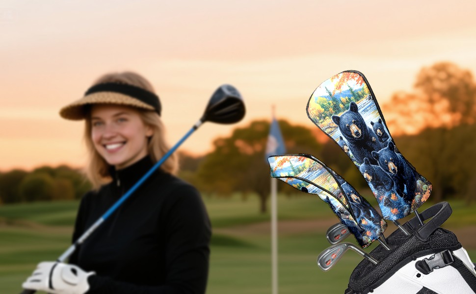 Golf Club Head Covers Premium Leather Driver Head Cover, Golf Head Covers for Woods and Driver Waterproof Golf Headcovers with Anti-Scratch Lining for Men Women (Black Bears)