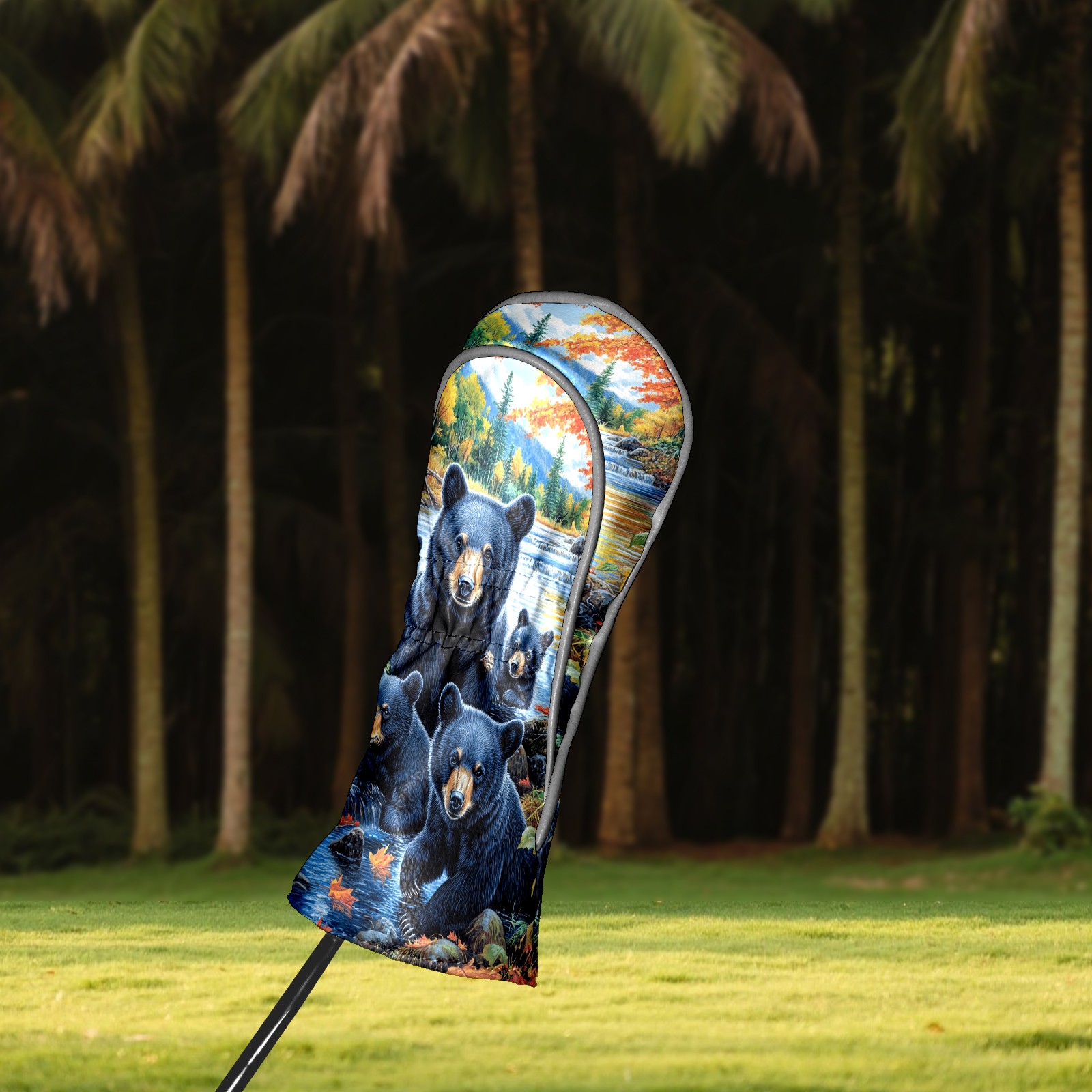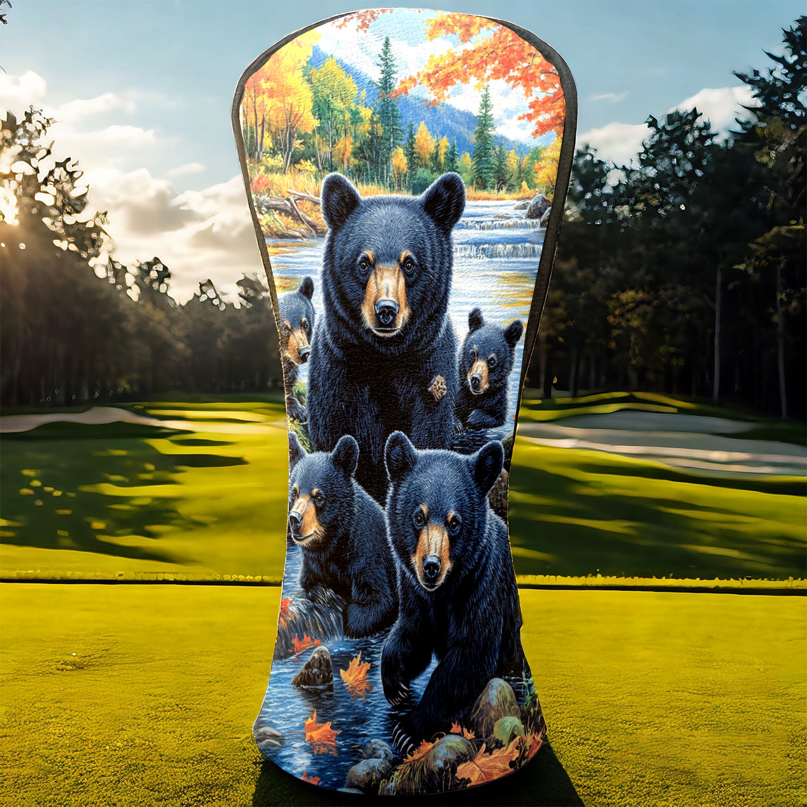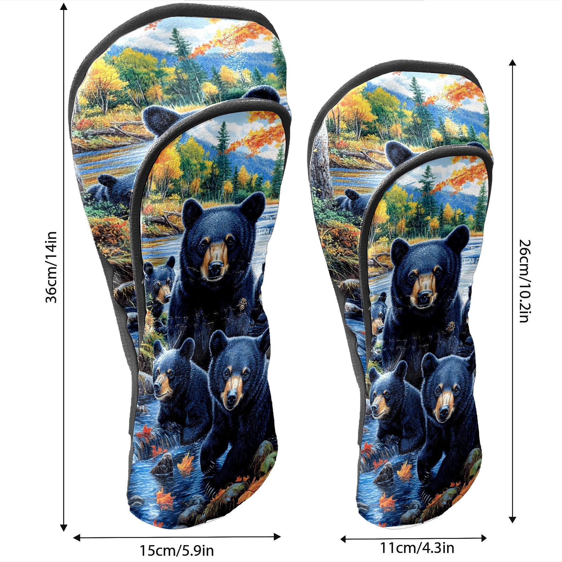 Golf Club Head Covers Premium Leather Driver Head Cover, Golf Head Covers for Woods and Driver Waterproof Golf Headcovers with Anti-Scratch Lining for Men Women (Black Bears)