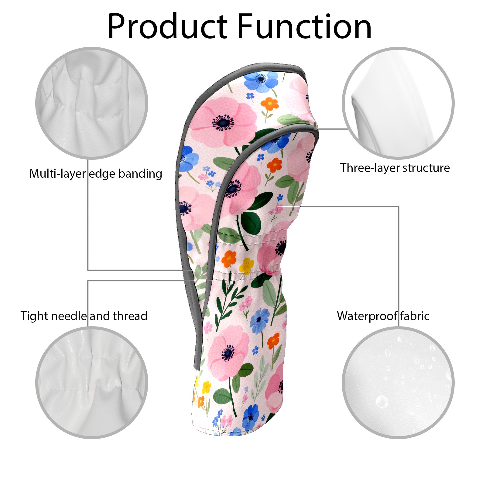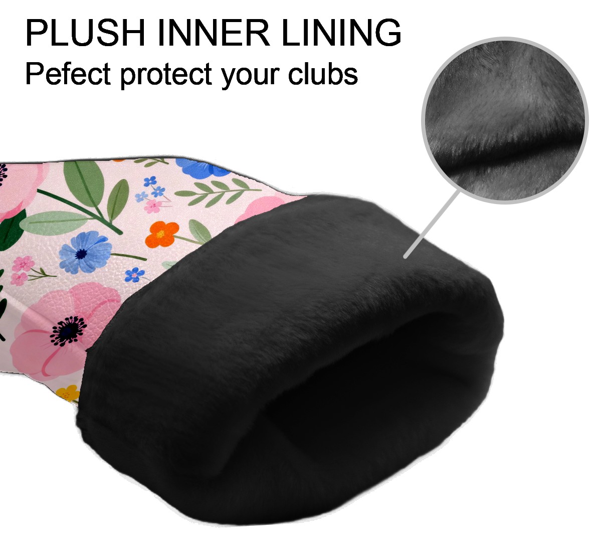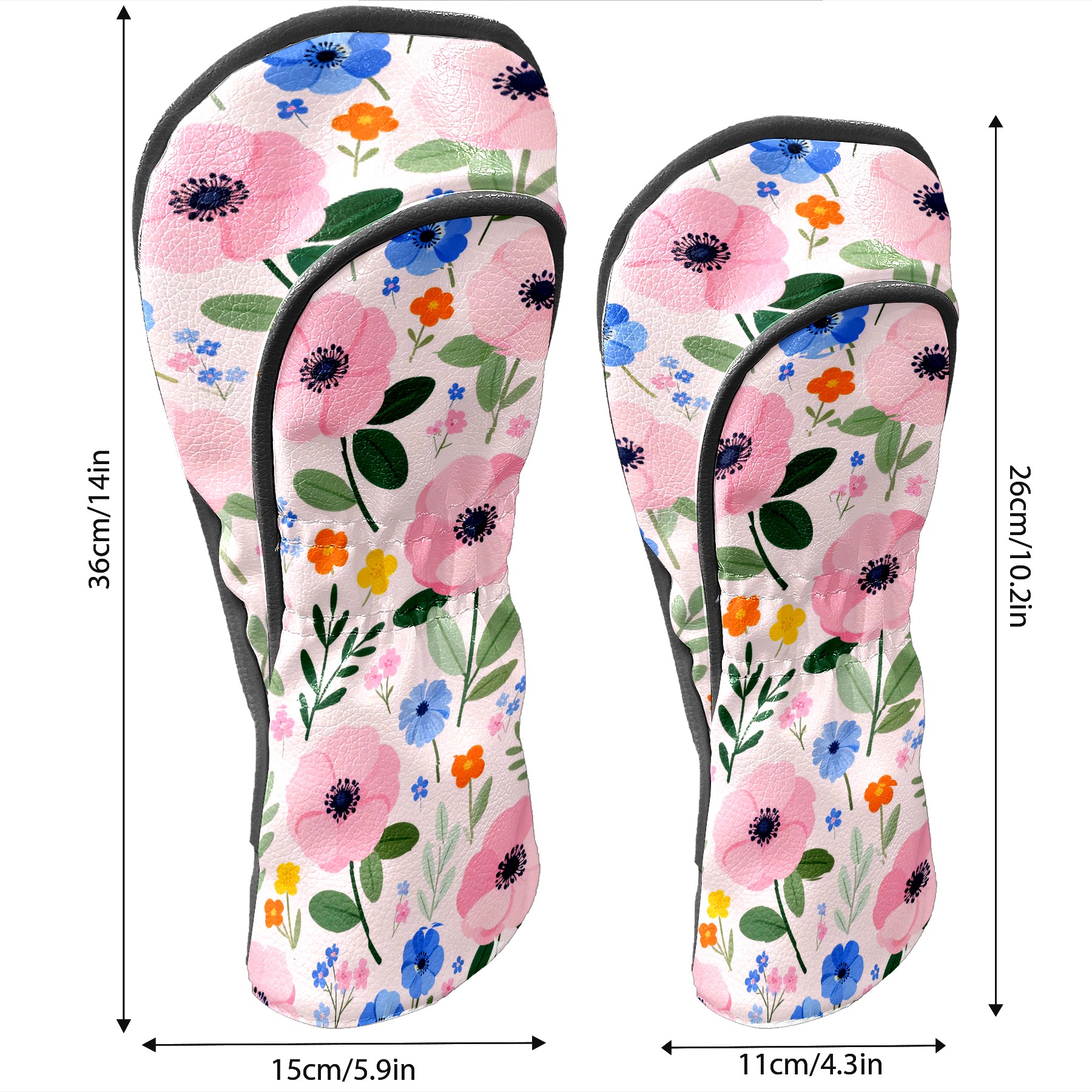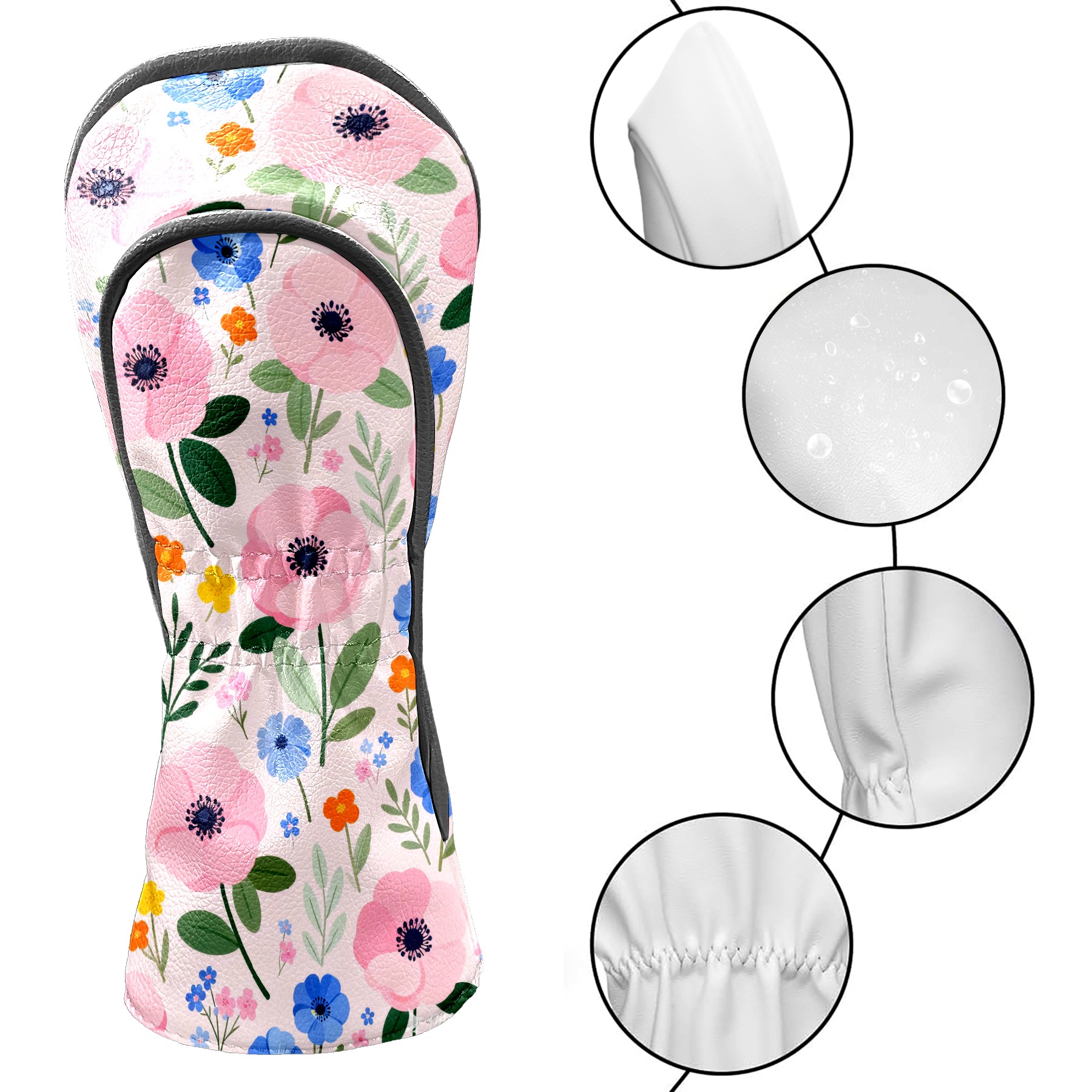 Golf Club Head Covers Premium Leather Driver Head Cover, Golf Head Covers for Woods and Driver Waterproof Golf Headcovers with Anti-Scratch Lining for Men Women (Flowers Pink)