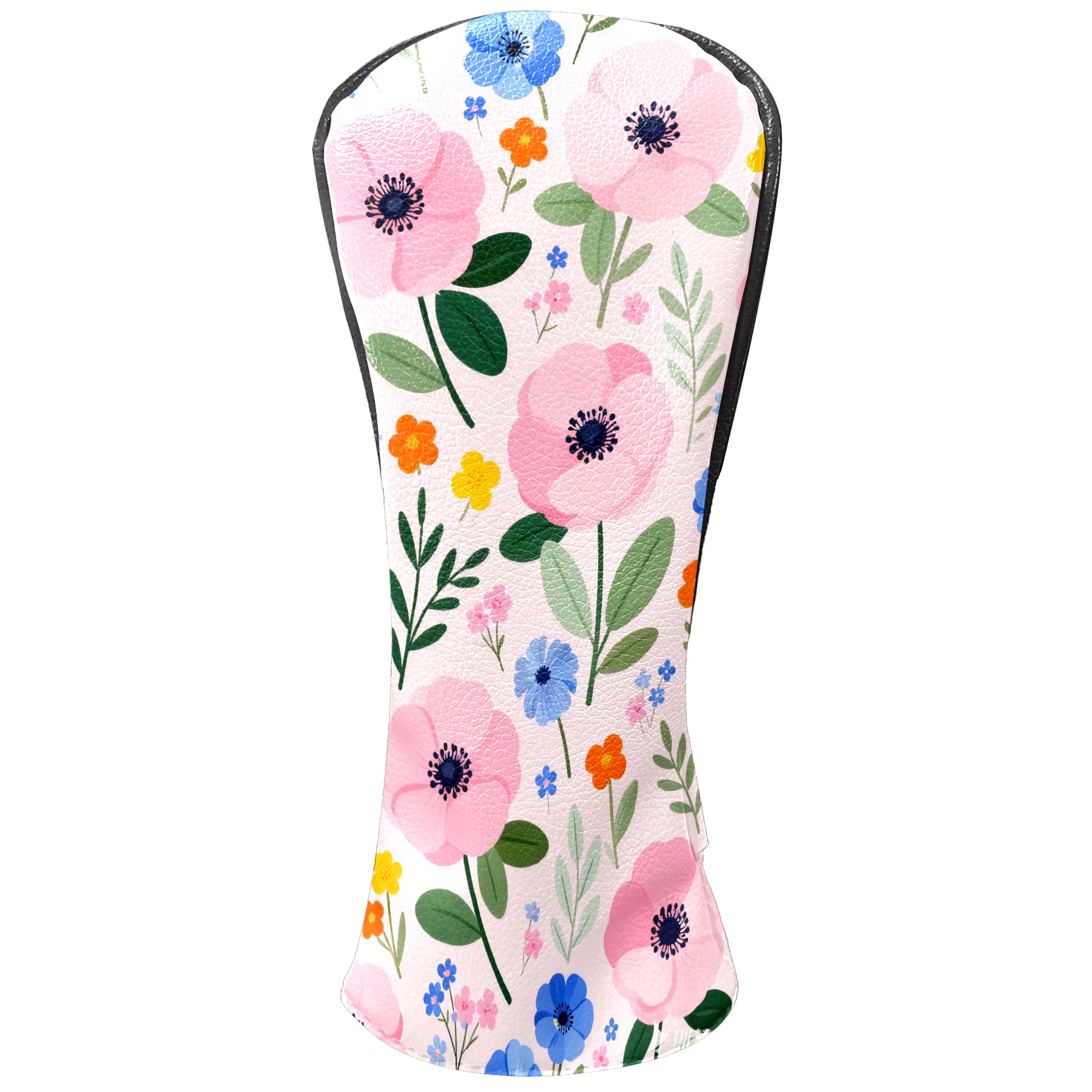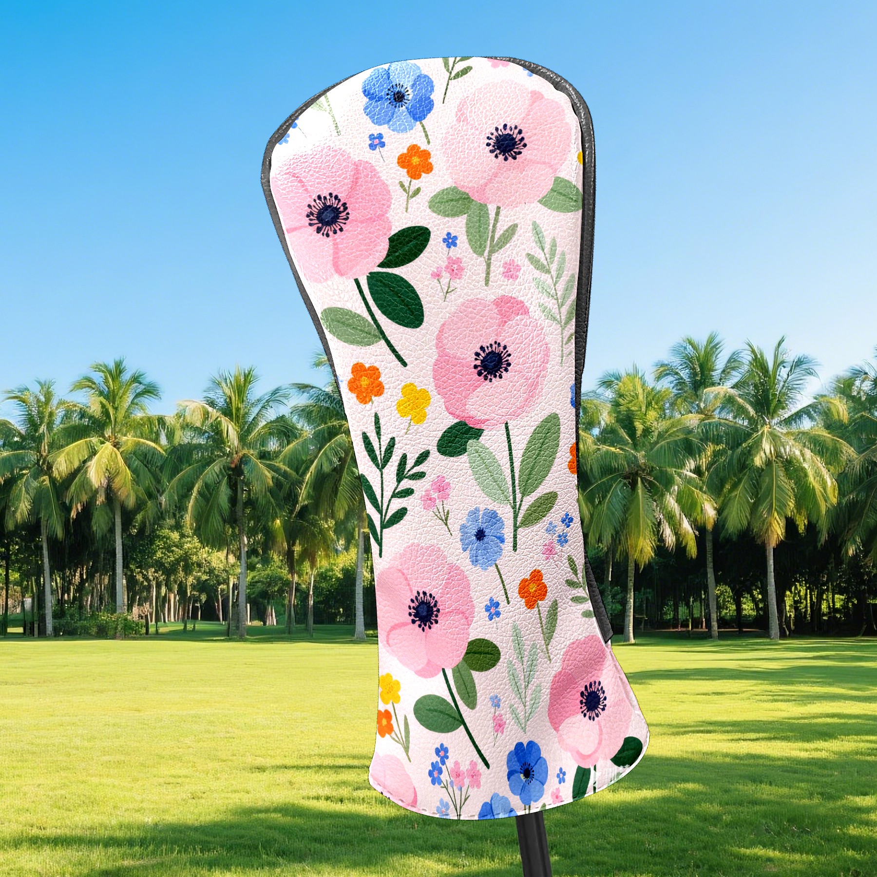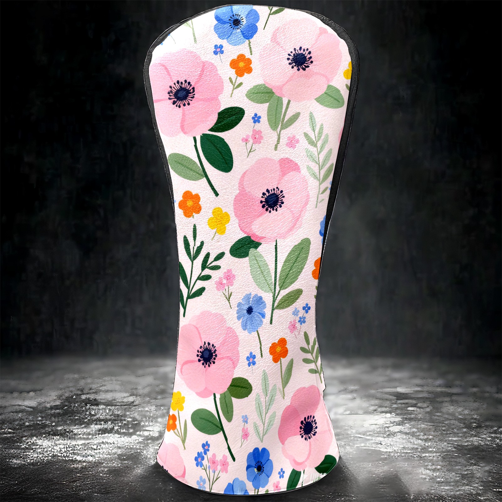 Golf Club Head Covers Premium Leather Driver Head Cover, Golf Head Covers for Woods and Driver Waterproof Golf Headcovers with Anti-Scratch Lining for Men Women (Flowers Pink)