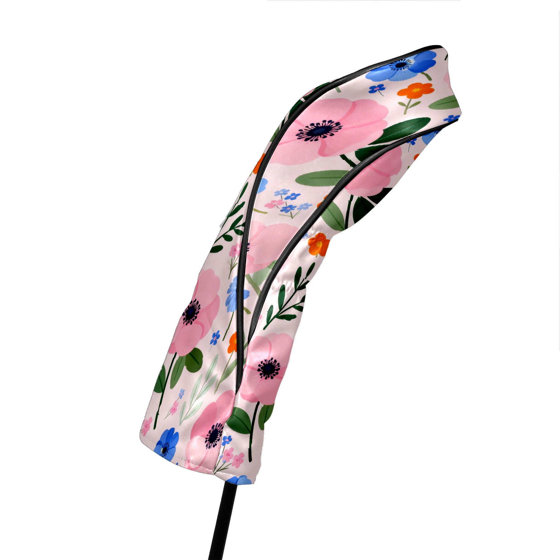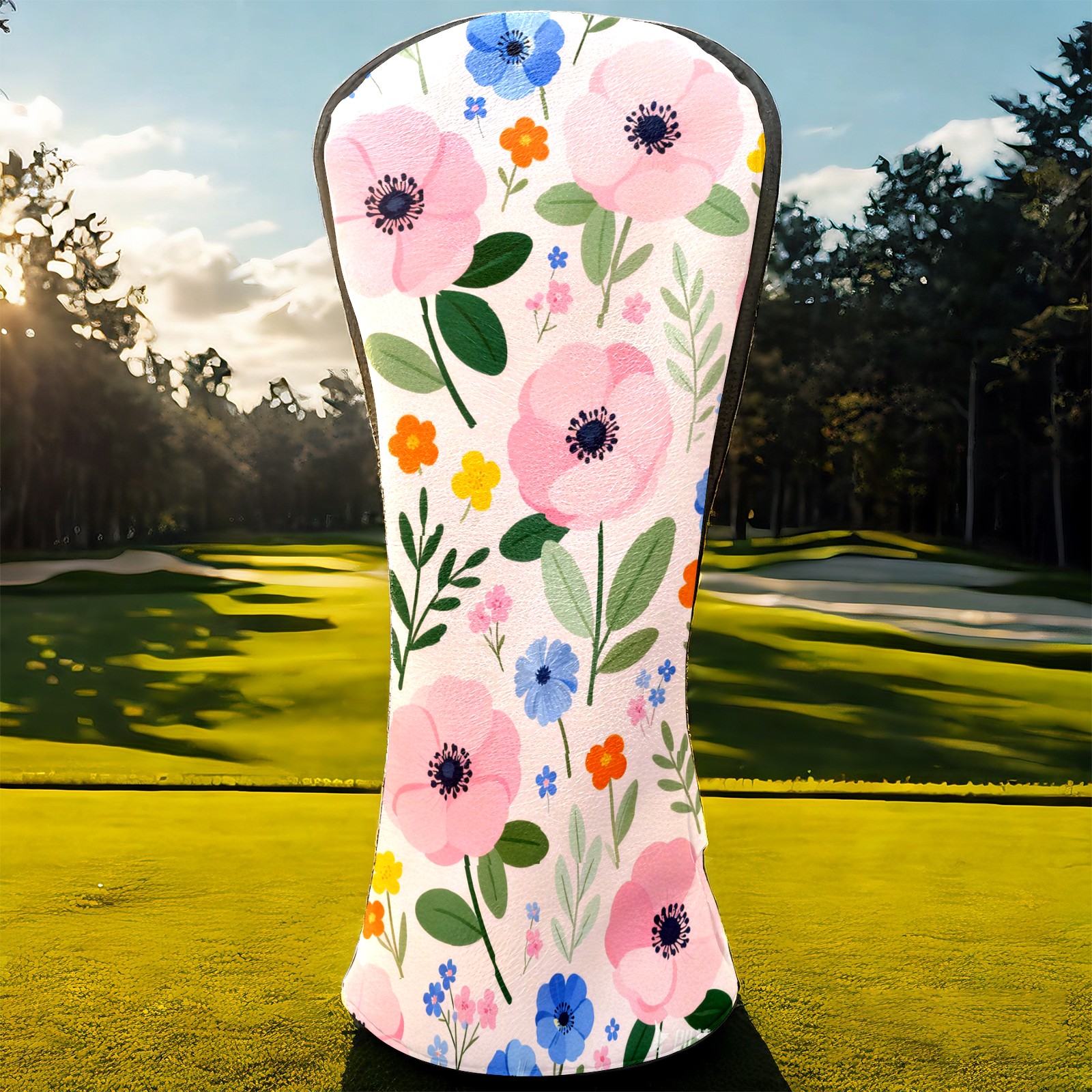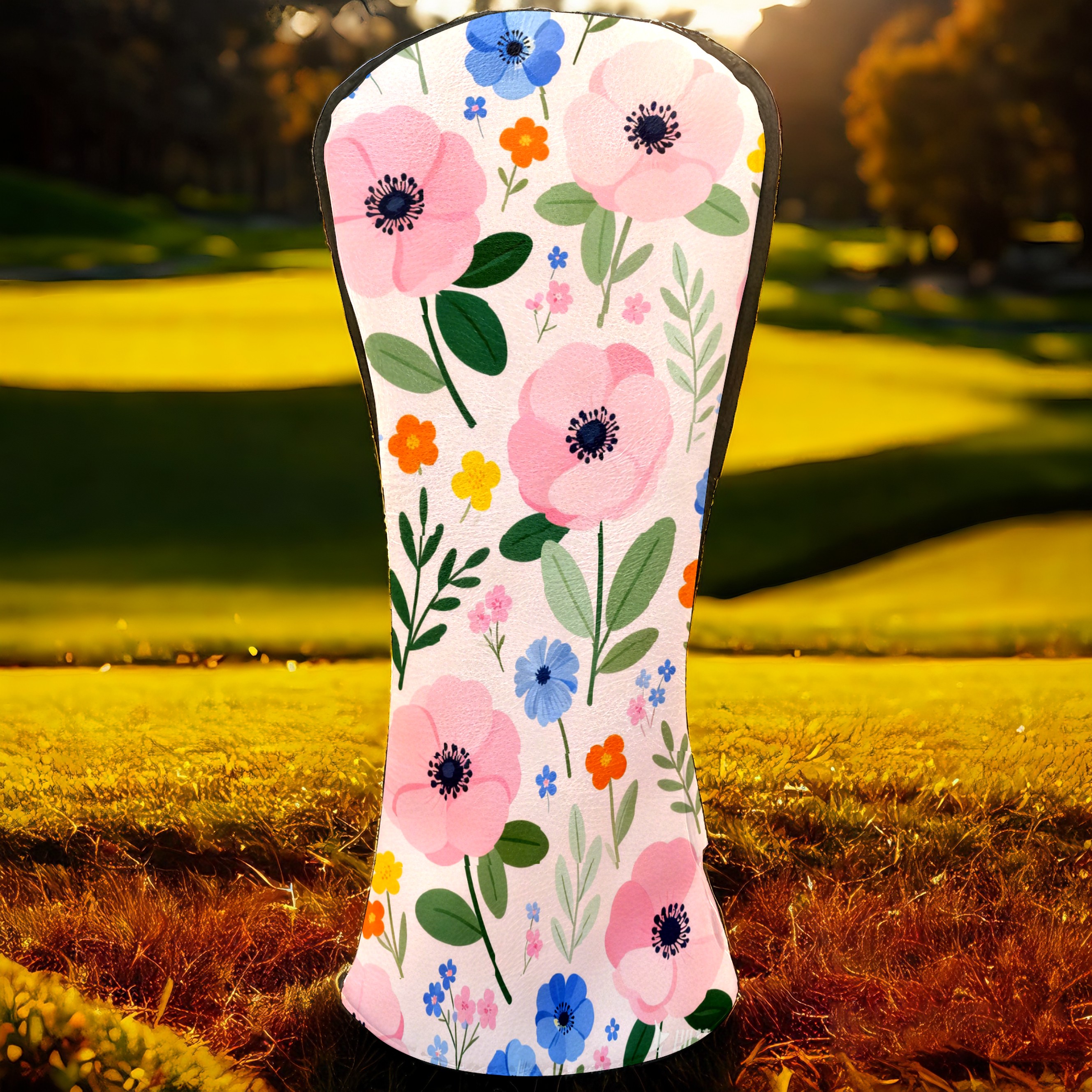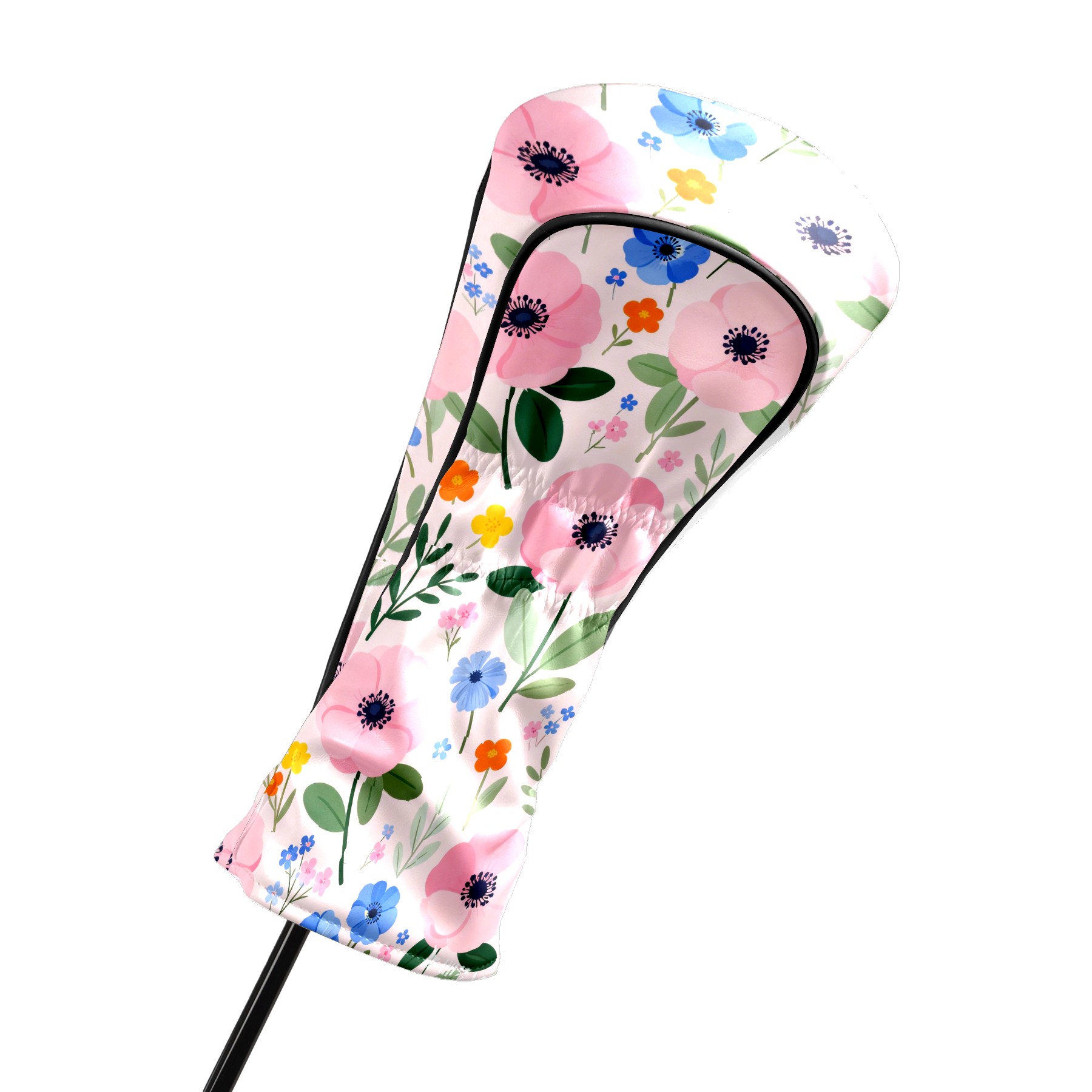 Golf Club Head Covers Premium Leather Driver Head Cover, Golf Head Covers for Woods and Driver Waterproof Golf Headcovers with Anti-Scratch Lining for Men Women (Flowers Pink)