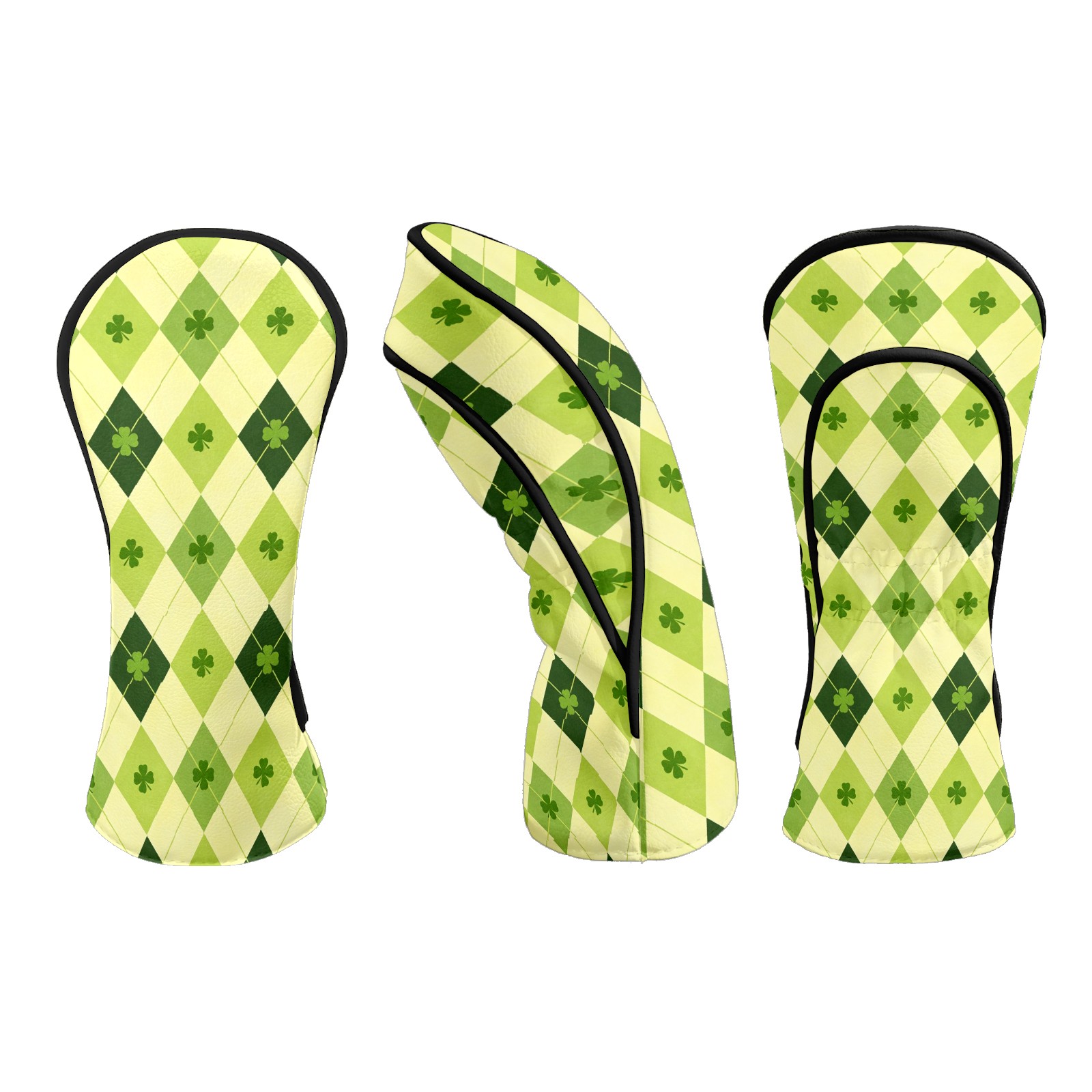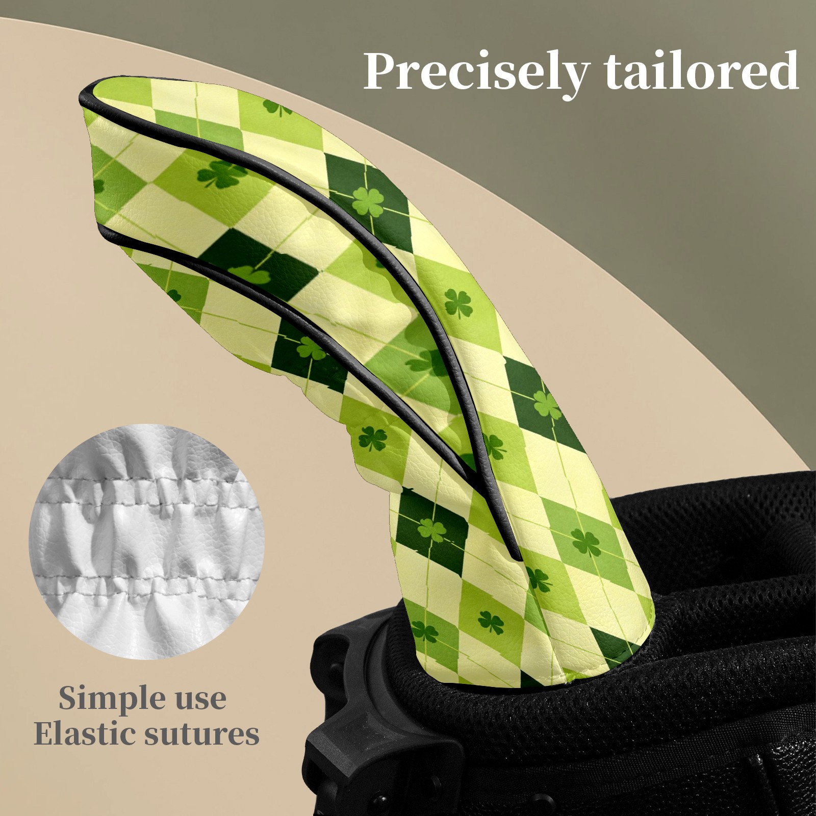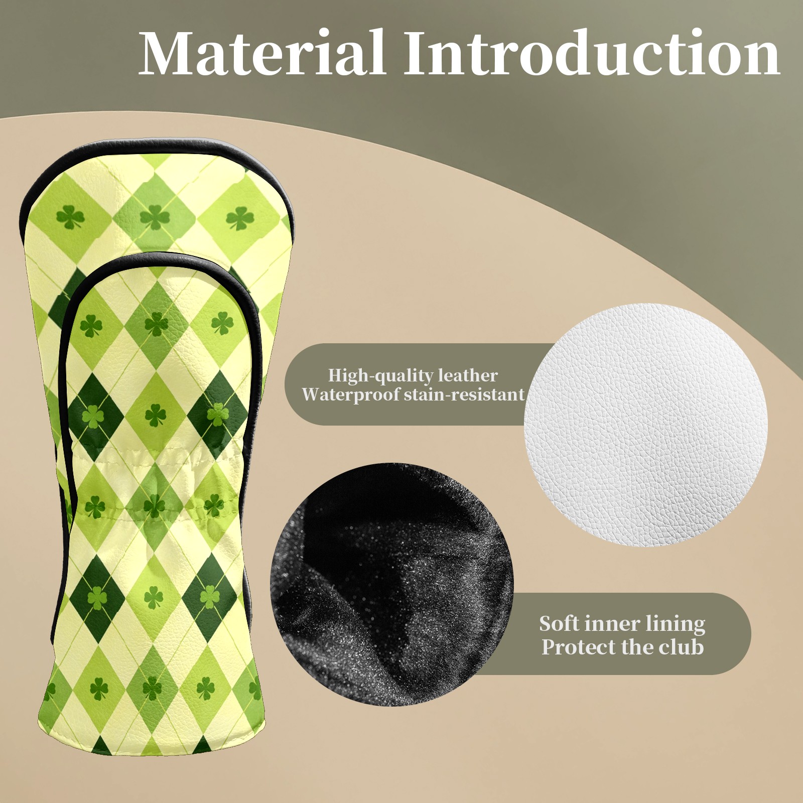 Golf Club Head Covers – Diamond Clover Yellow with Soft Plush Lining, Waterproof PU Leather for Driver & Fairway Woods | Durable, No-Slip Elastic Fit | Fun Gift for Men Who Golf