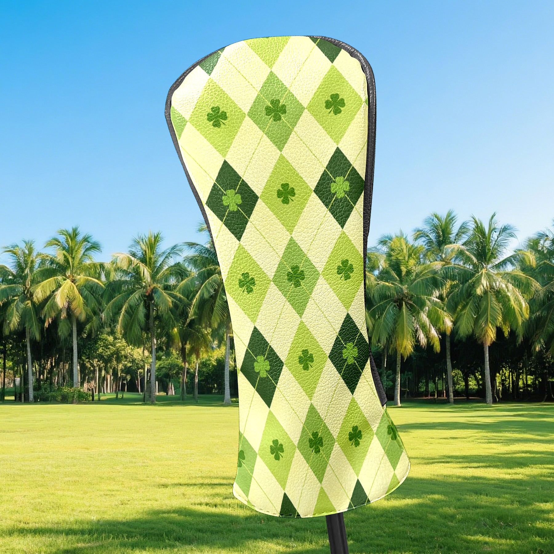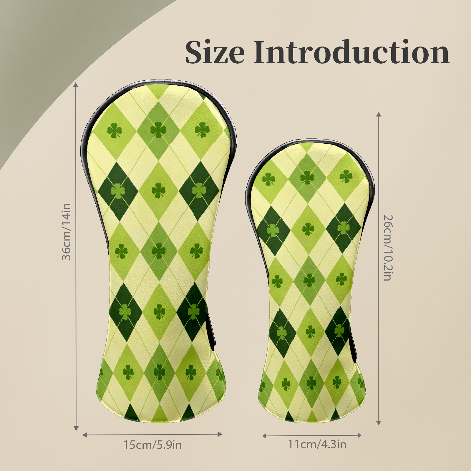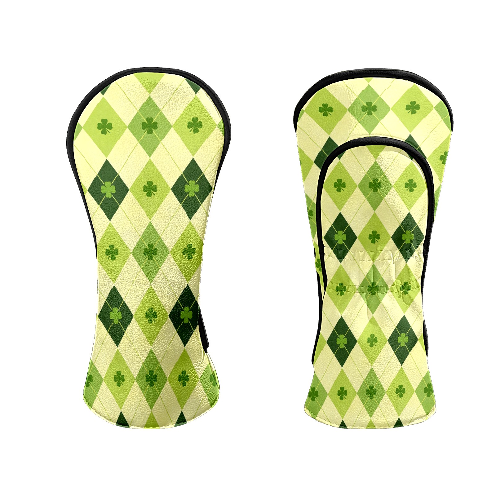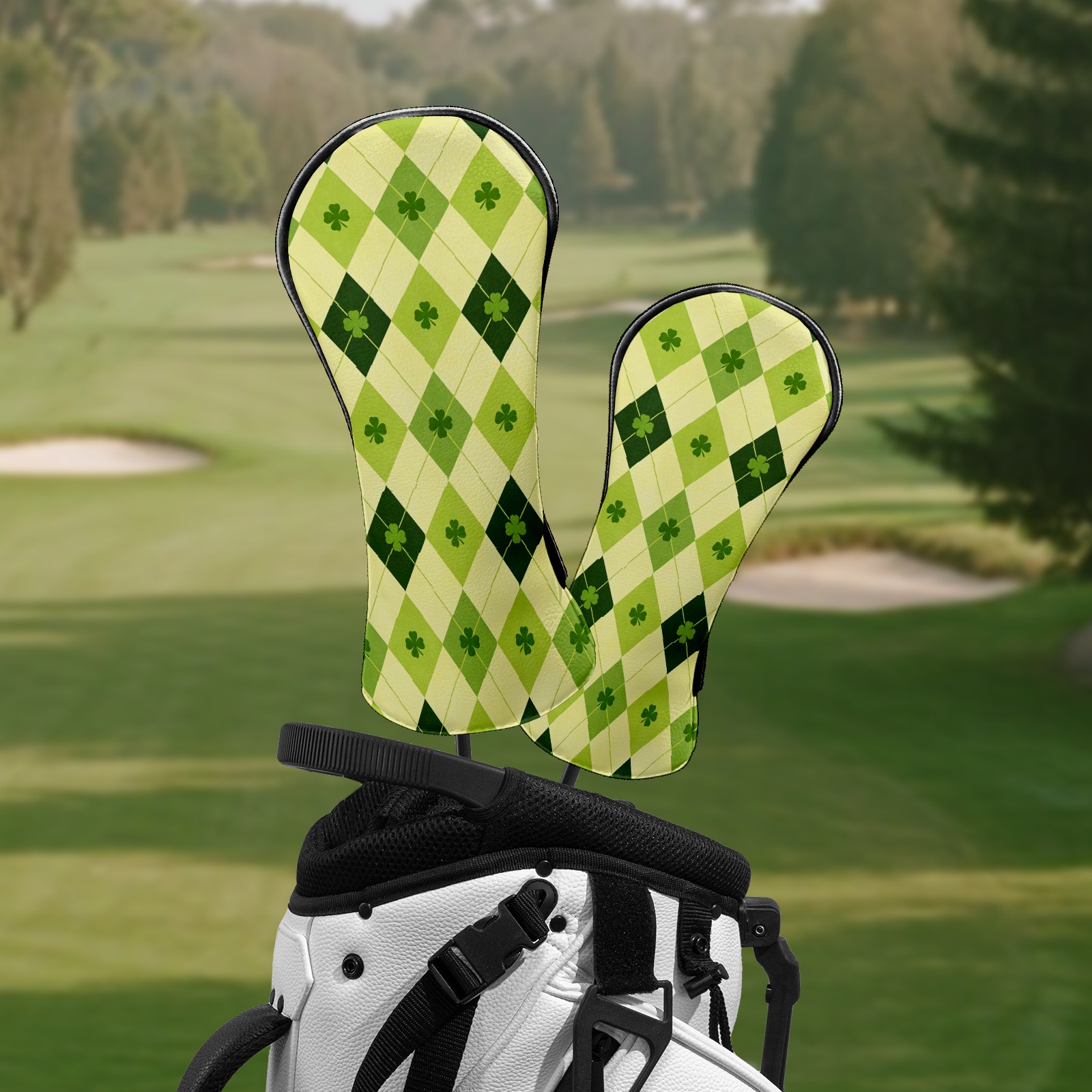 Golf Club Head Covers – Diamond Clover Yellow with Soft Plush Lining, Waterproof PU Leather for Driver & Fairway Woods | Durable, No-Slip Elastic Fit | Fun Gift for Men Who Golf