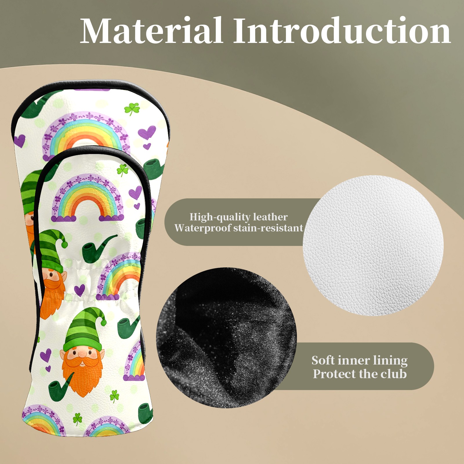 Golf Club Head Covers – Cute Gnome Orange with Soft Plush Lining, Waterproof PU Leather for Driver & Fairway Woods | Durable, No-Slip Elastic Fit | Fun Gift for Men Who Golf