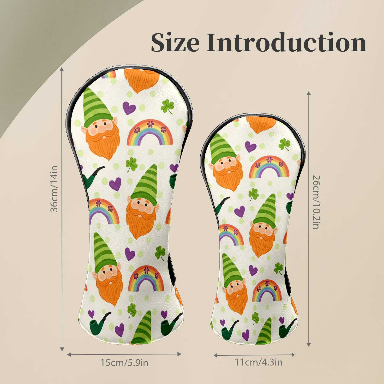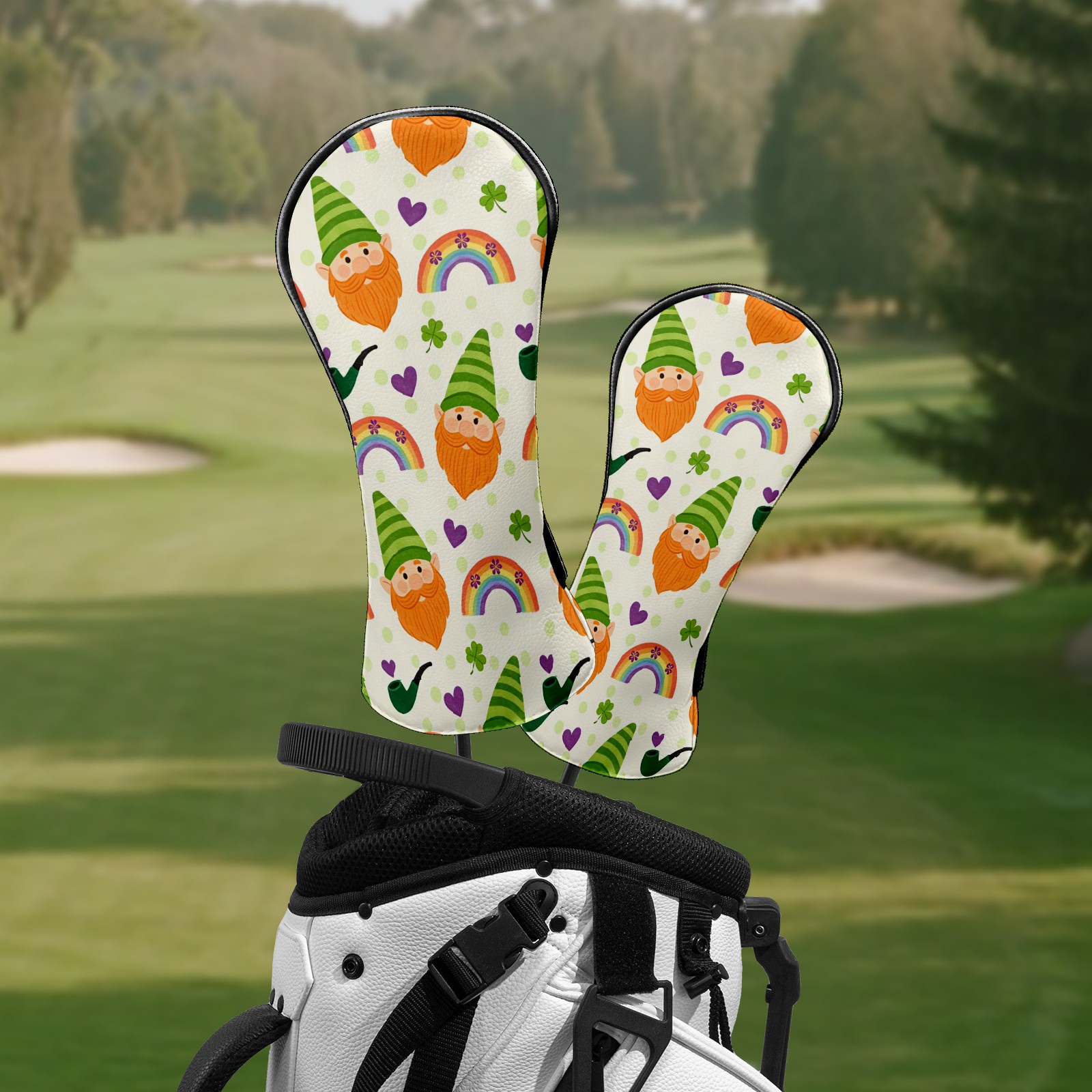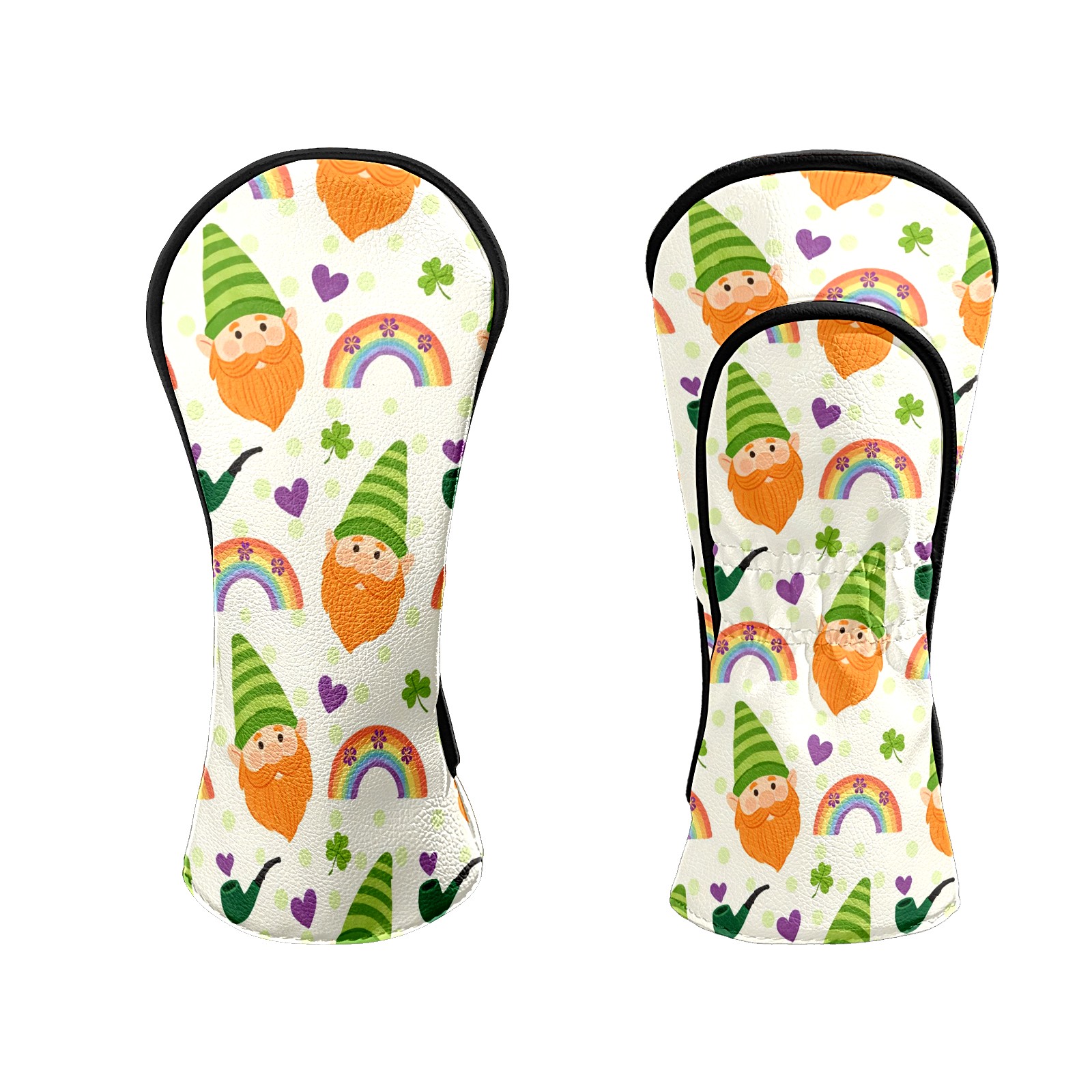 Golf Club Head Covers – Gnome Rainbow Orange with Soft Plush Lining, Waterproof PU Leather for Driver & Fairway Woods | Durable, No-Slip Elastic Fit | Fun Gift for Men Who Golf