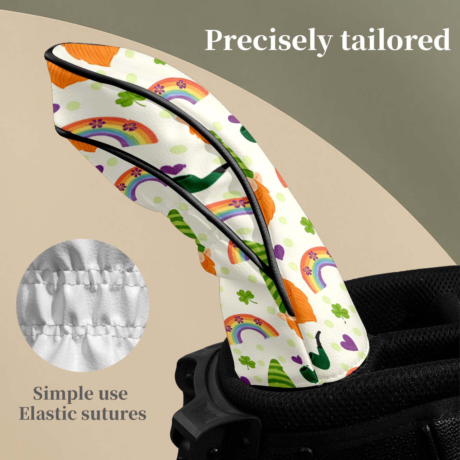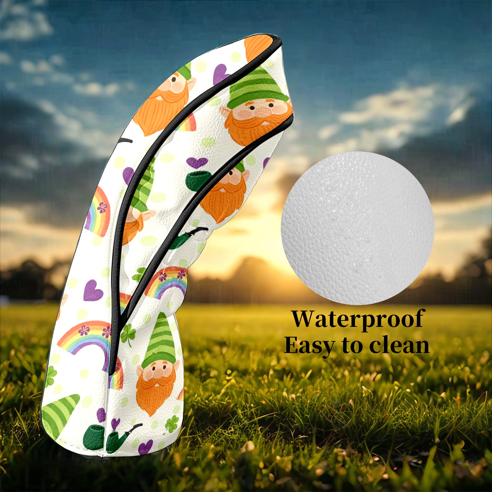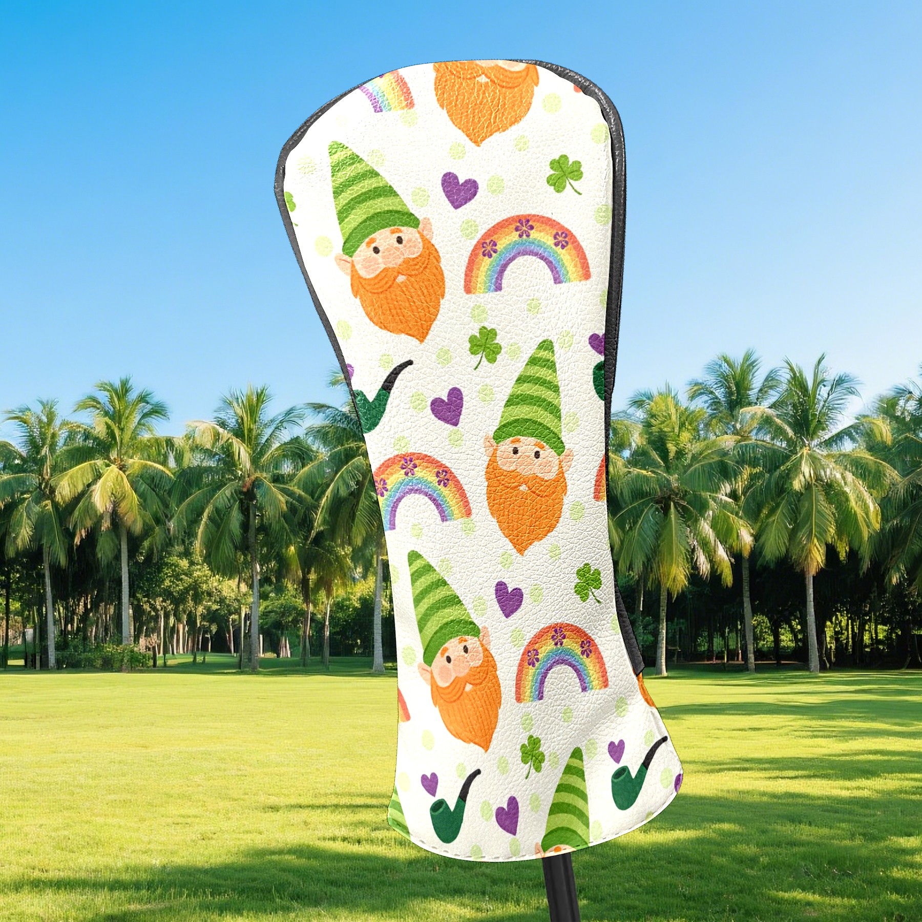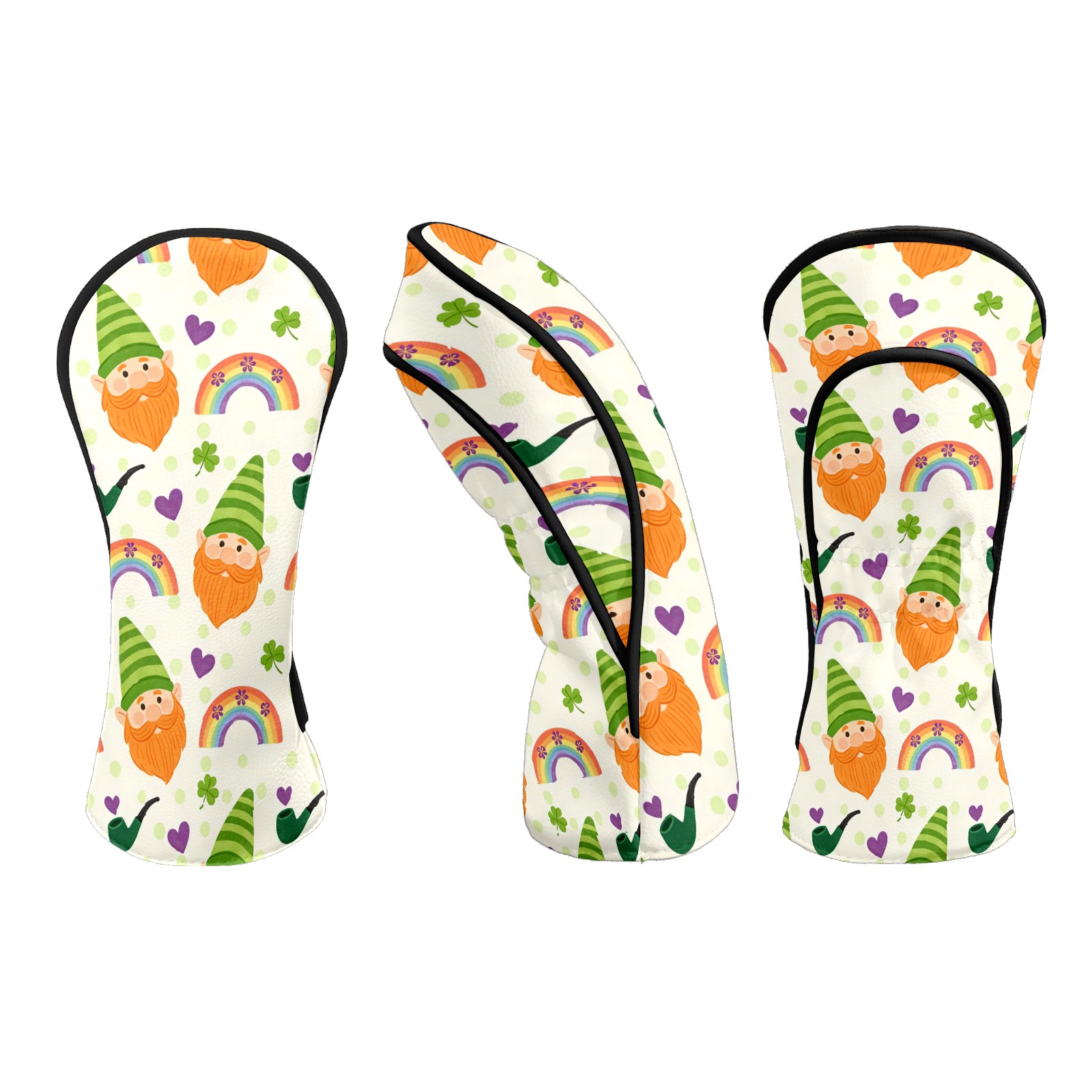 Golf Club Head Covers – Gnome Rainbow Orange with Soft Plush Lining, Waterproof PU Leather for Driver & Fairway Woods | Durable, No-Slip Elastic Fit | Fun Gift for Men Who Golf