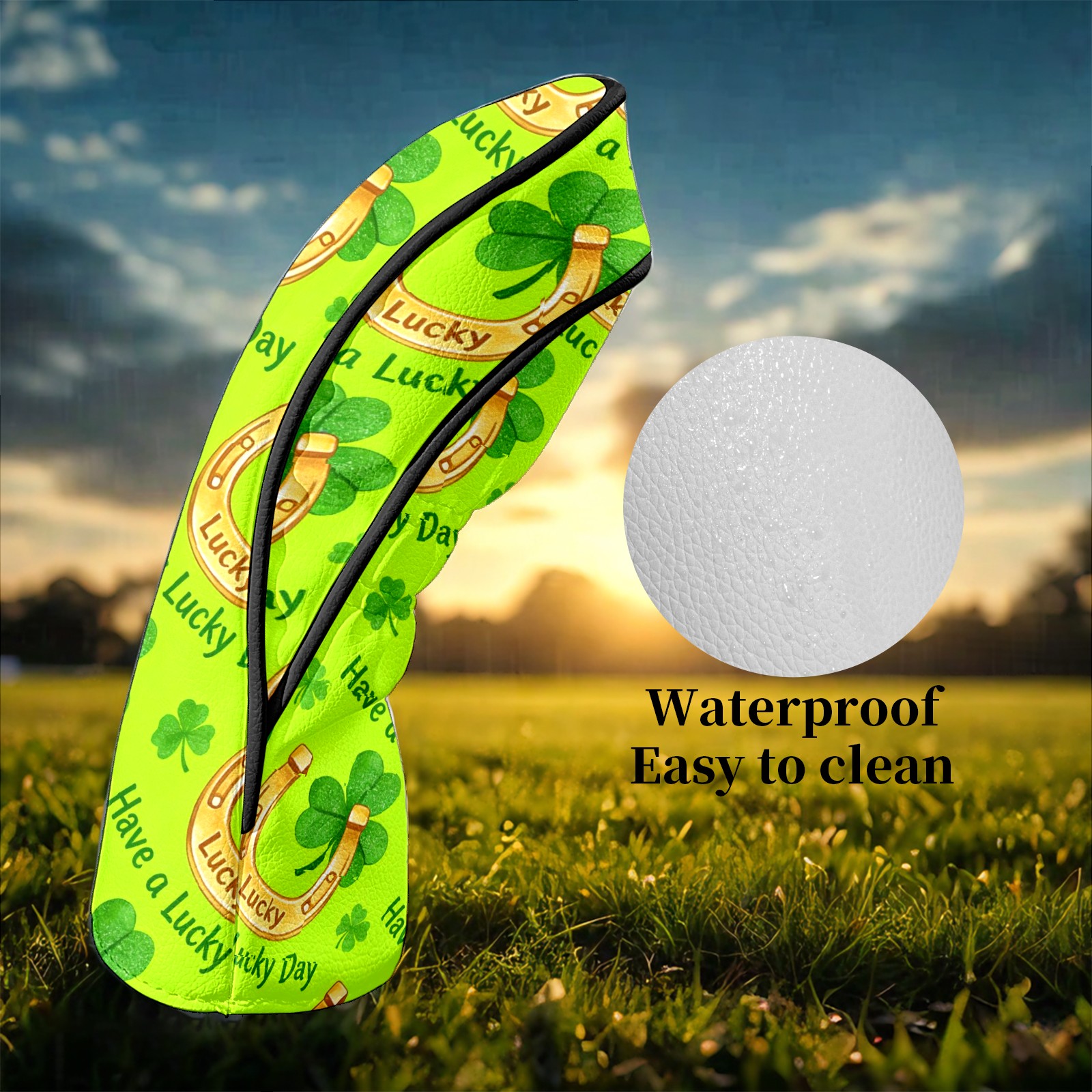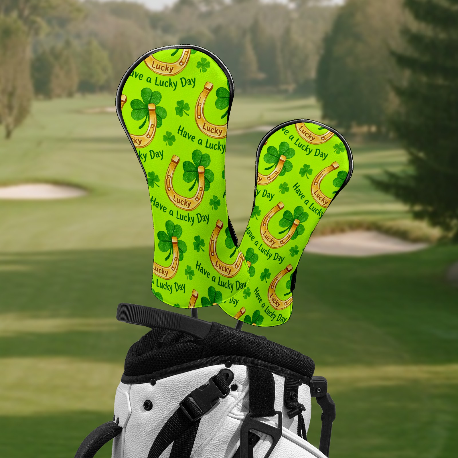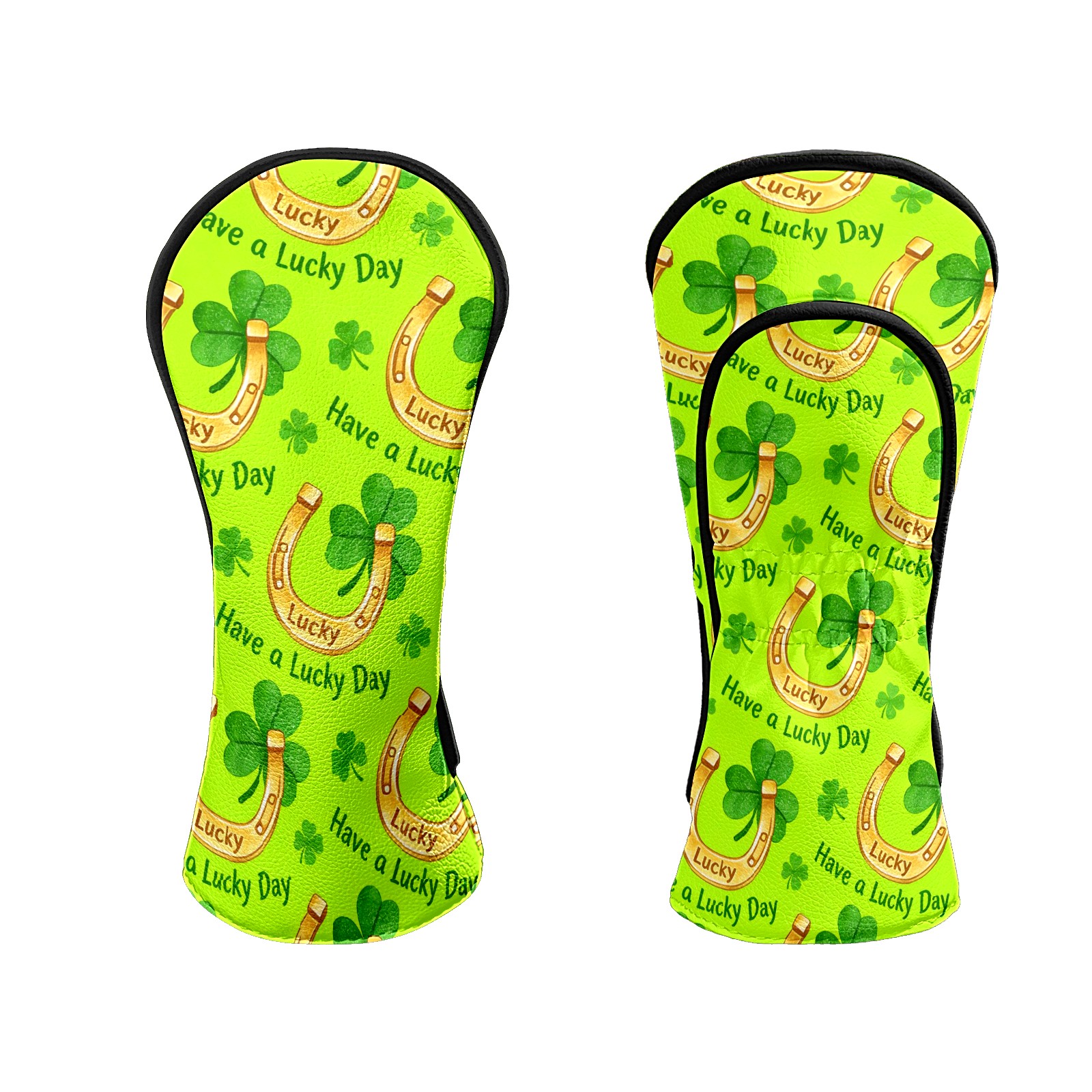 Golf Club Head Covers – Horseshoe Clover Yellow with Soft Plush Lining, Waterproof PU Leather for Driver & Fairway Woods | Durable, No-Slip Elastic Fit | Fun Gift for Men Who Golf