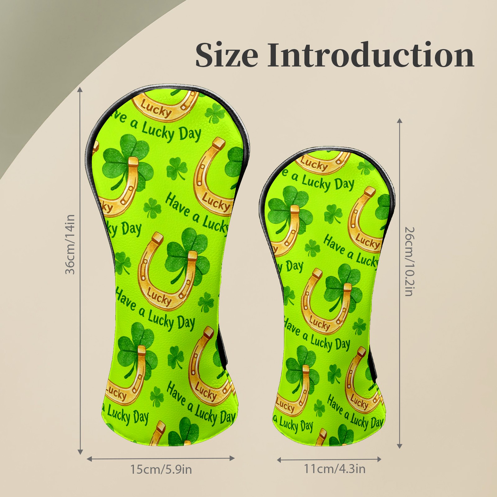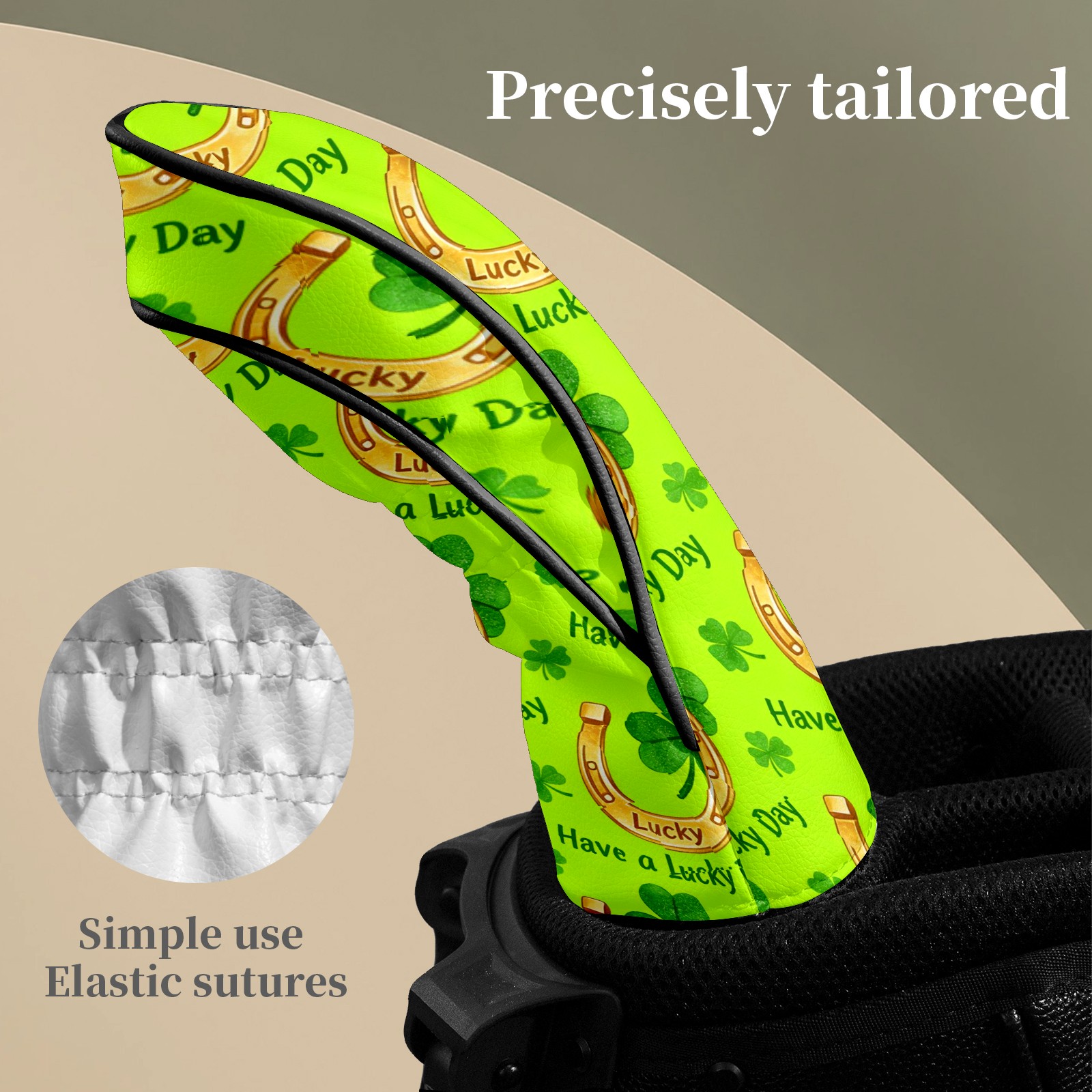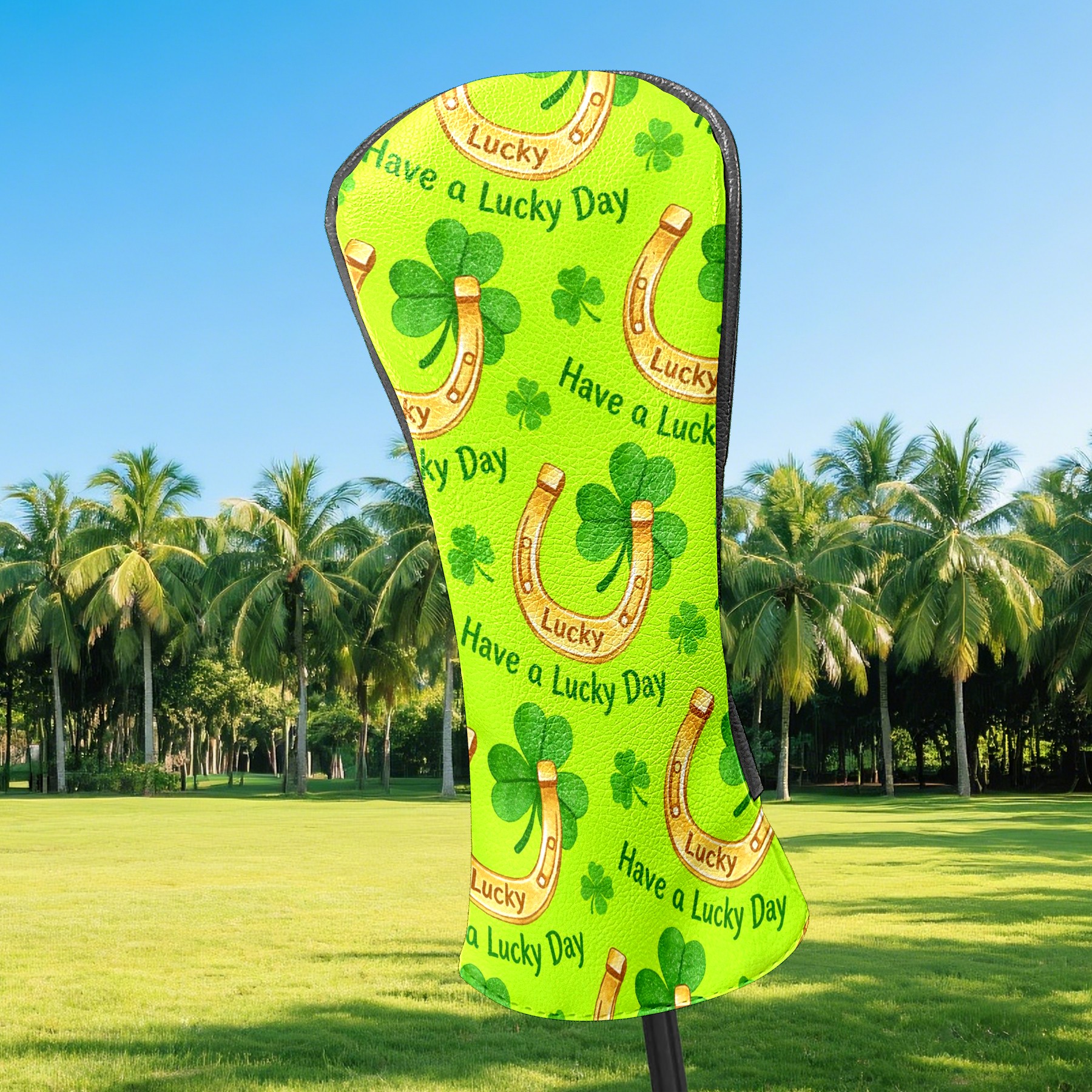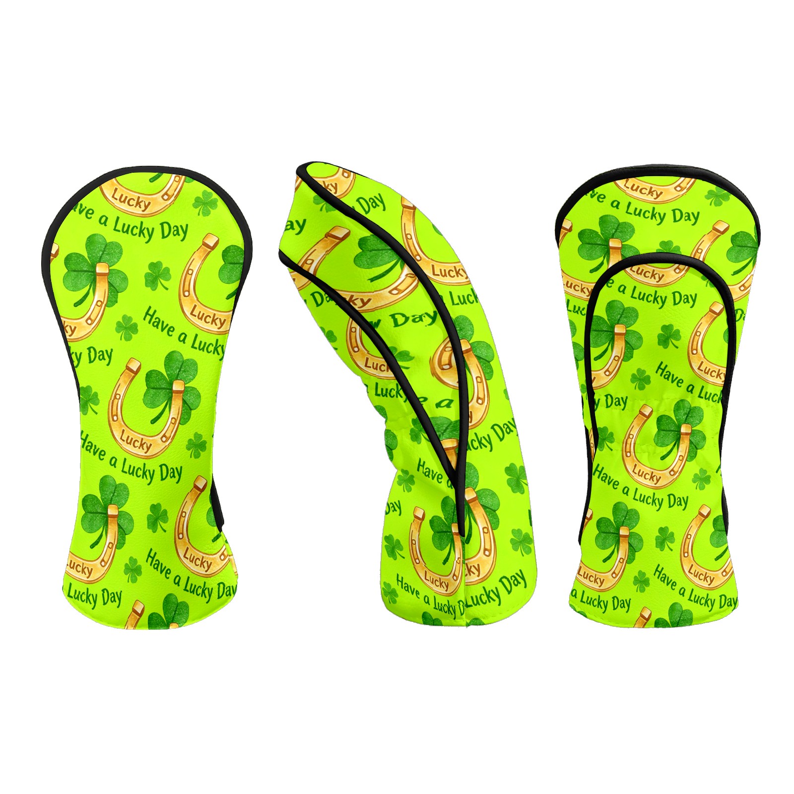 Golf Club Head Covers – Horseshoe Clover Yellow with Soft Plush Lining, Waterproof PU Leather for Driver & Fairway Woods | Durable, No-Slip Elastic Fit | Fun Gift for Men Who Golf