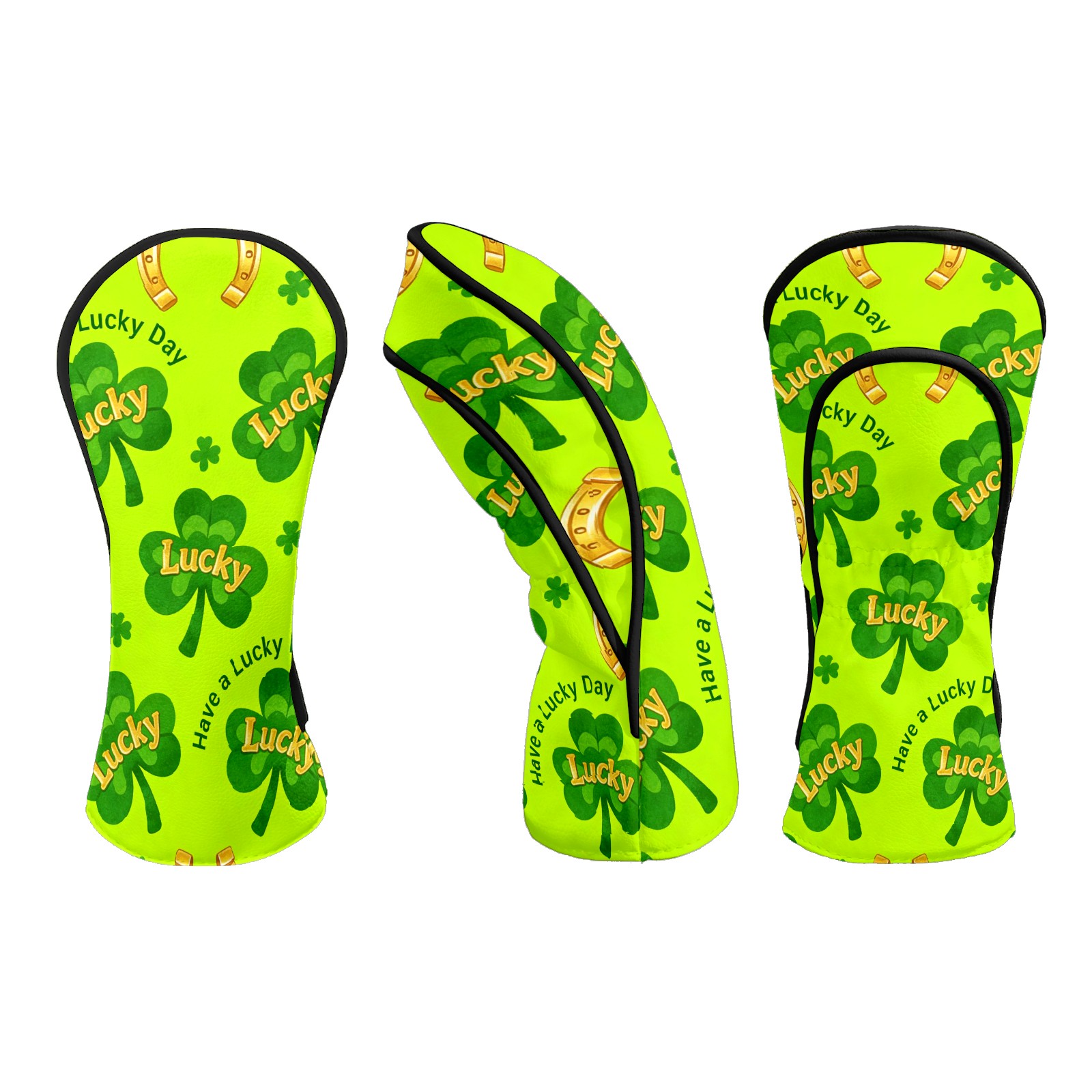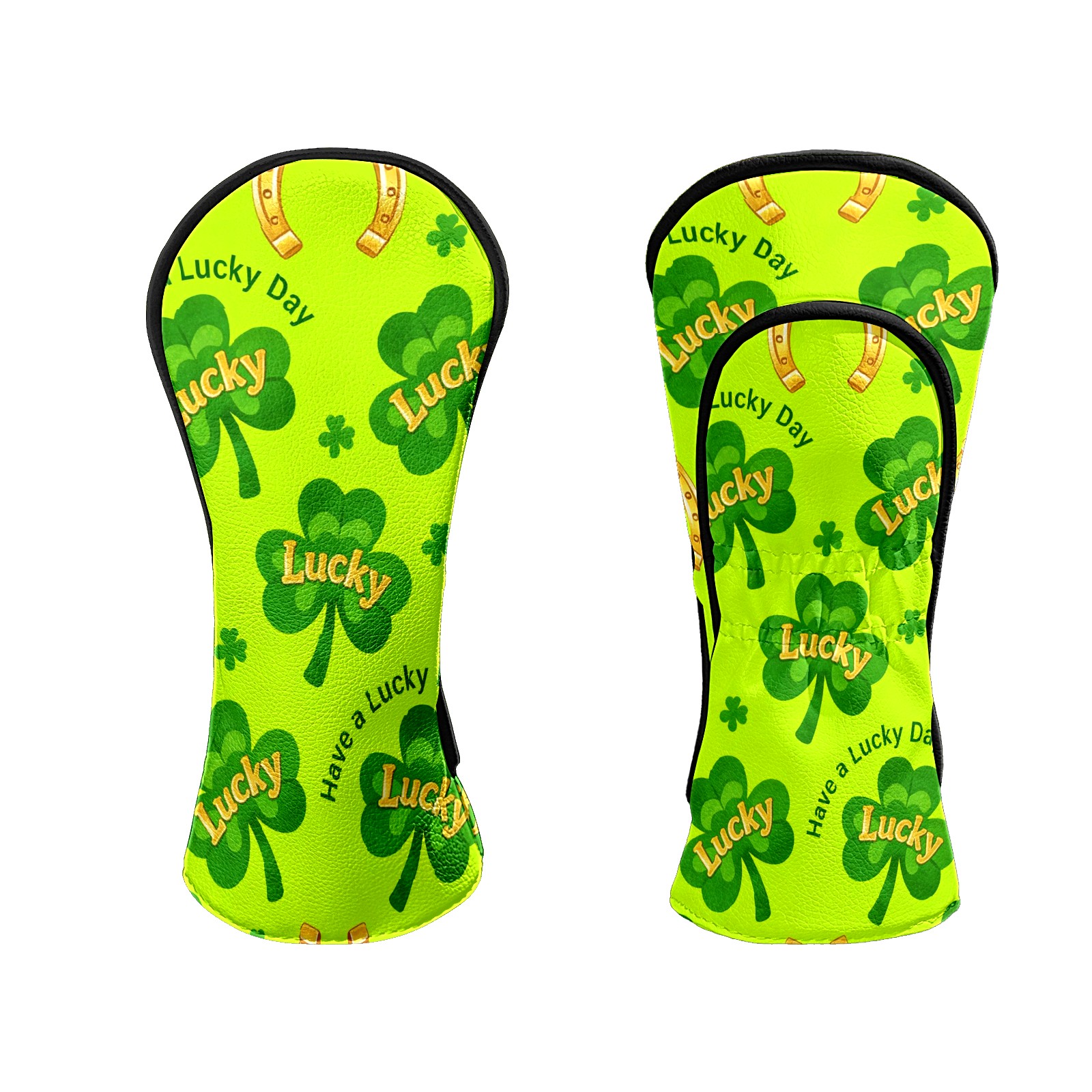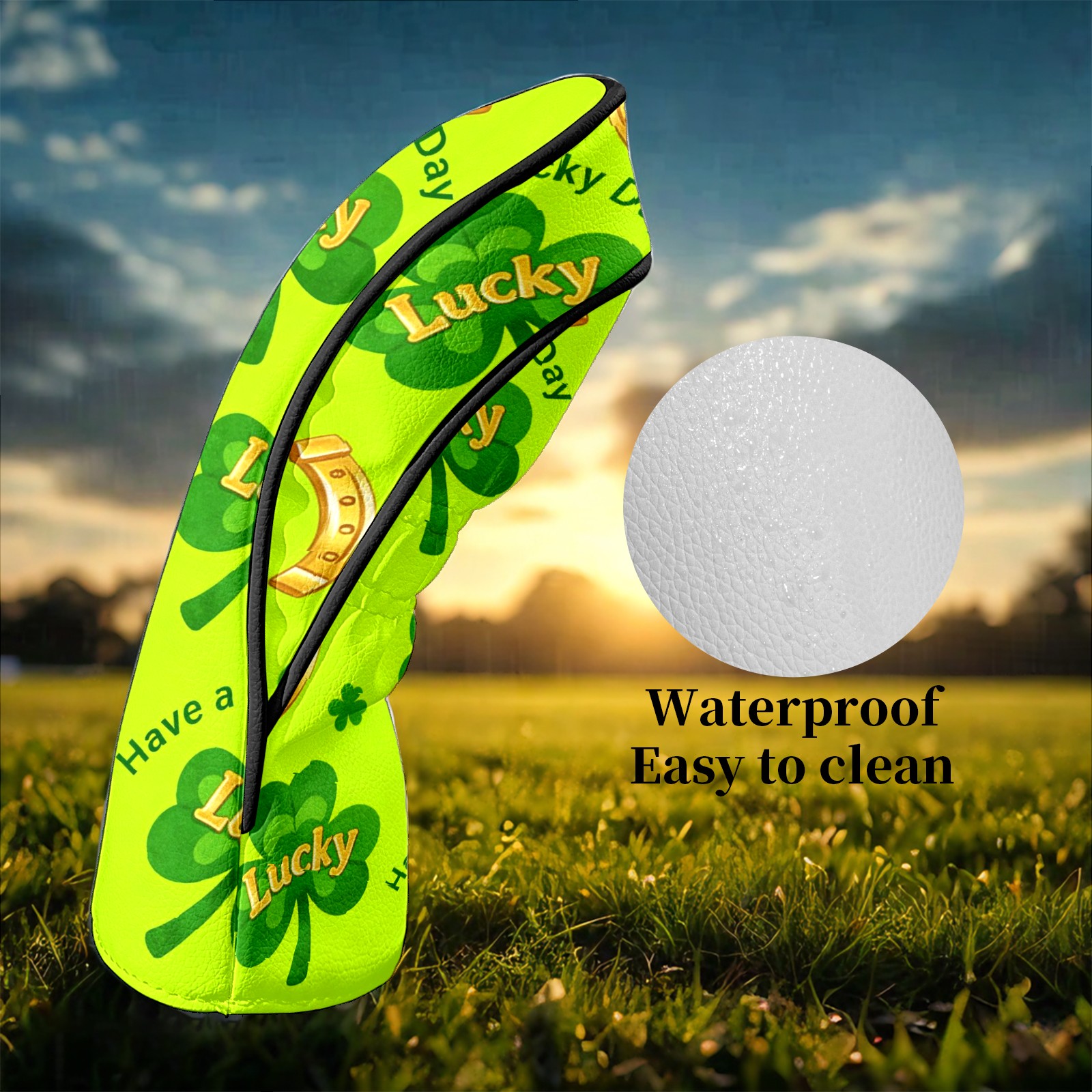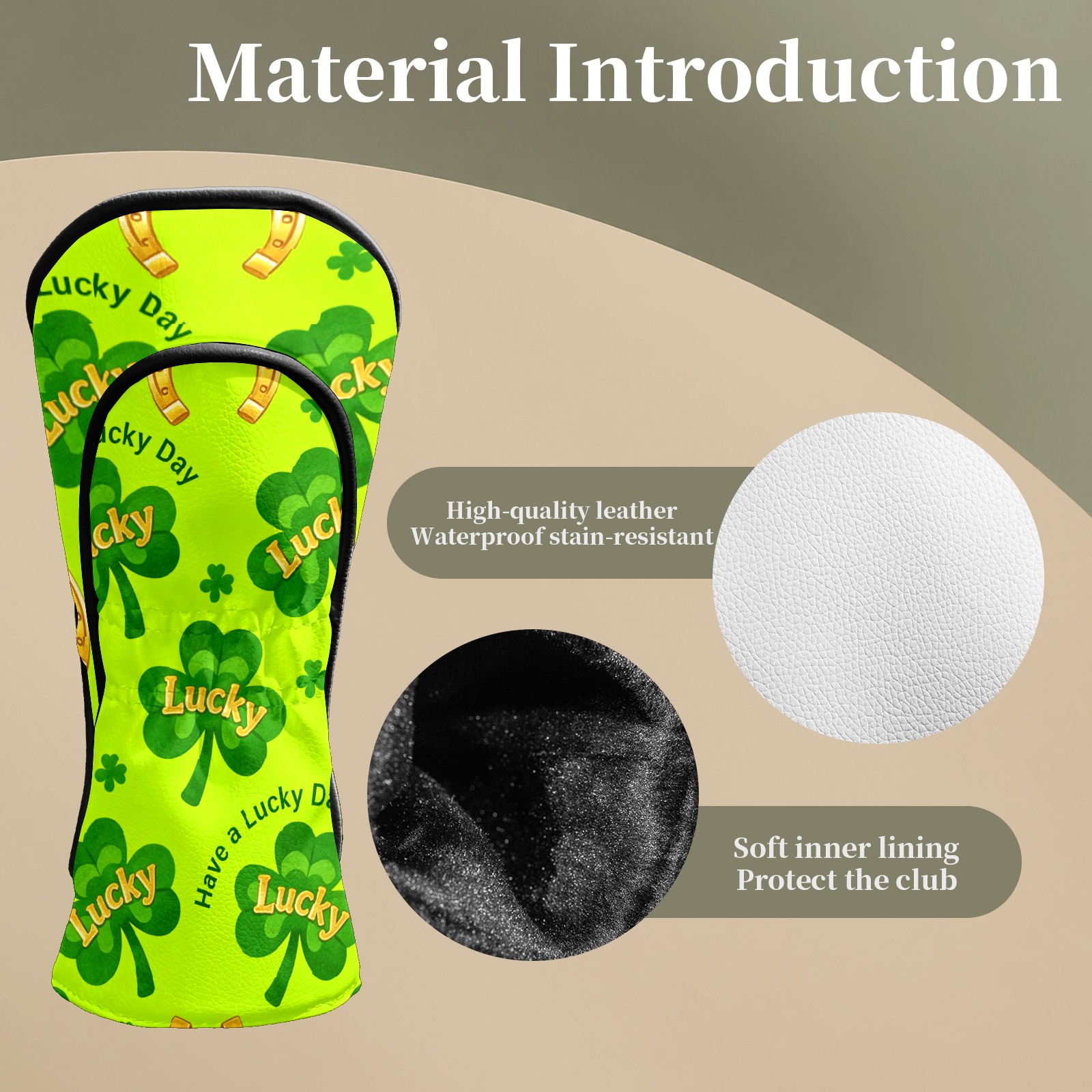 Golf Club Head Covers – Lucky Clover Green with Soft Plush Lining, Waterproof PU Leather for Driver & Fairway Woods | Durable, No-Slip Elastic Fit | Fun Gift for Men Who Golf
