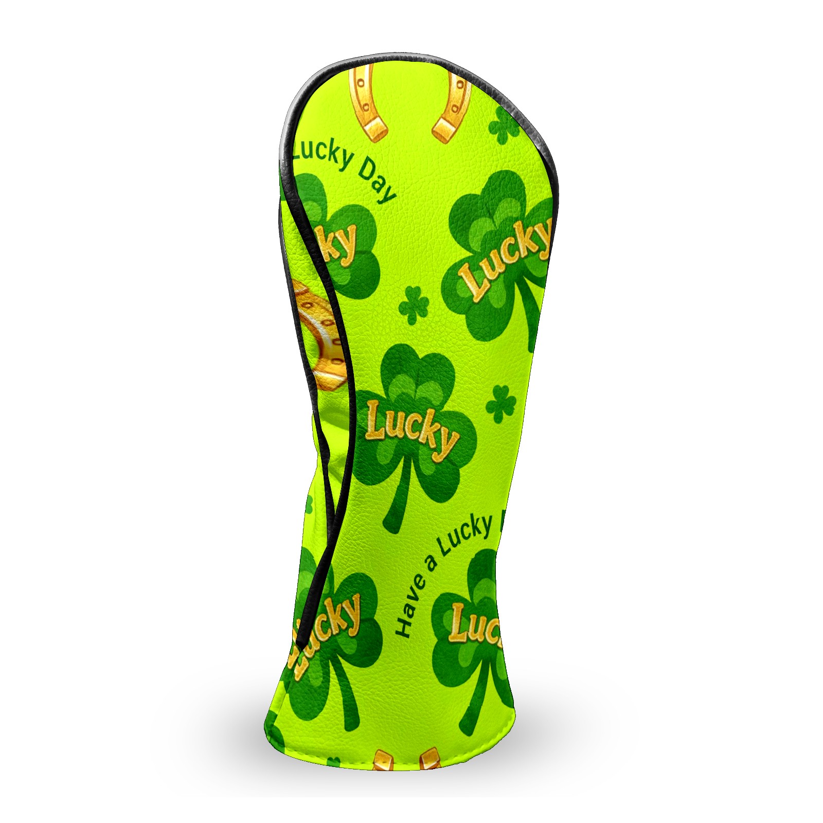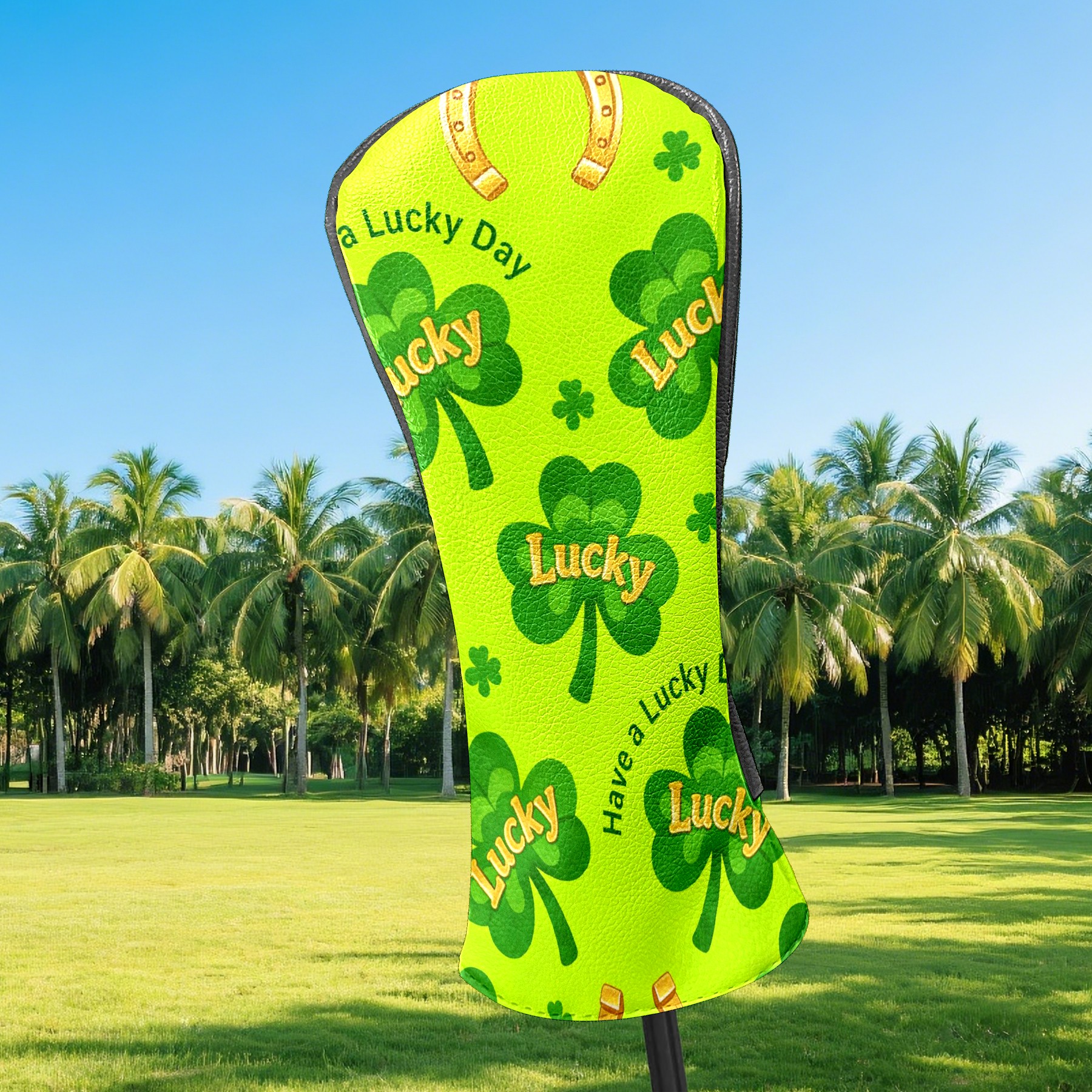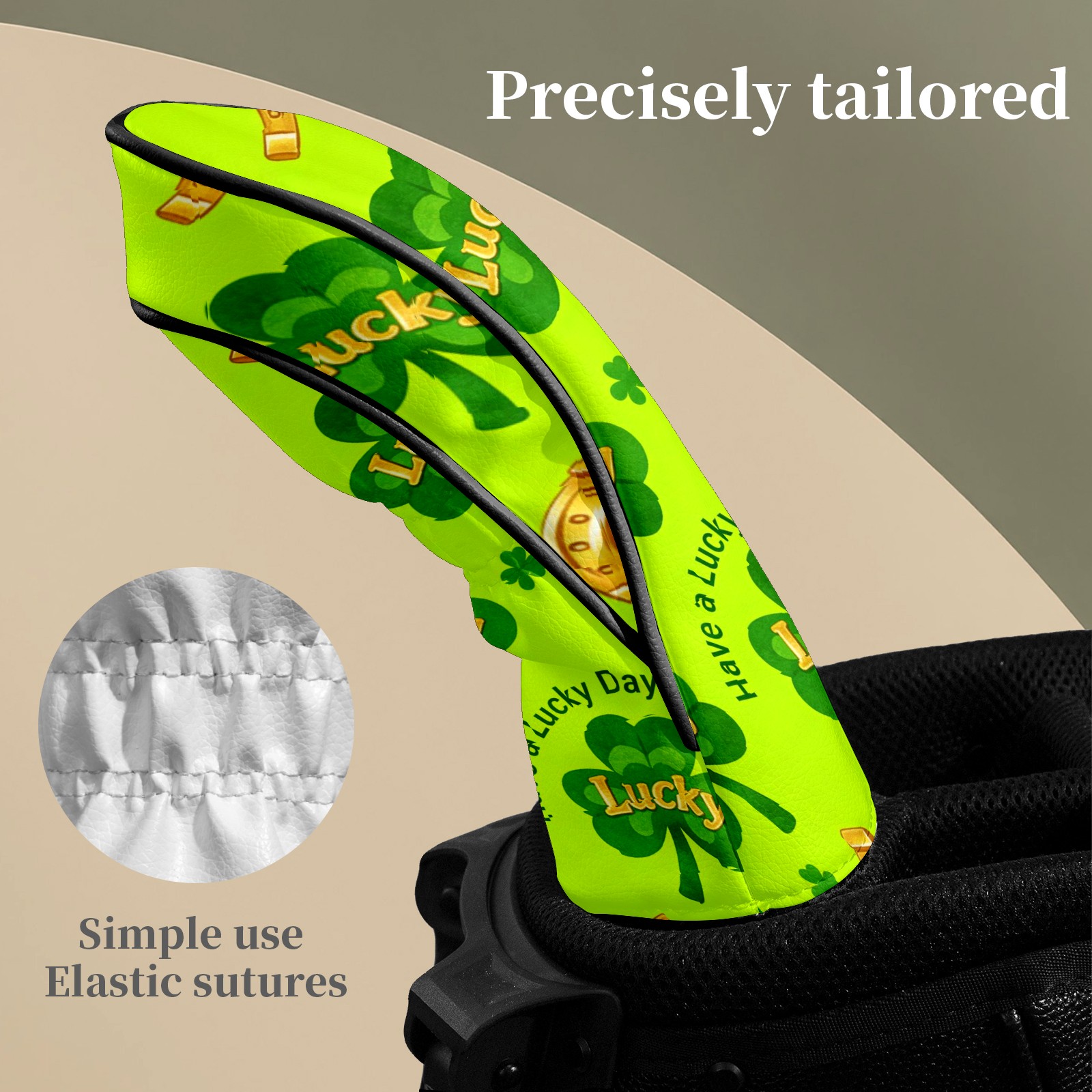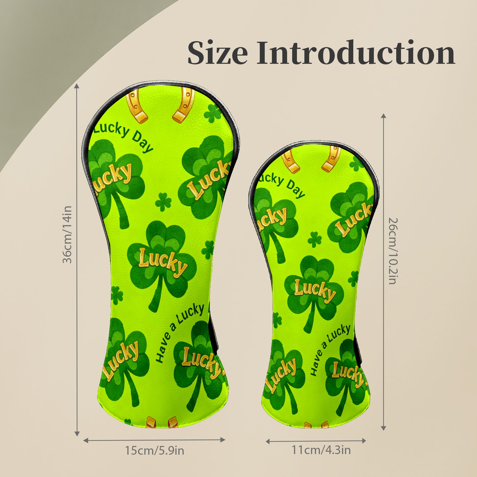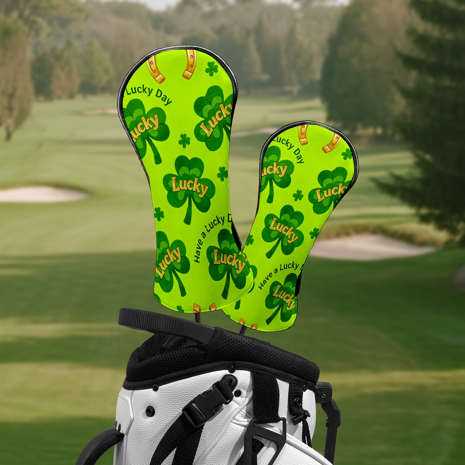 Golf Club Head Covers – Lucky Clover Green with Soft Plush Lining, Waterproof PU Leather for Driver & Fairway Woods | Durable, No-Slip Elastic Fit | Fun Gift for Men Who Golf
