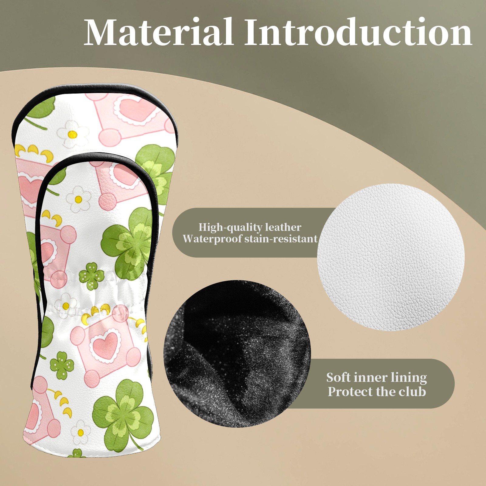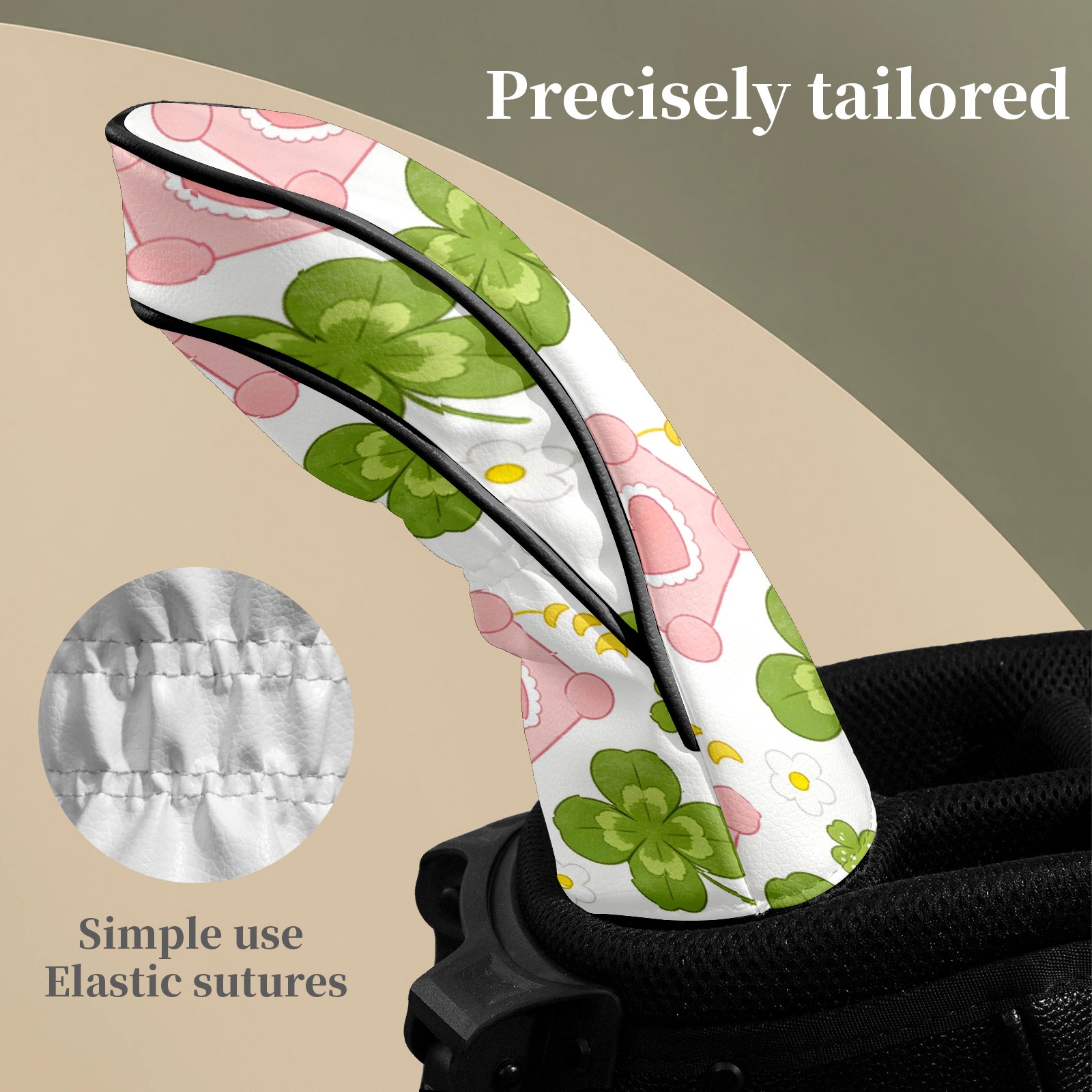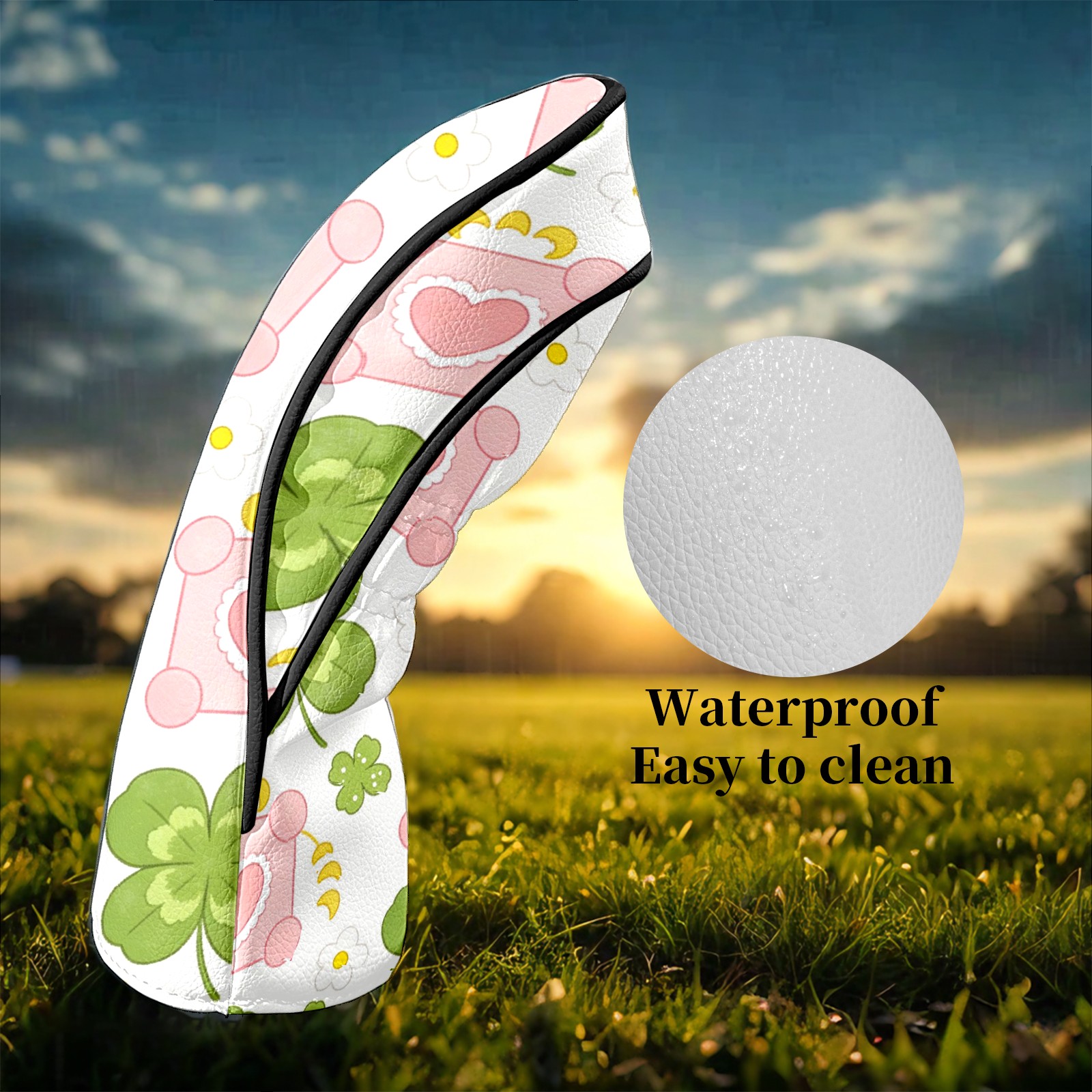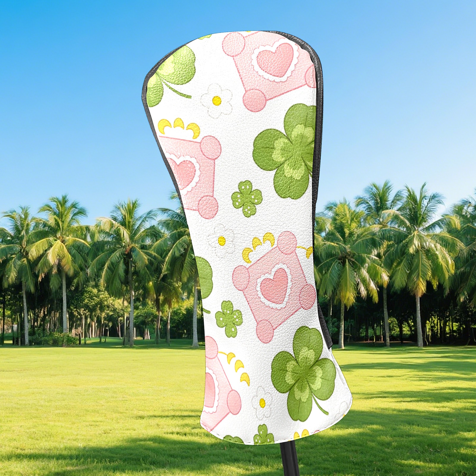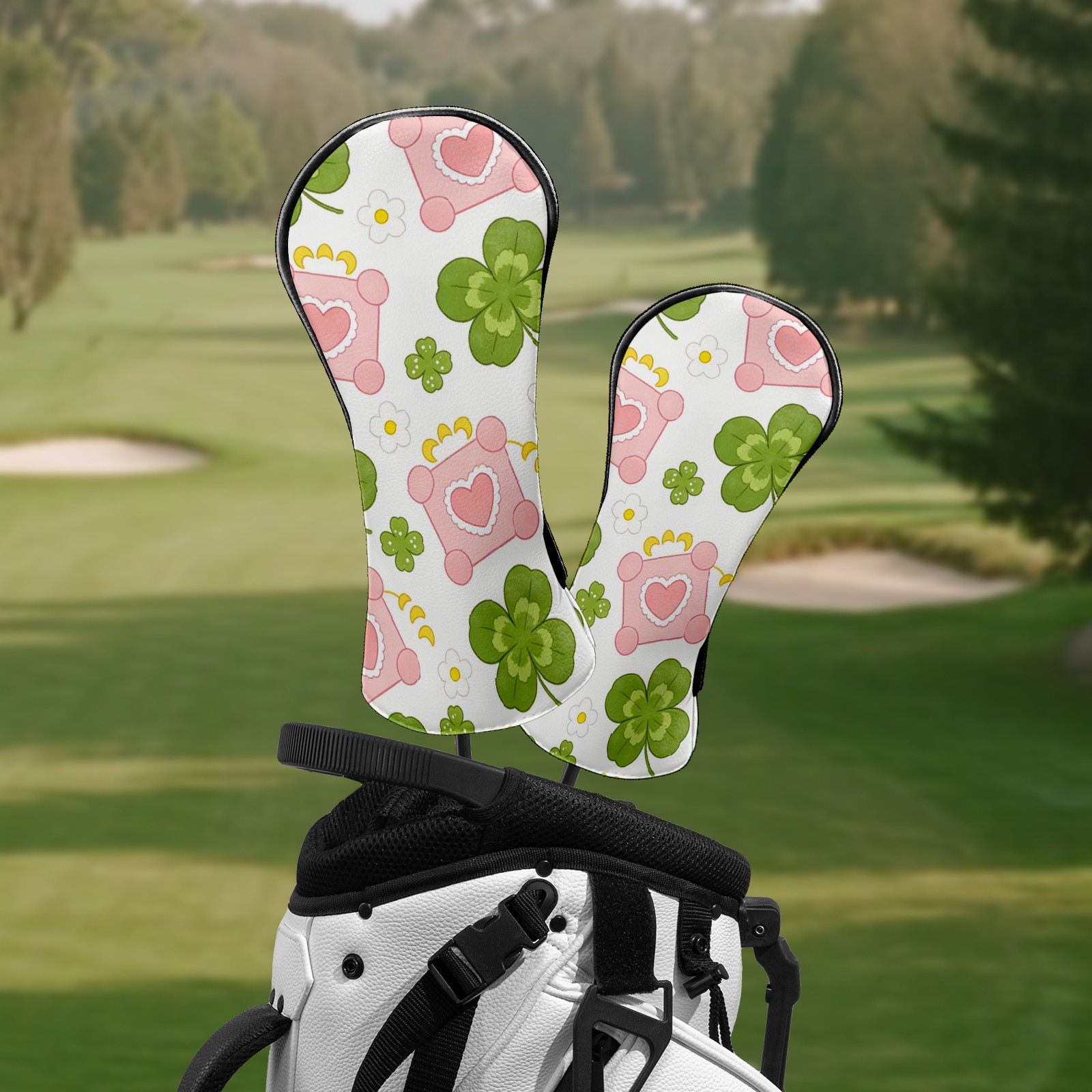 Golf Club Head Covers – Clover Green with Soft Plush Lining, Waterproof PU Leather for Driver & Fairway Woods | Durable, No-Slip Elastic Fit | Fun Gift for Men Who Golf