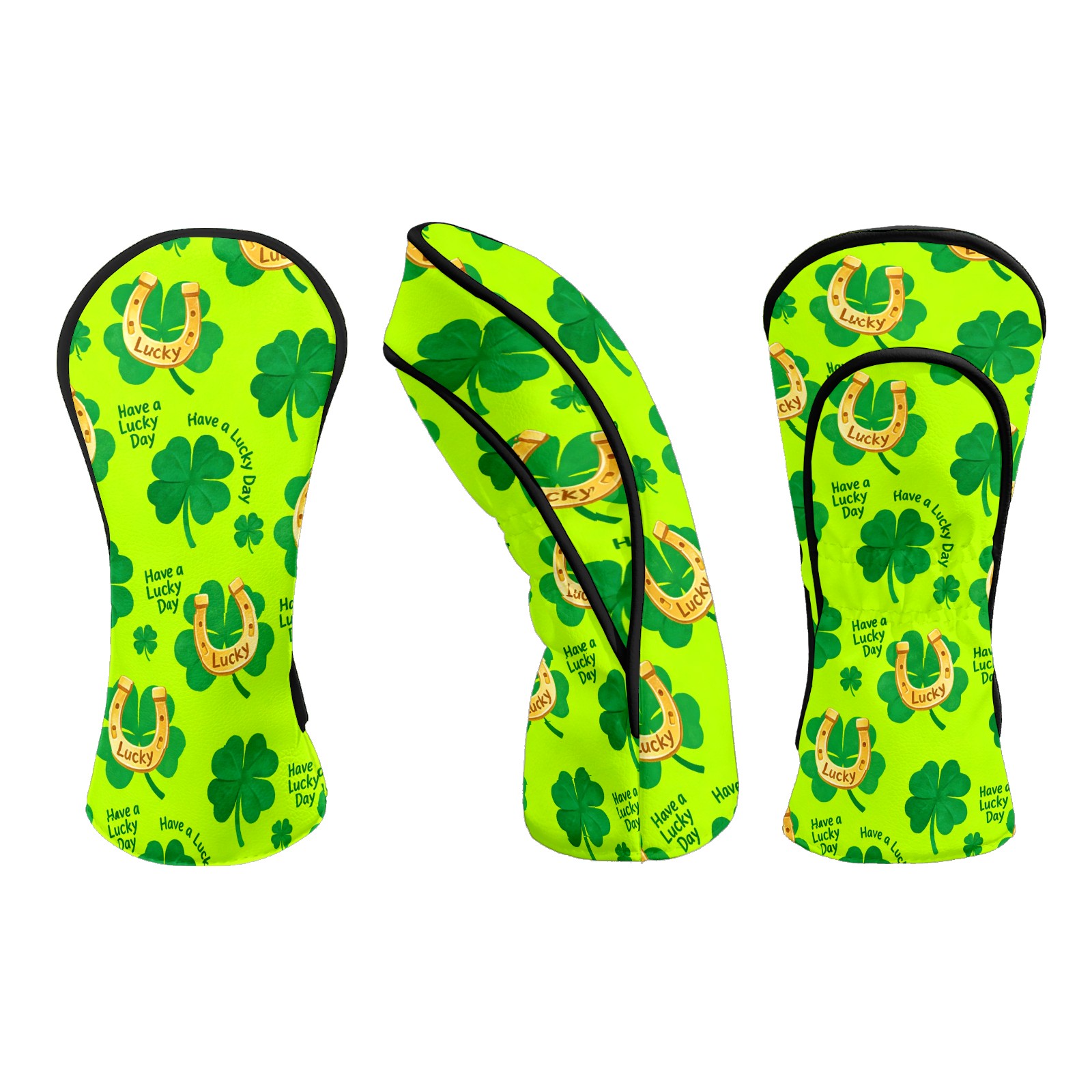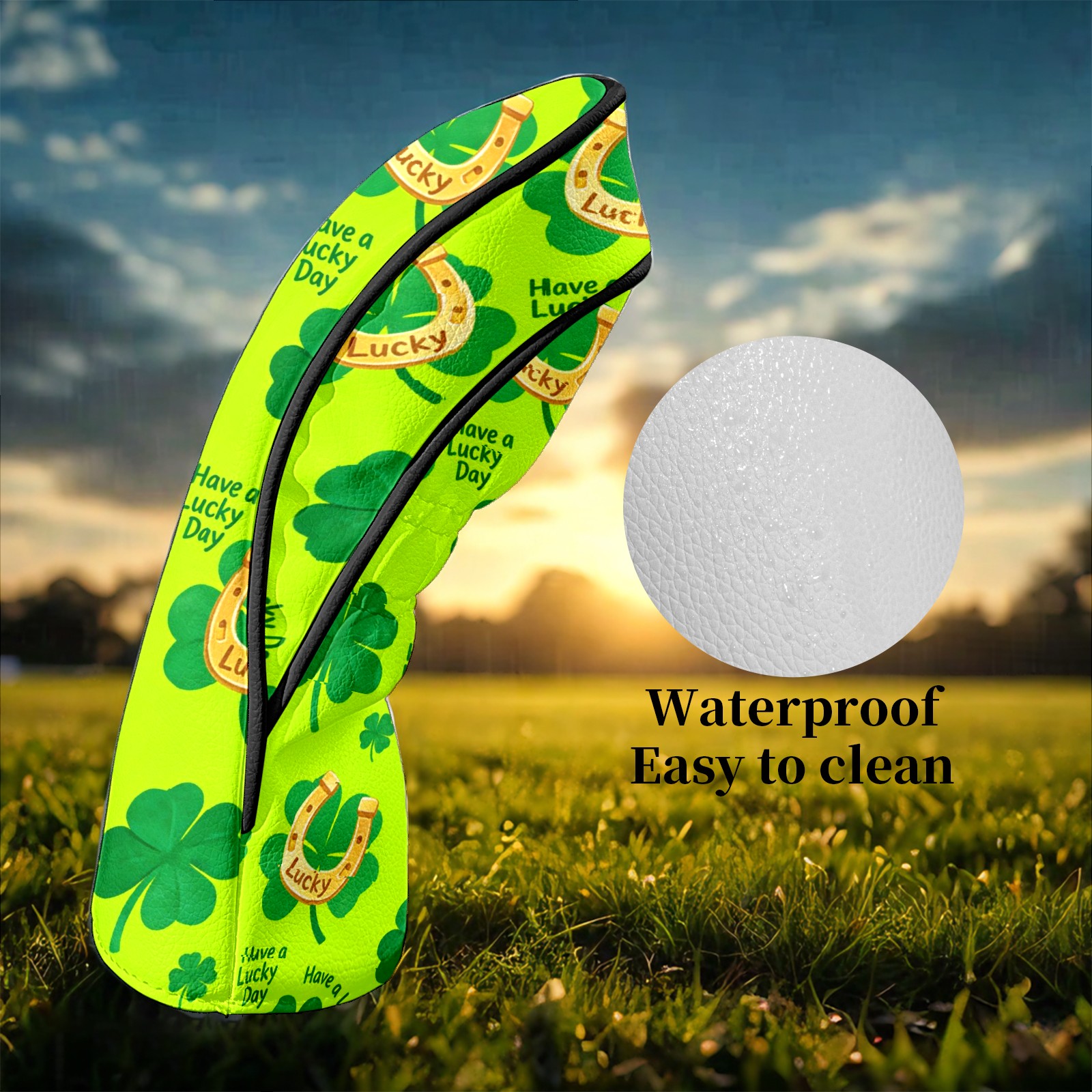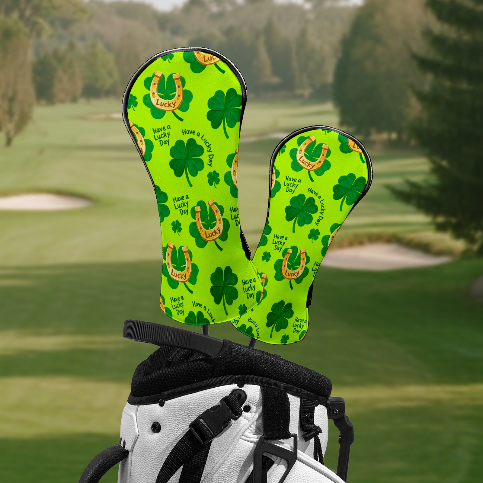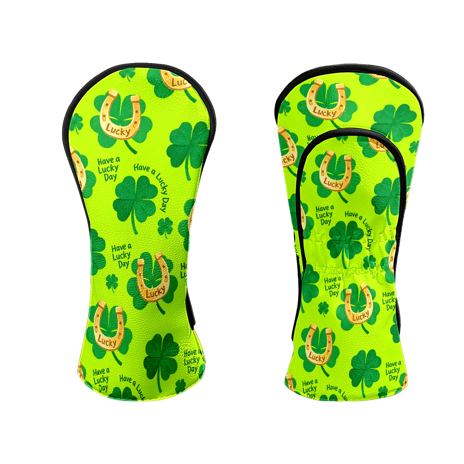 Golf Club Head Covers – Lucky Clover Horseshoe Green with Soft Plush Lining, Waterproof PU Leather for Driver & Fairway Woods | Durable, No-Slip Elastic Fit | Fun Gift for Men Who Golf
