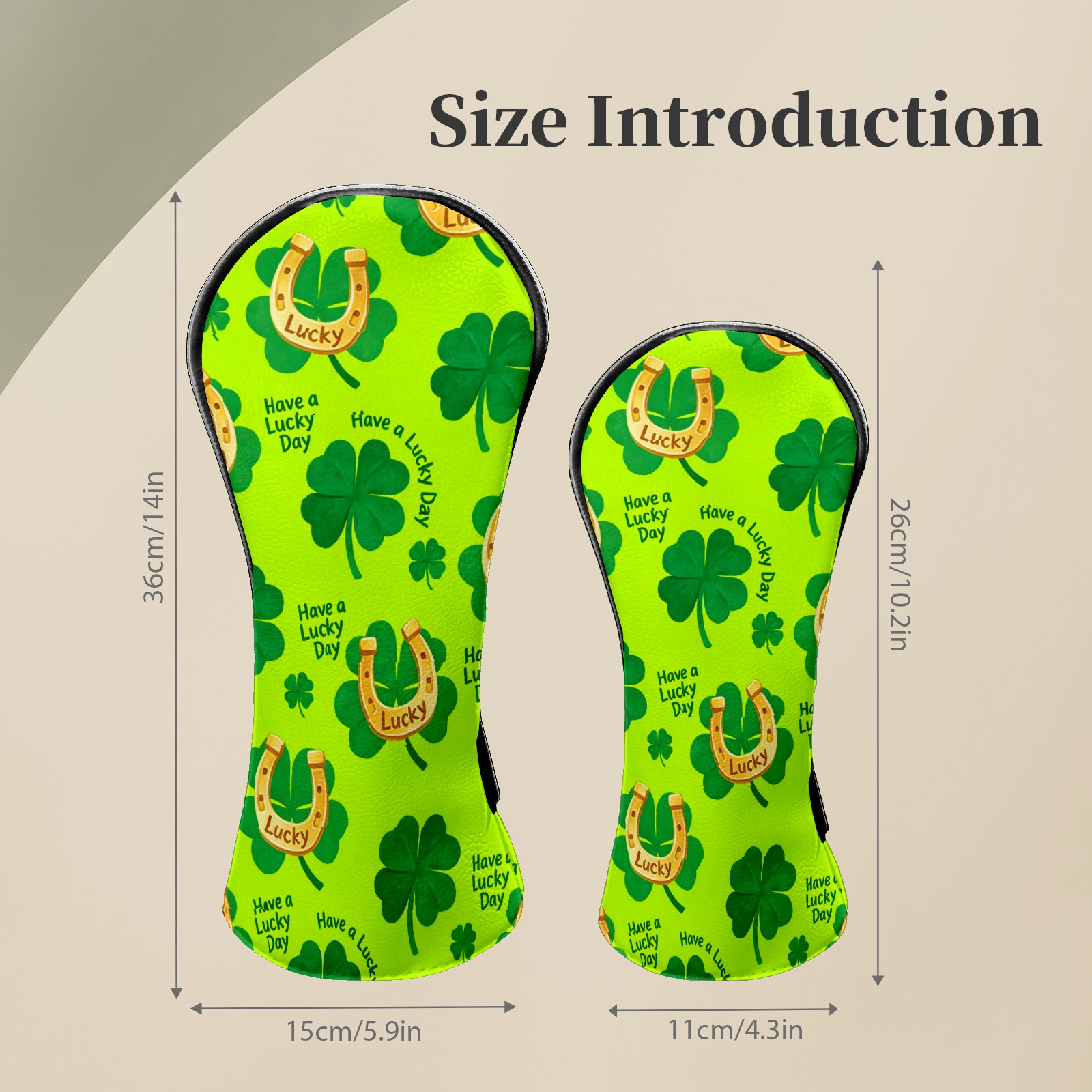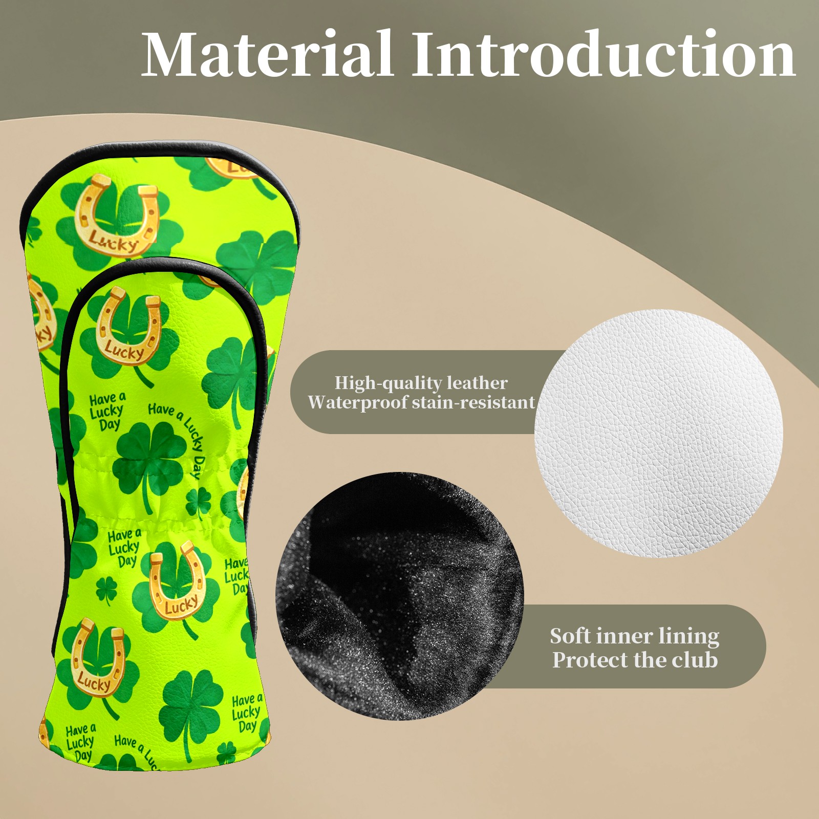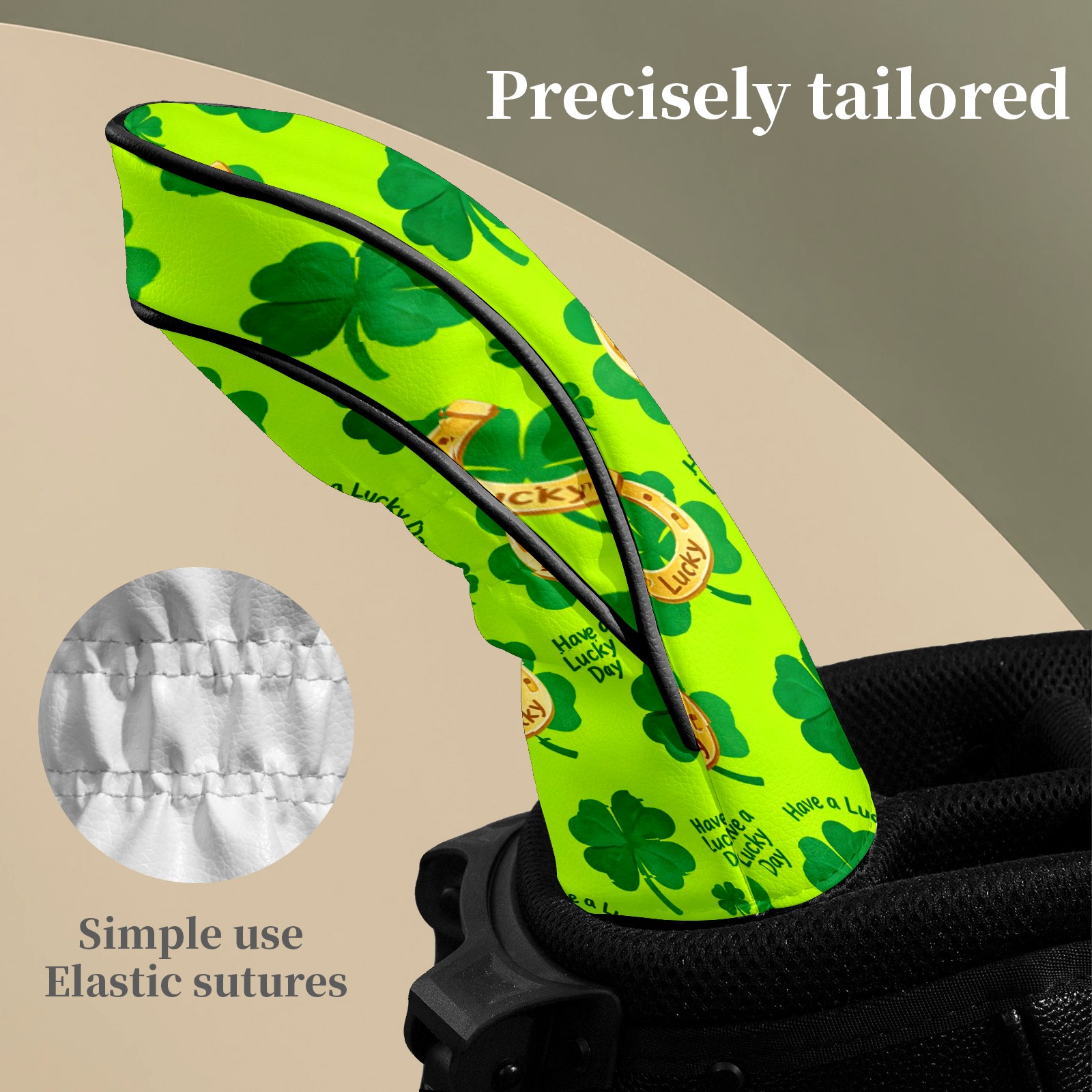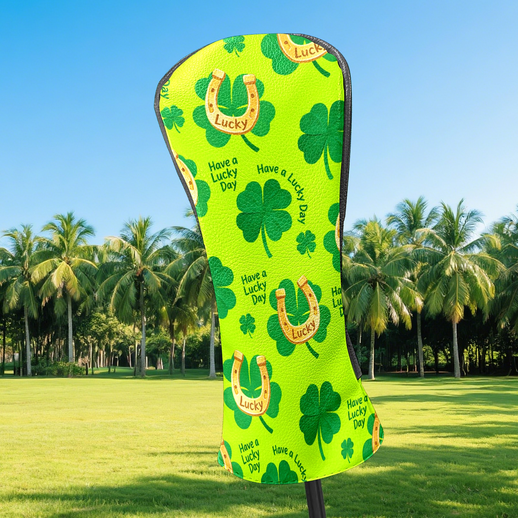 Golf Club Head Covers – Lucky Clover Horseshoe Green with Soft Plush Lining, Waterproof PU Leather for Driver & Fairway Woods | Durable, No-Slip Elastic Fit | Fun Gift for Men Who Golf