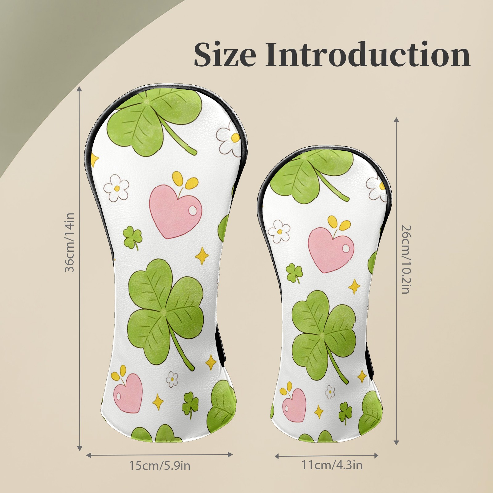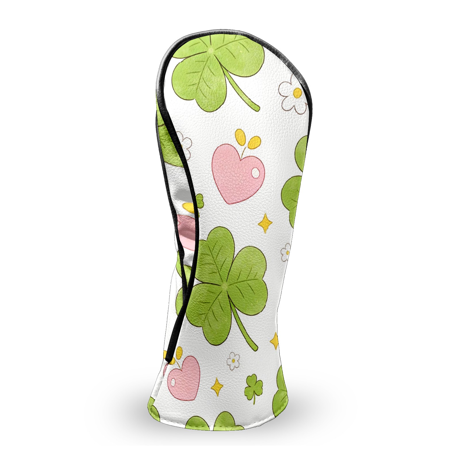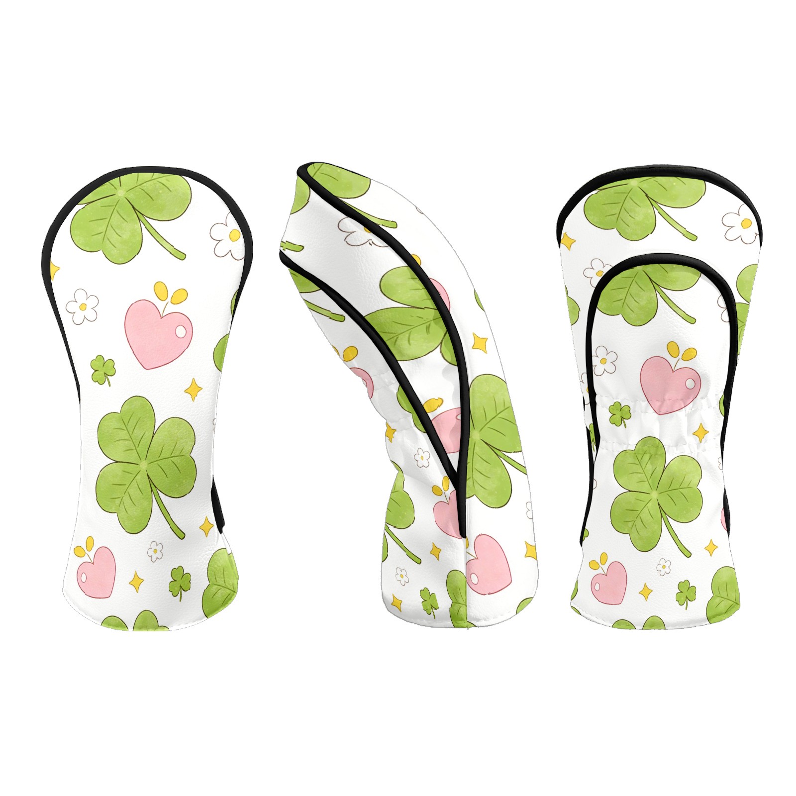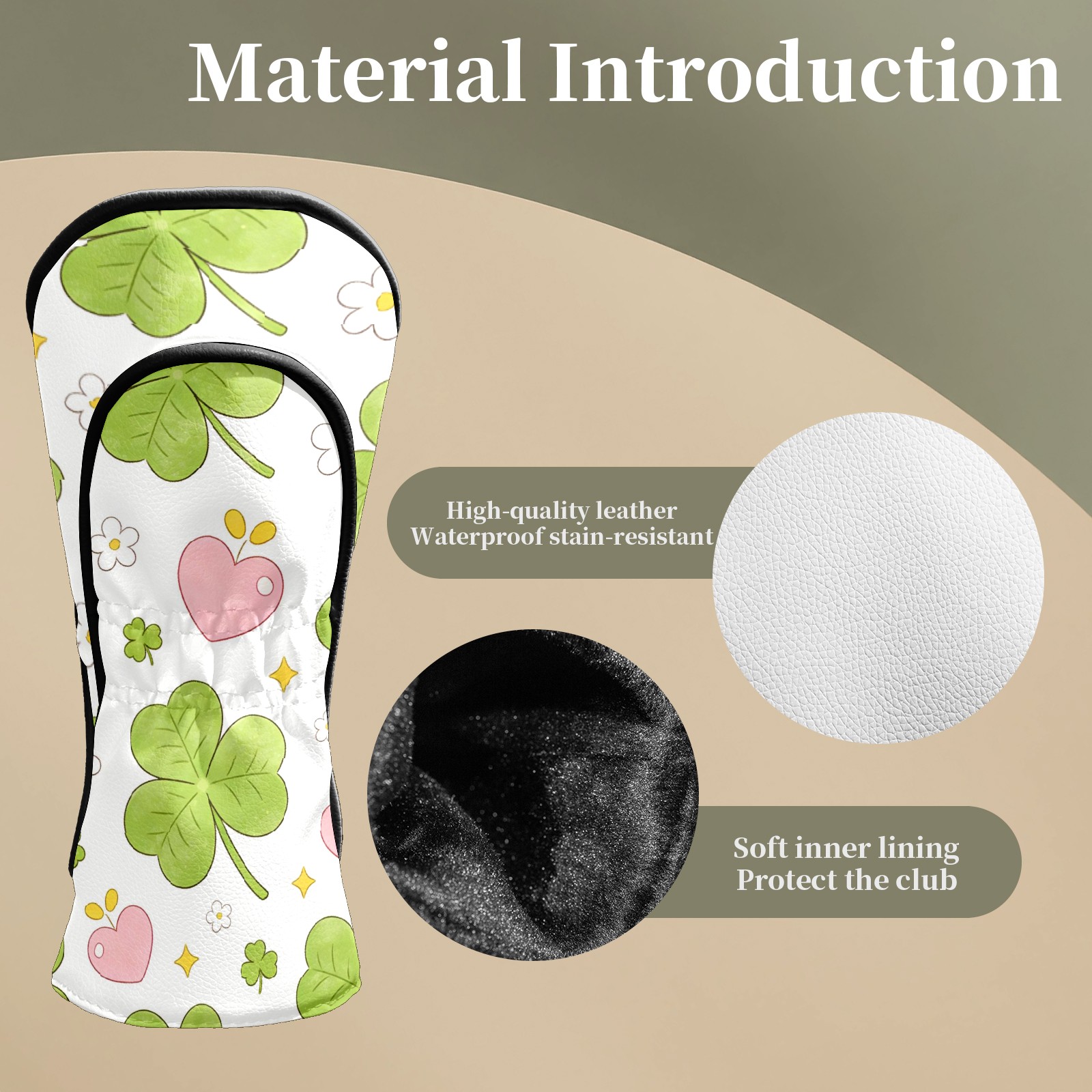 Golf Club Head Covers – Clover Pink Heart PinkClover Pink Heart Pink with Soft Plush Lining, Waterproof PU Leather for Driver & Fairway Woods | Durable, No-Slip Elastic Fit | Fun Gift for Men Who Golf