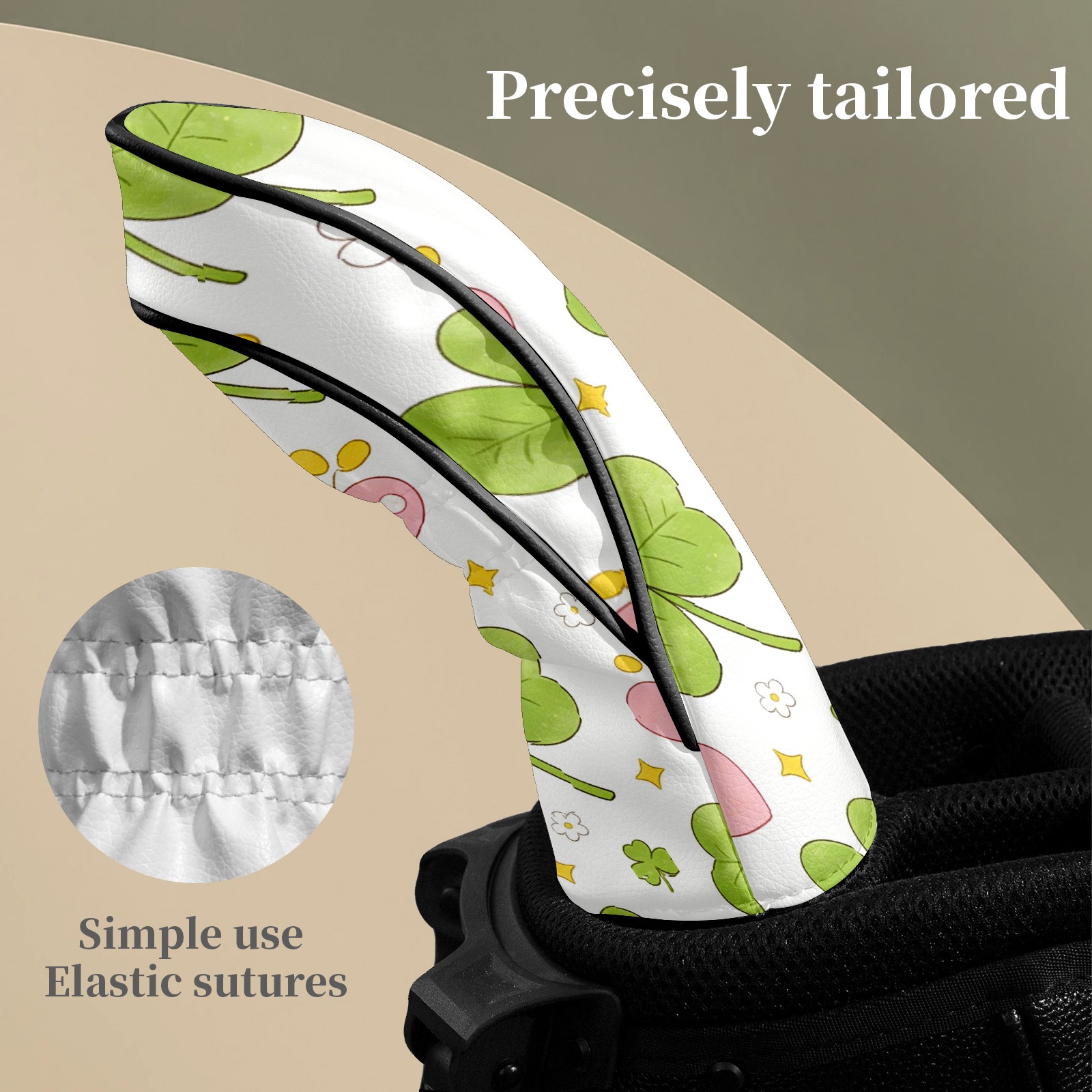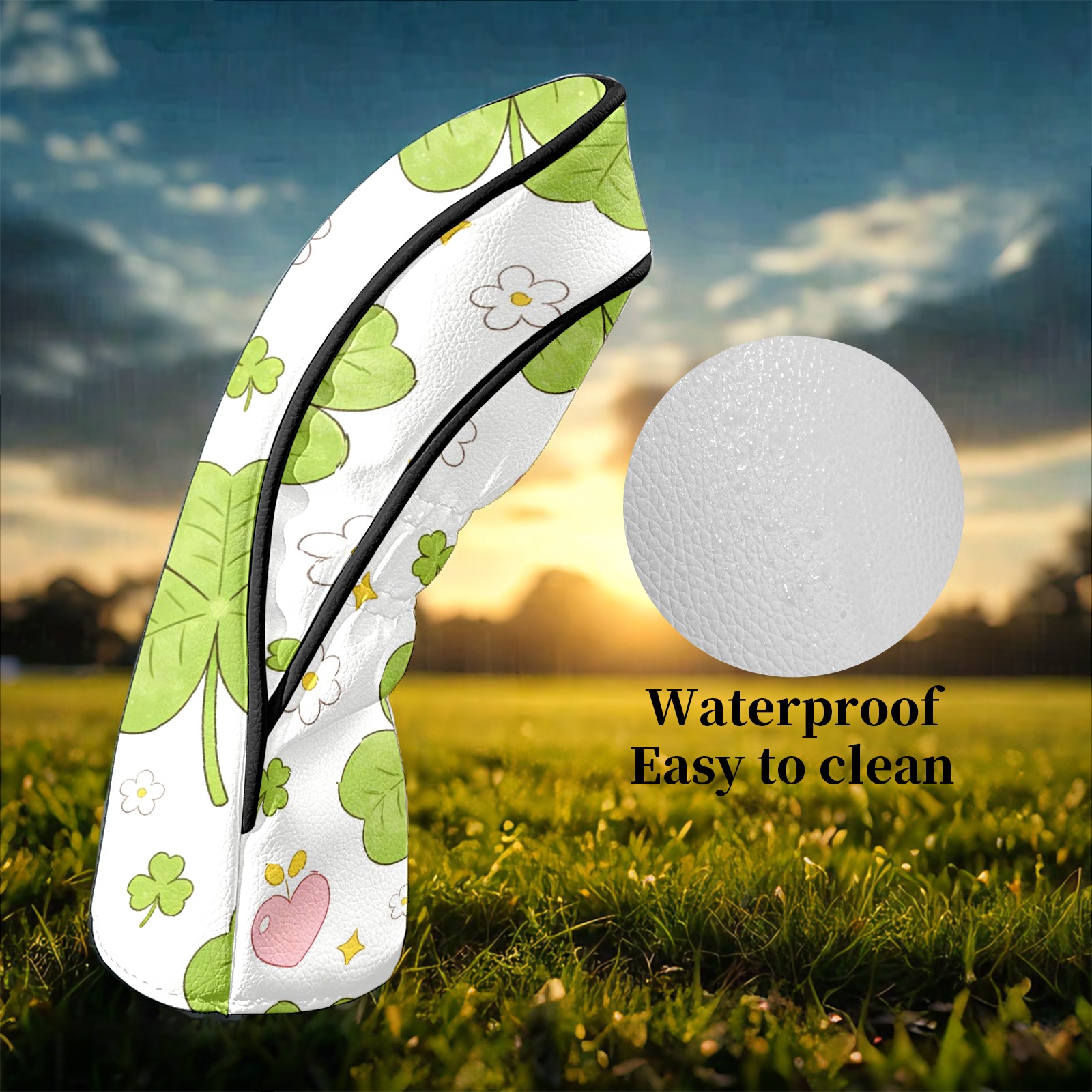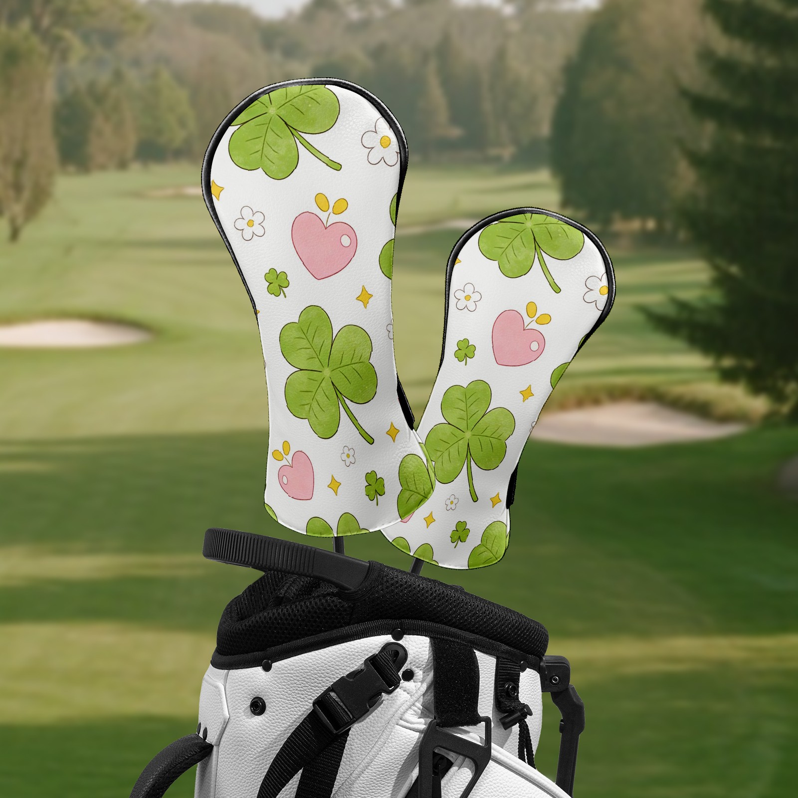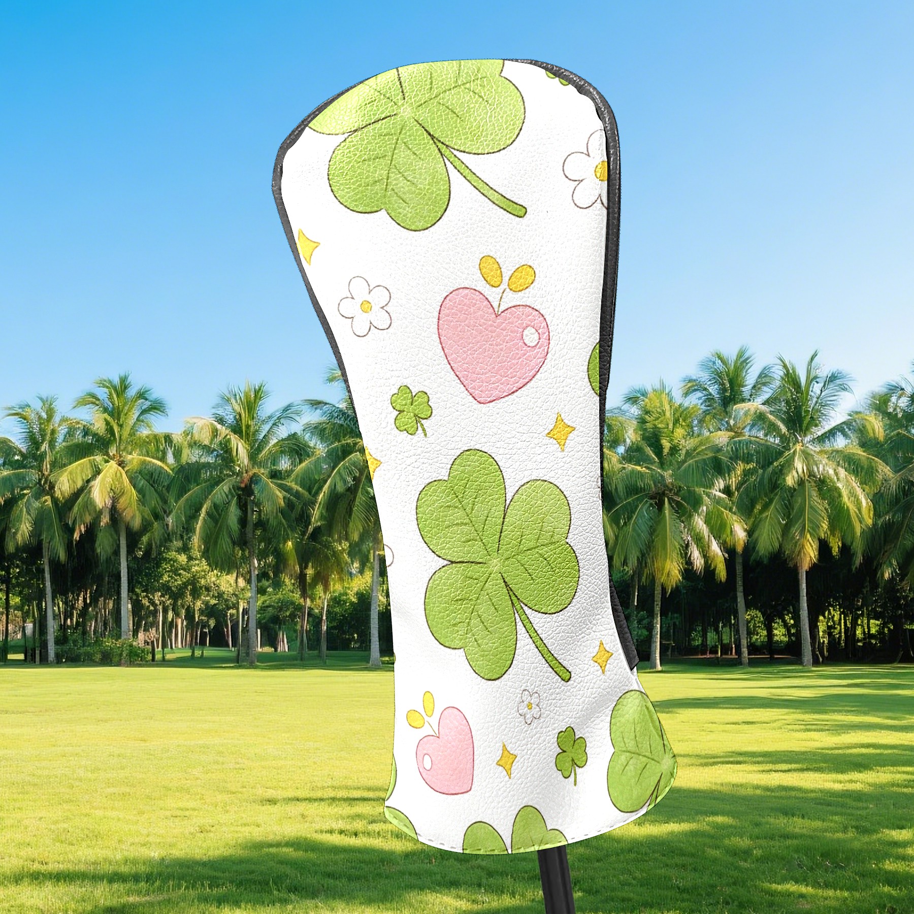 Golf Club Head Covers – Clover Pink Heart PinkClover Pink Heart Pink with Soft Plush Lining, Waterproof PU Leather for Driver & Fairway Woods | Durable, No-Slip Elastic Fit | Fun Gift for Men Who Golf