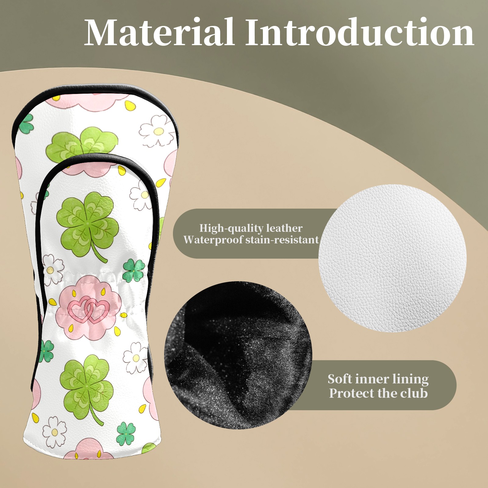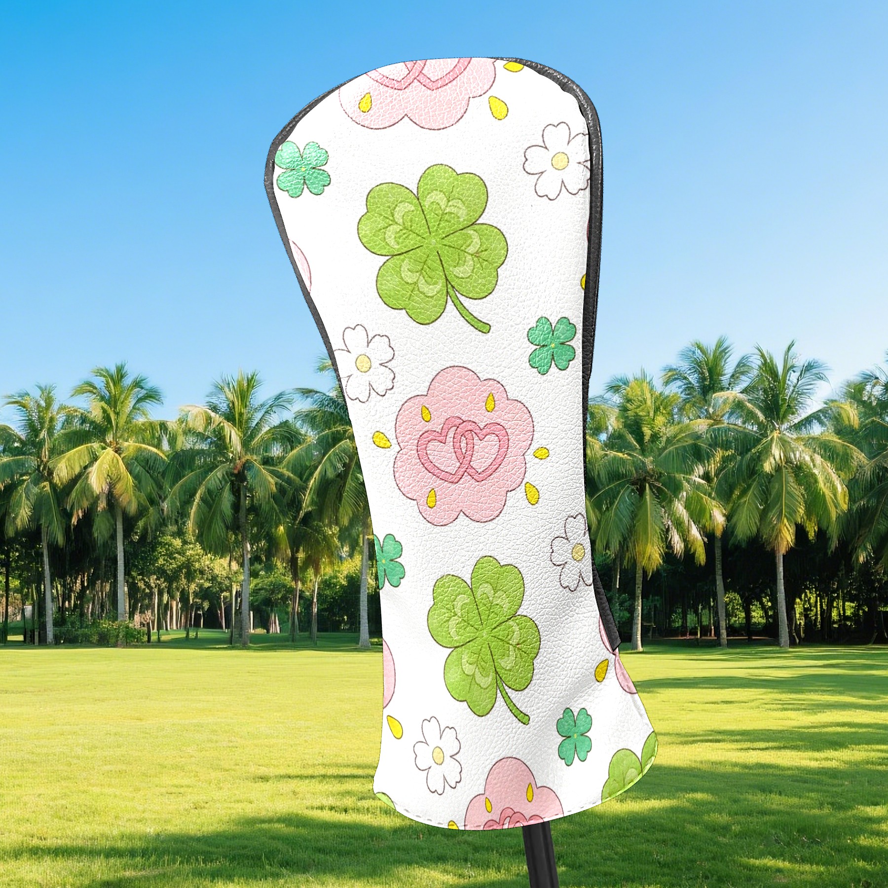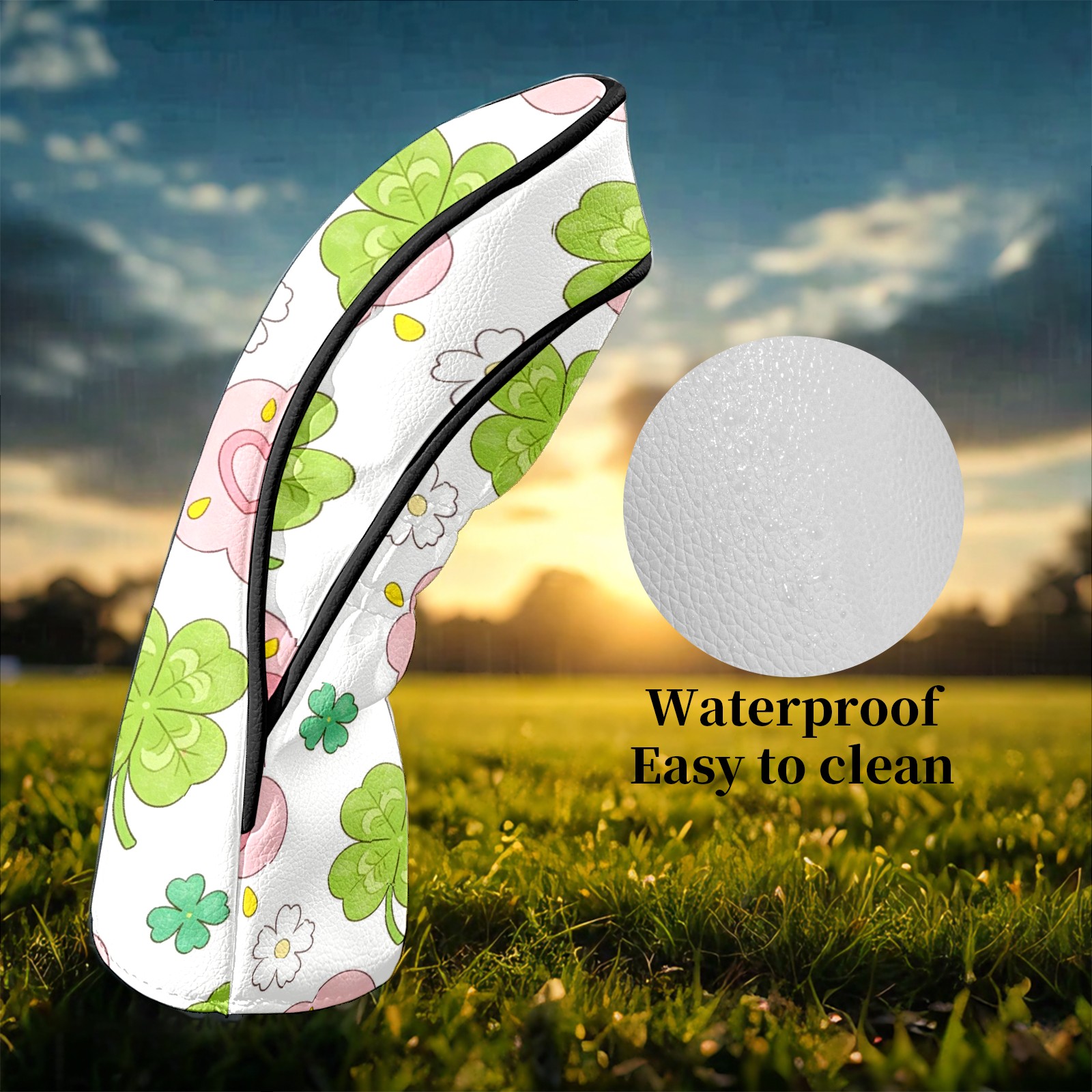 Golf Club Head Covers – Gentle Clover Green with Soft Plush Lining, Waterproof PU Leather for Driver & Fairway Woods | Durable, No-Slip Elastic Fit | Fun Gift for Men Who Golf