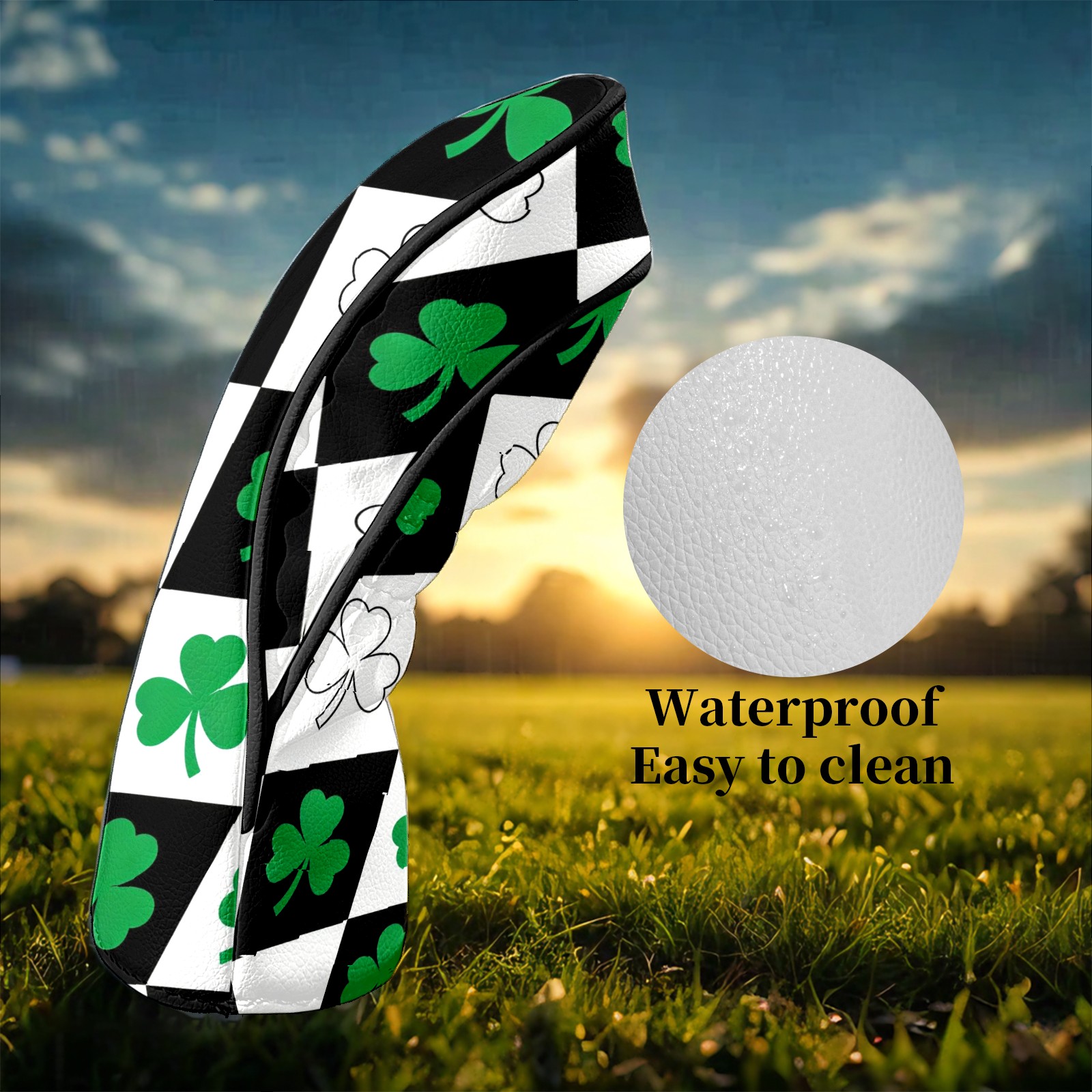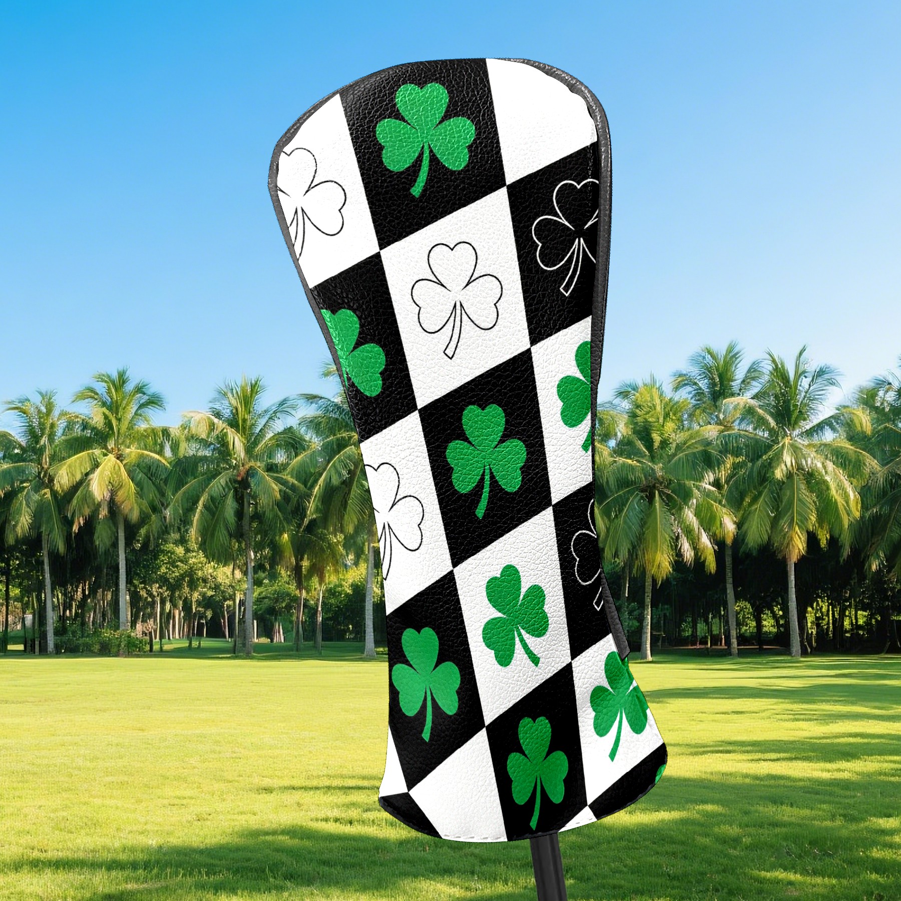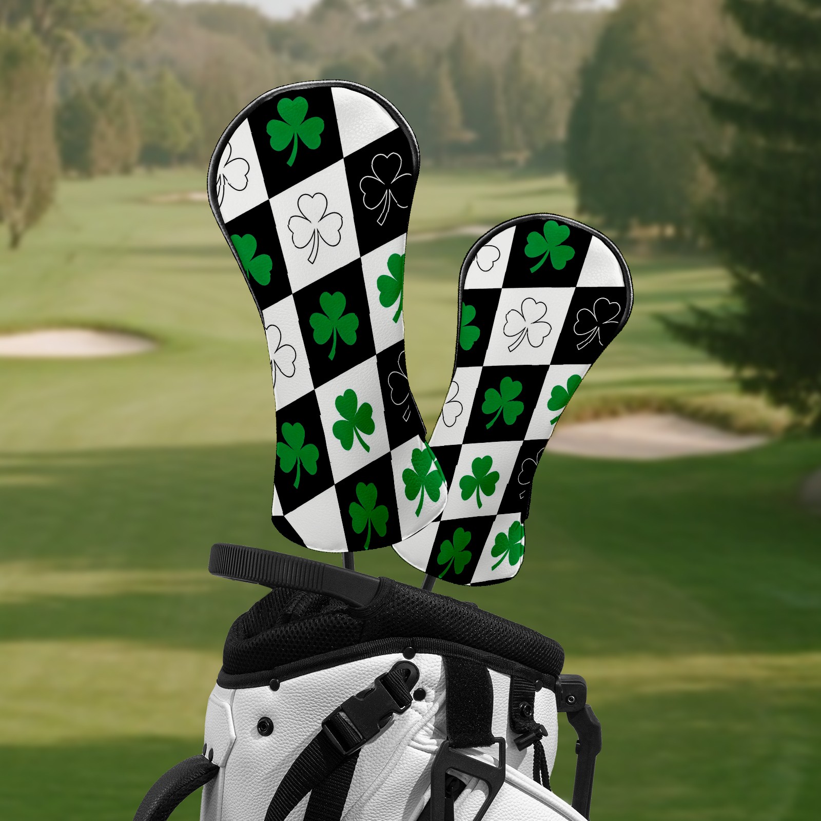 Golf Club Head Covers – Diamond Clover Black with Soft Plush Lining, Waterproof PU Leather for Driver & Fairway Woods | Durable, No-Slip Elastic Fit | Fun Gift for Men Who Golf