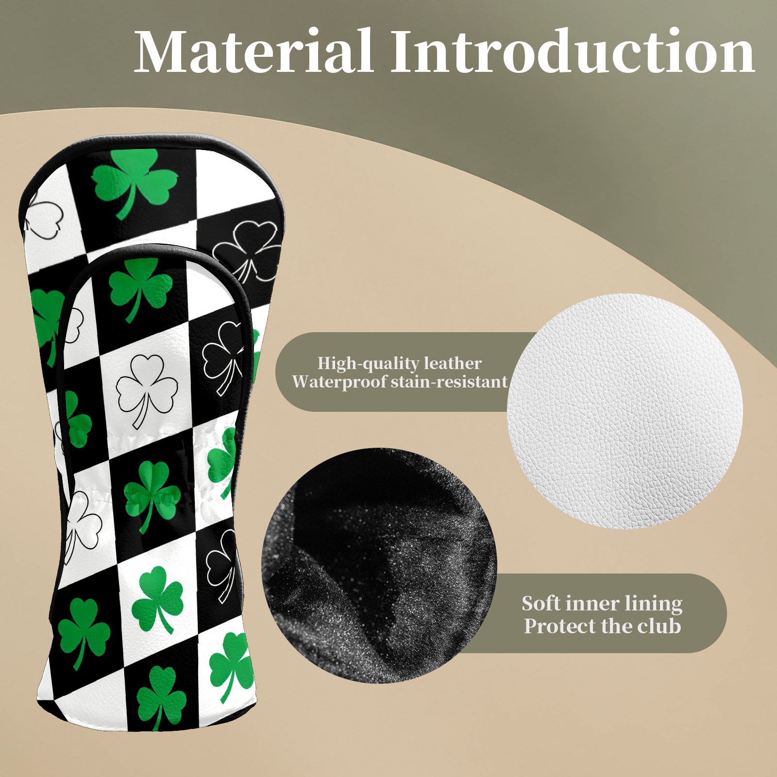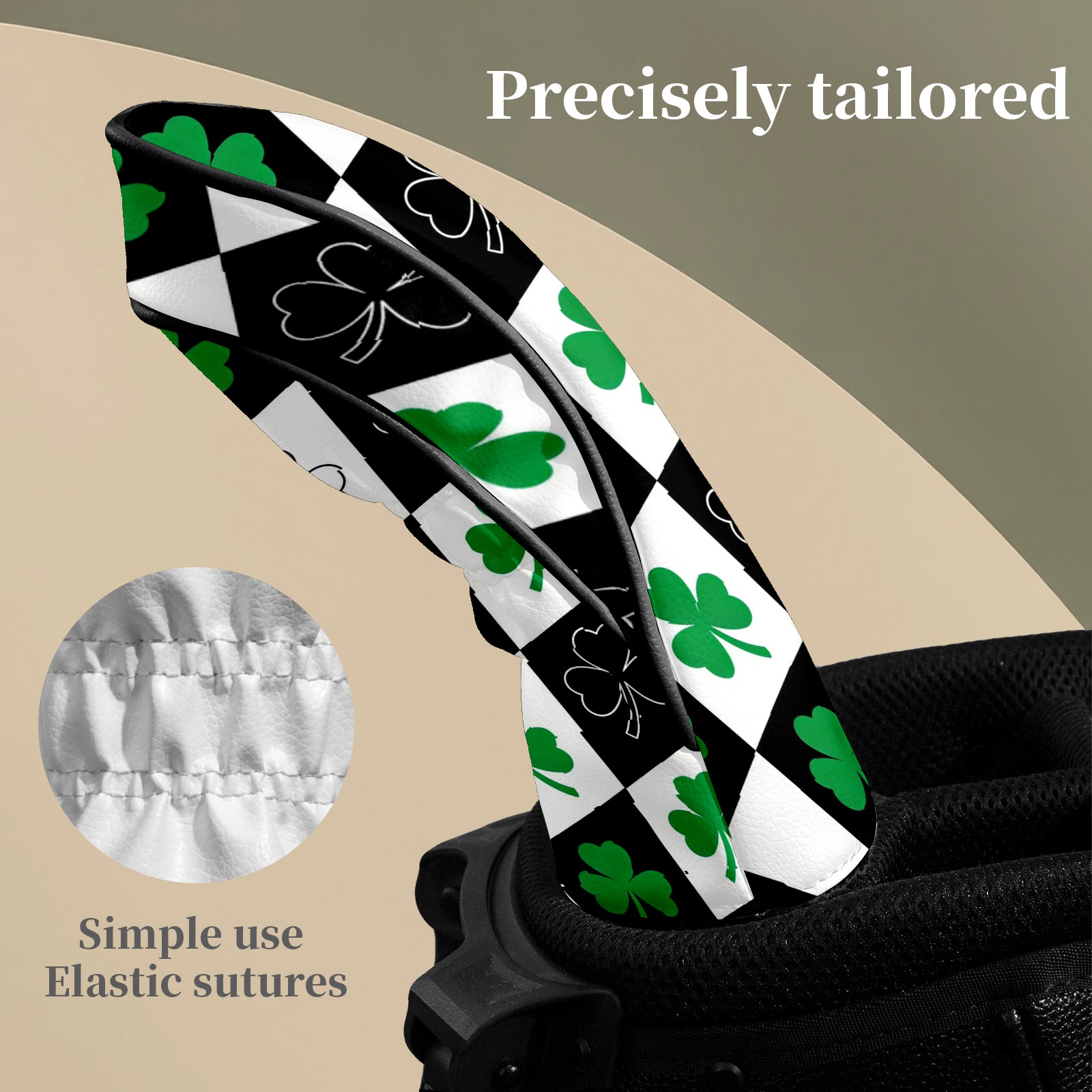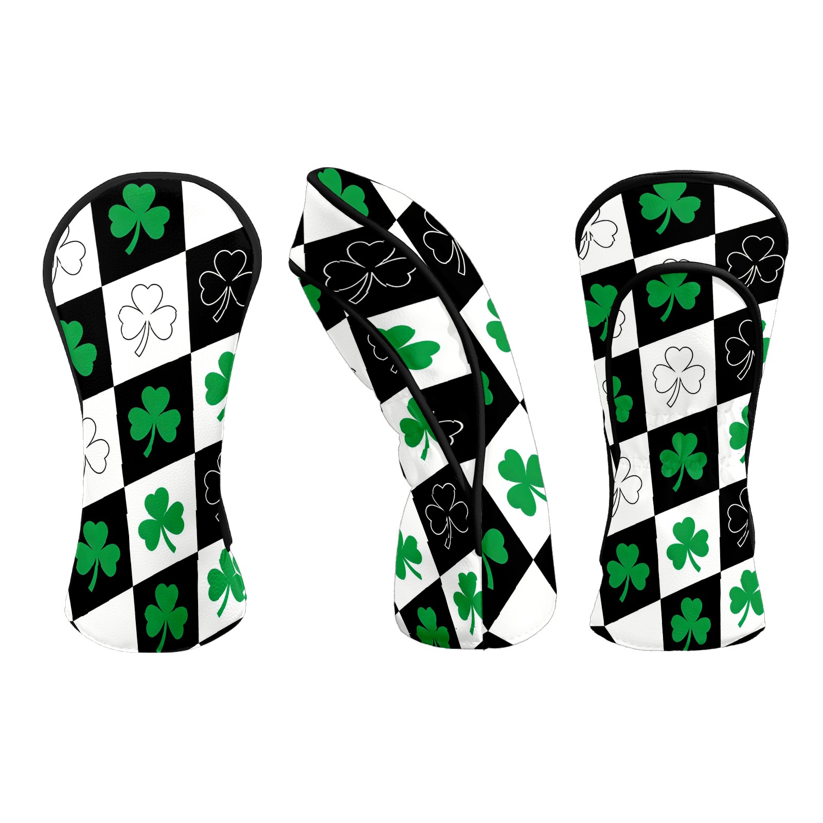 Golf Club Head Covers – Diamond Clover Black with Soft Plush Lining, Waterproof PU Leather for Driver & Fairway Woods | Durable, No-Slip Elastic Fit | Fun Gift for Men Who Golf