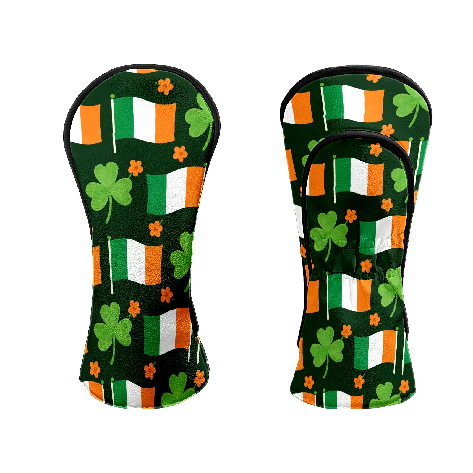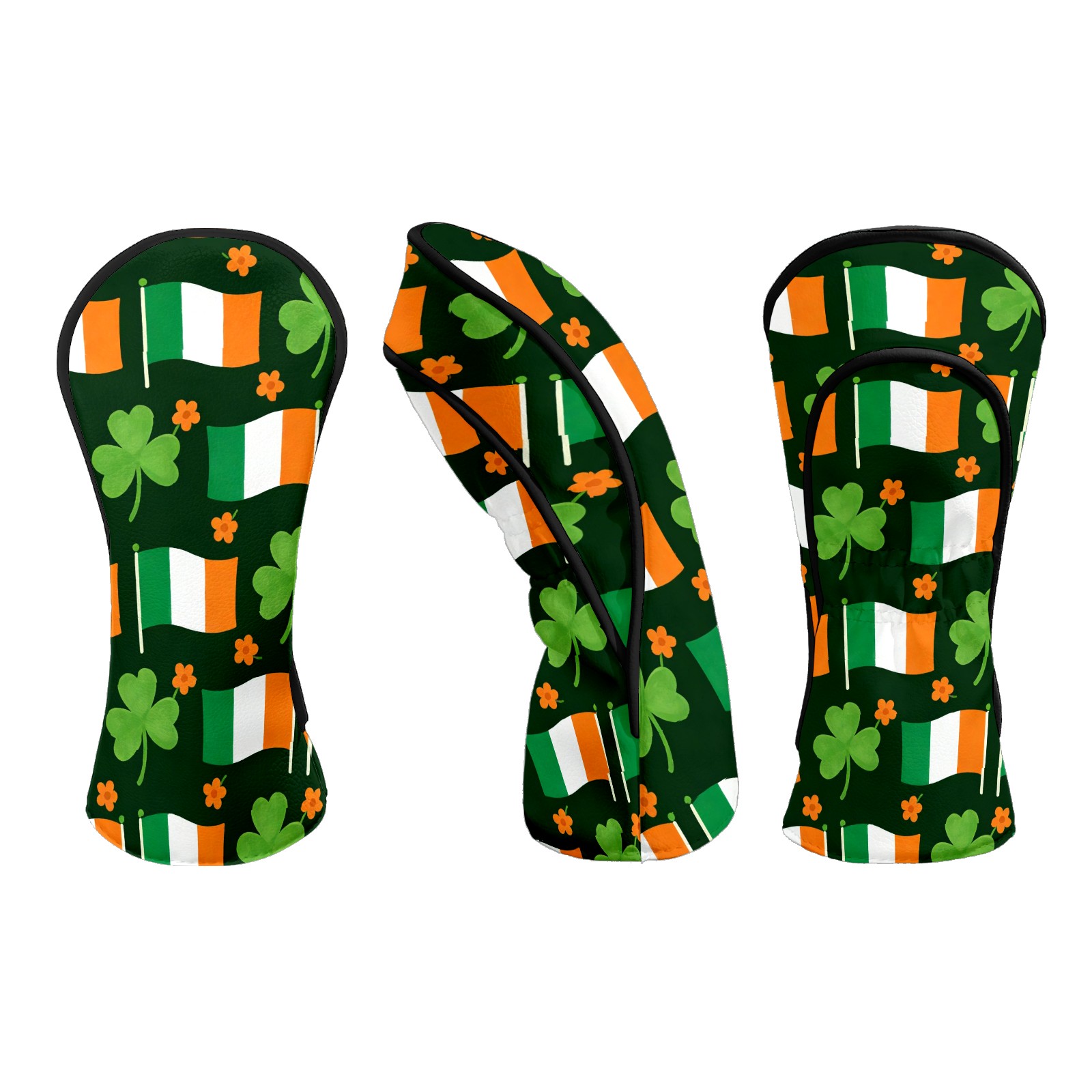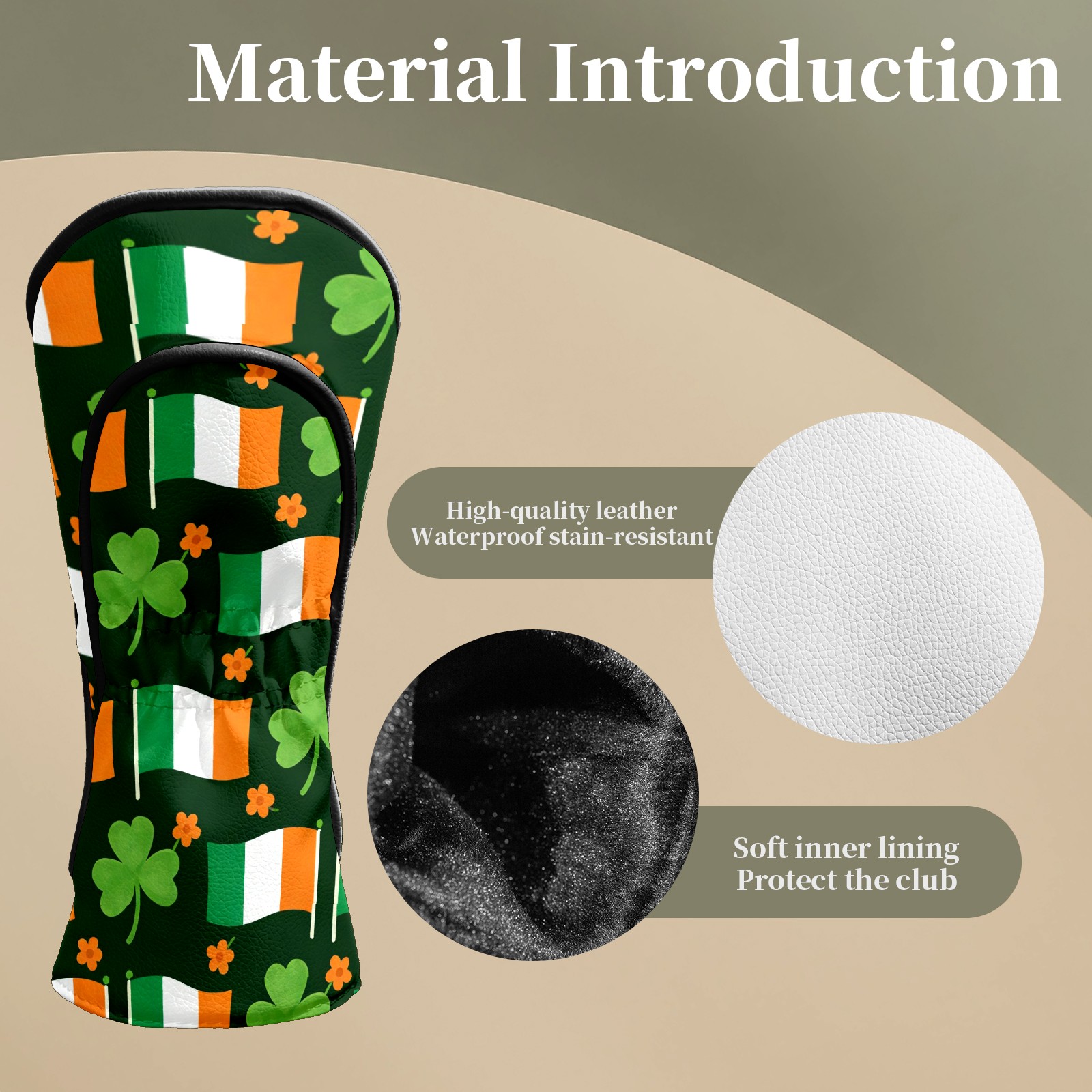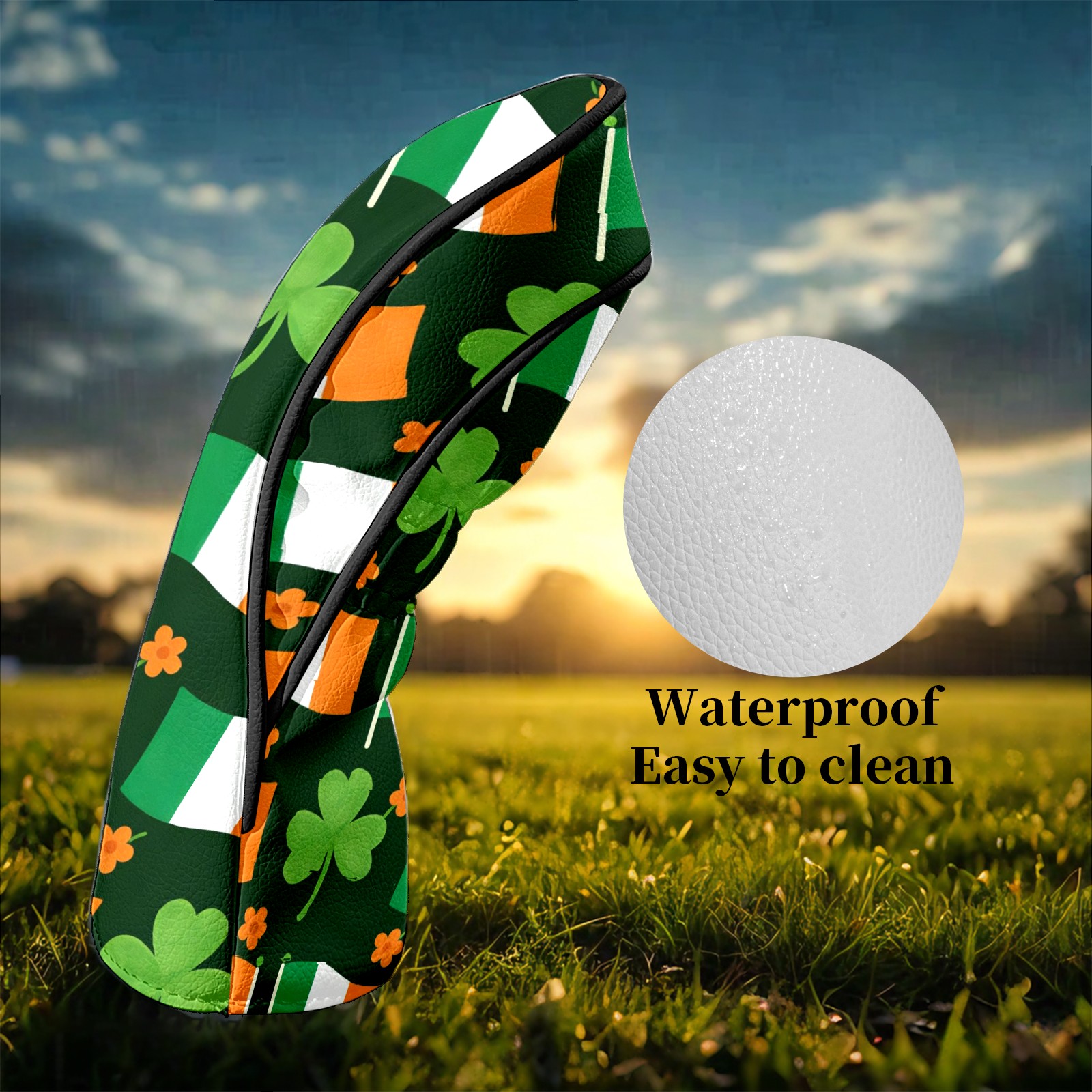 Golf Club Head Covers – Flag Clover Green with Soft Plush Lining, Waterproof PU Leather for Driver & Fairway Woods | Durable, No-Slip Elastic Fit | Fun Gift for Men Who Golf