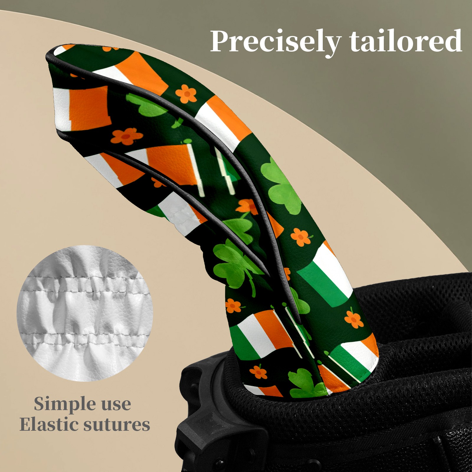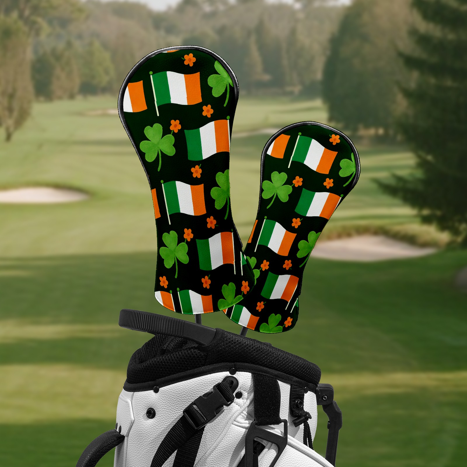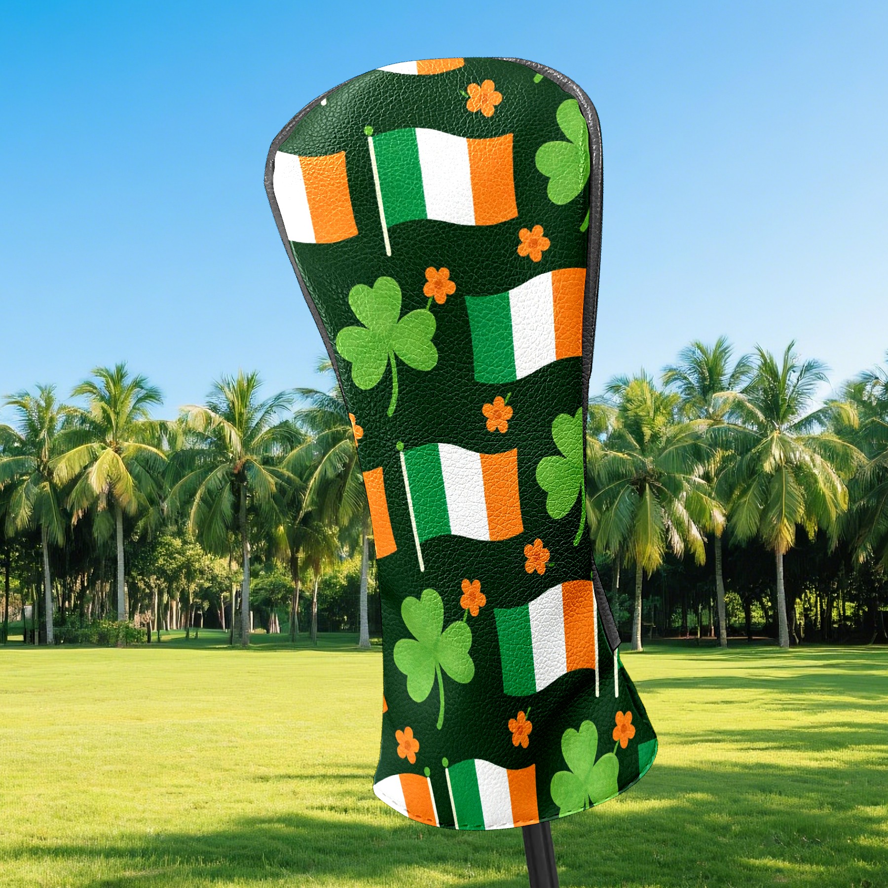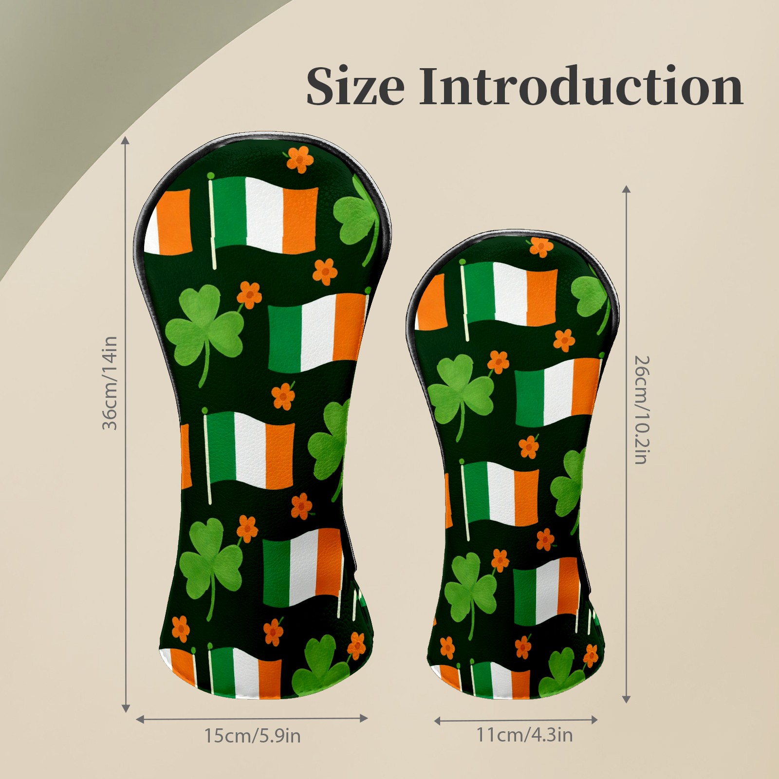 Golf Club Head Covers – Flag Clover Green with Soft Plush Lining, Waterproof PU Leather for Driver & Fairway Woods | Durable, No-Slip Elastic Fit | Fun Gift for Men Who Golf