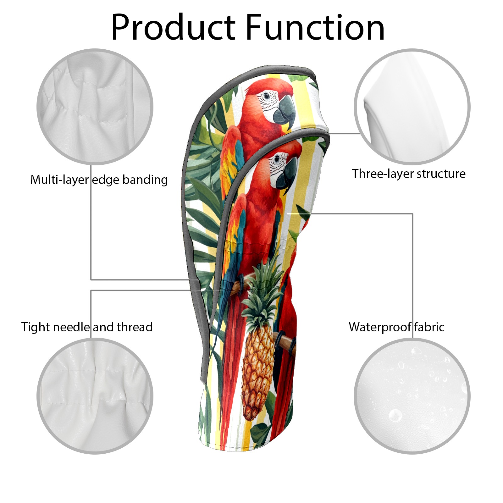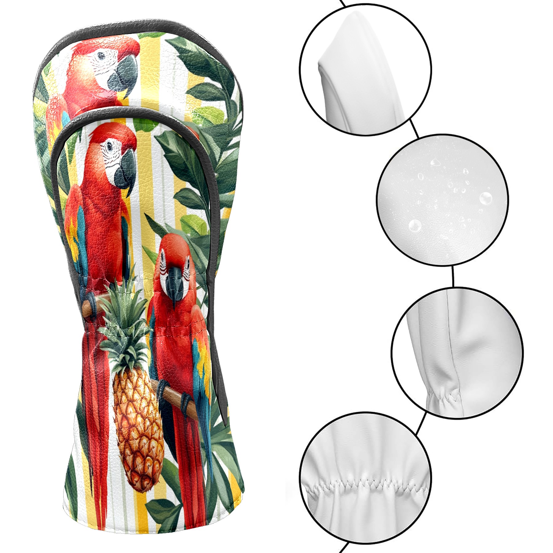 Golf Club Head Cover, High Quality PU Leather Driver and Wood Club Head Cover with Anti-Scratch Lining, Lemon-striped Parrot Universal Gift for Men and Women