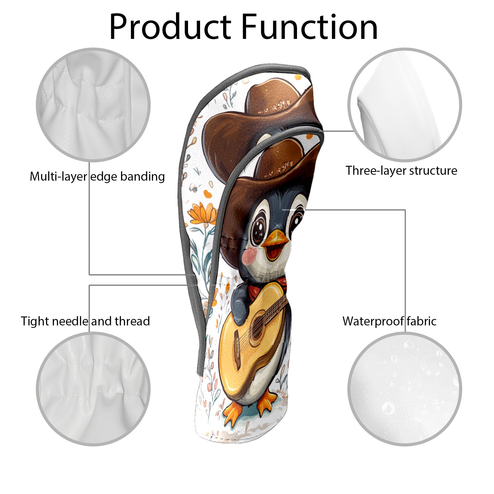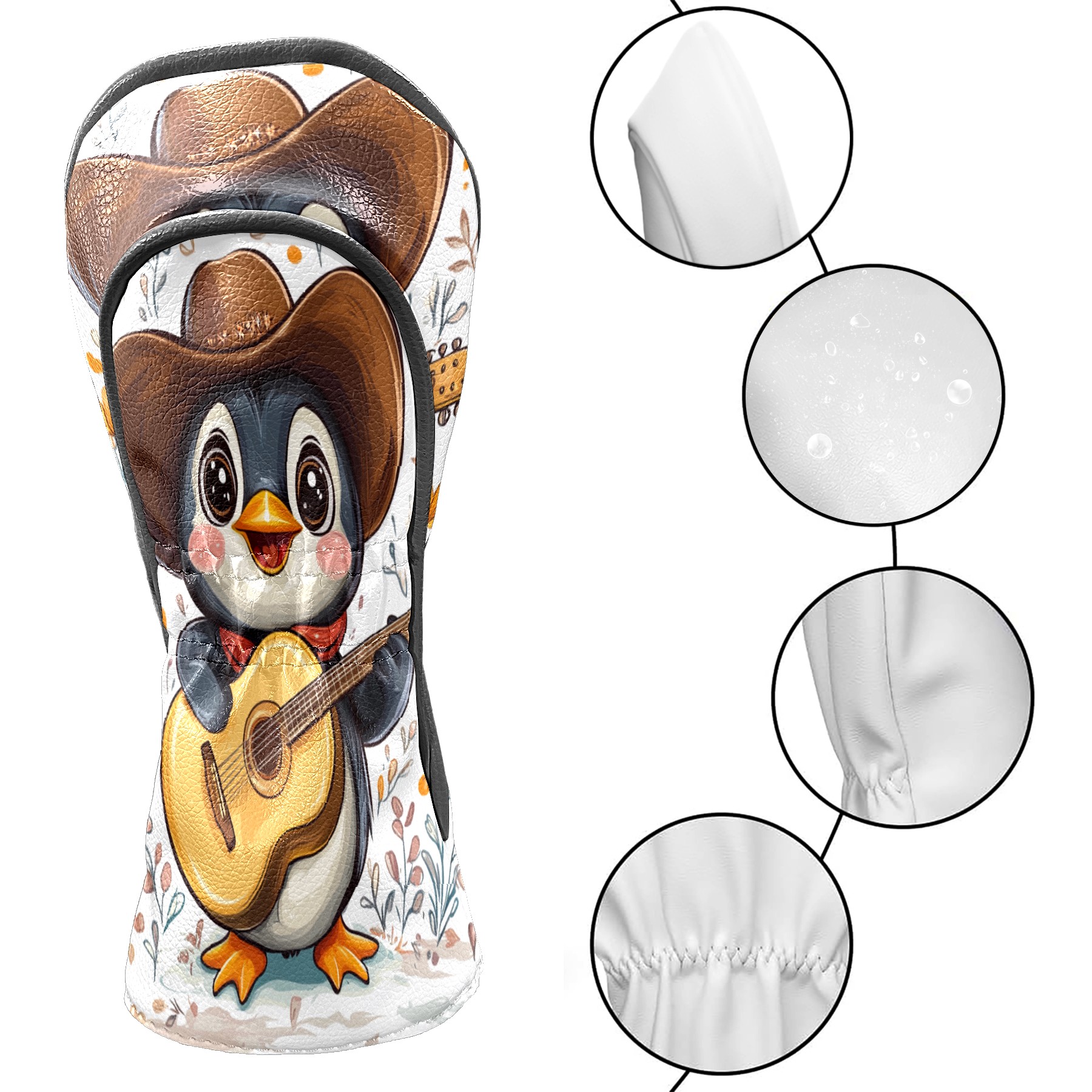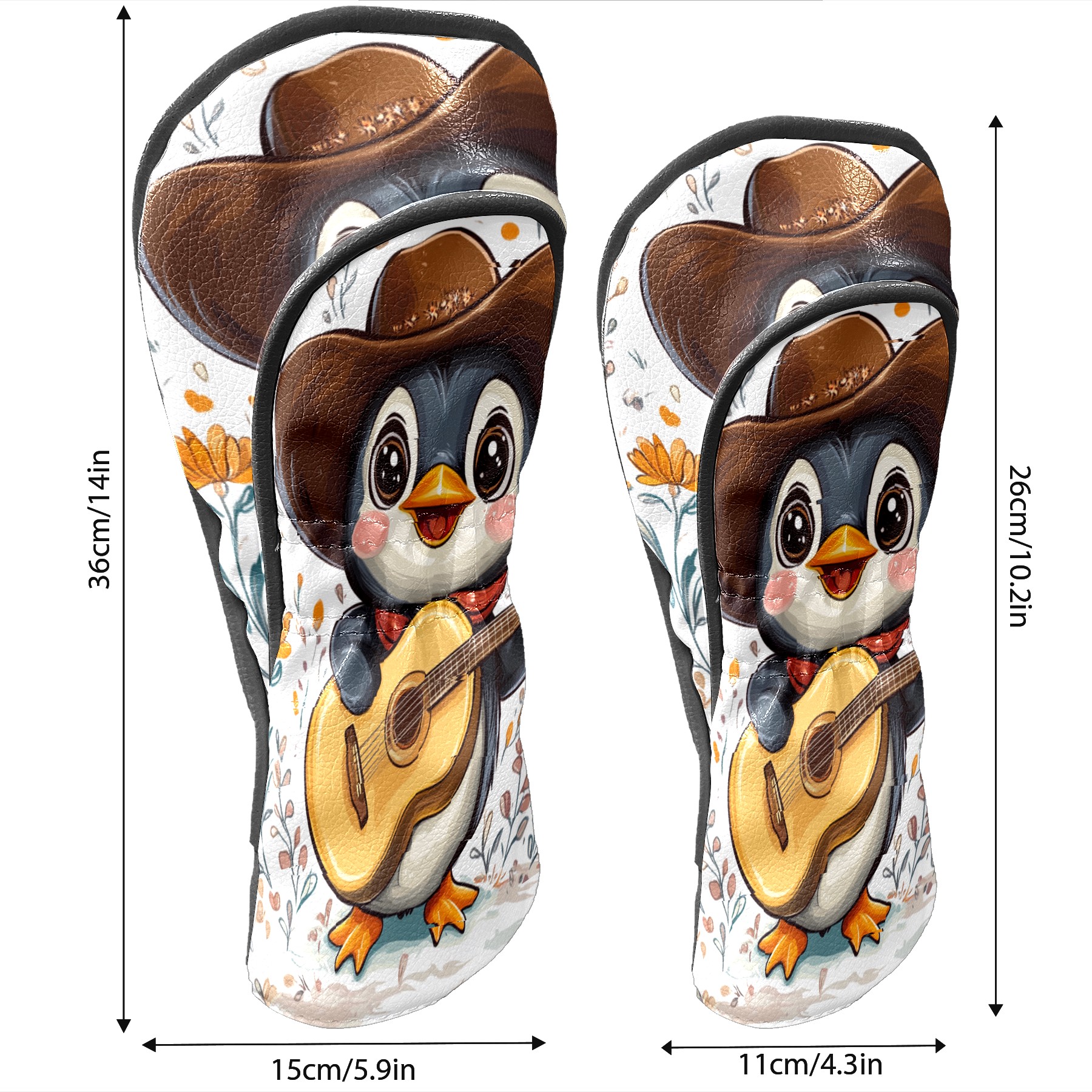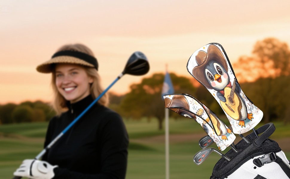 Golf Club Head Cover, High Quality PU Leather Driver and Wood Club Head Cover with Anti-Scratch Lining, Cowboy Penguin Universal Gift for Men and Women