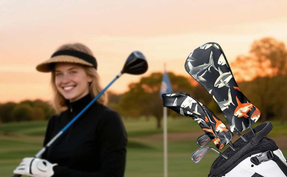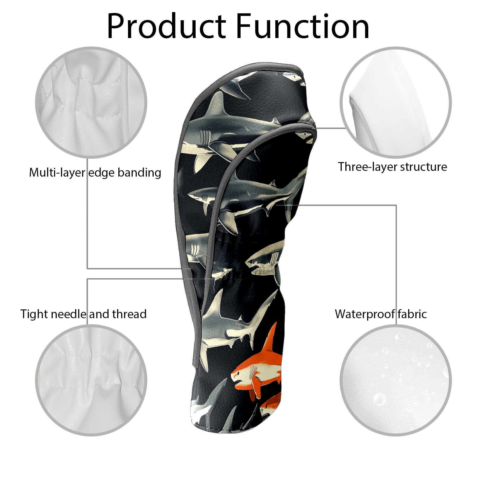 Golf Club Head Cover, High Quality PU Leather Driver and Wood Club Head Cover with Anti-Scratch Lining, Shoal Of Fish Universal Gift for Men and Women
