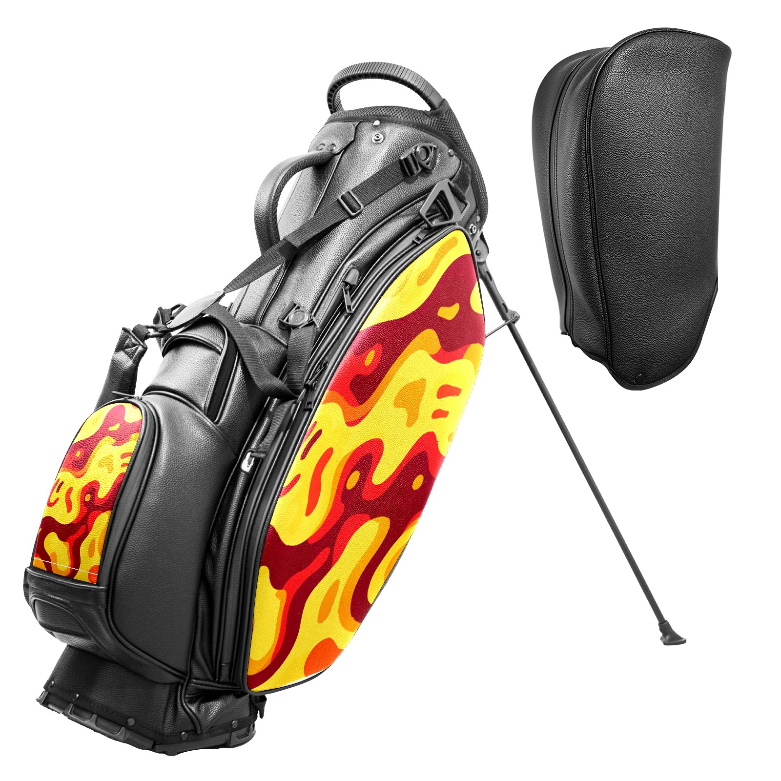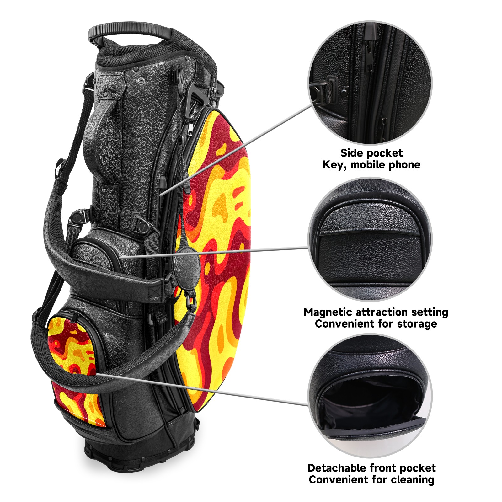 <p>This golf cart bag combines versatility with durability, providing comprehensive protection and convenient access for your clubs. The five-way top compartments provide strategic zoning for easily storing a variety of clubs and protecting them from impacts and wear. The PU fabric and sturdy plastic base combine premium quality with durability. The versatile storage system includes multiple zippered pockets and a separate cooler compartment for storing equipment, accessories, and drinks. The portable rear handle allows for easy transport. The ergonomic, padded shoulder straps are adjustable and removable to fit your shoulder and reduce weight. A built-in rain cover effectively keeps out moisture, ensuring your clubs stay dry and protected in wet weather. This is the ideal golf bag for your golfing adventure.<br></p>