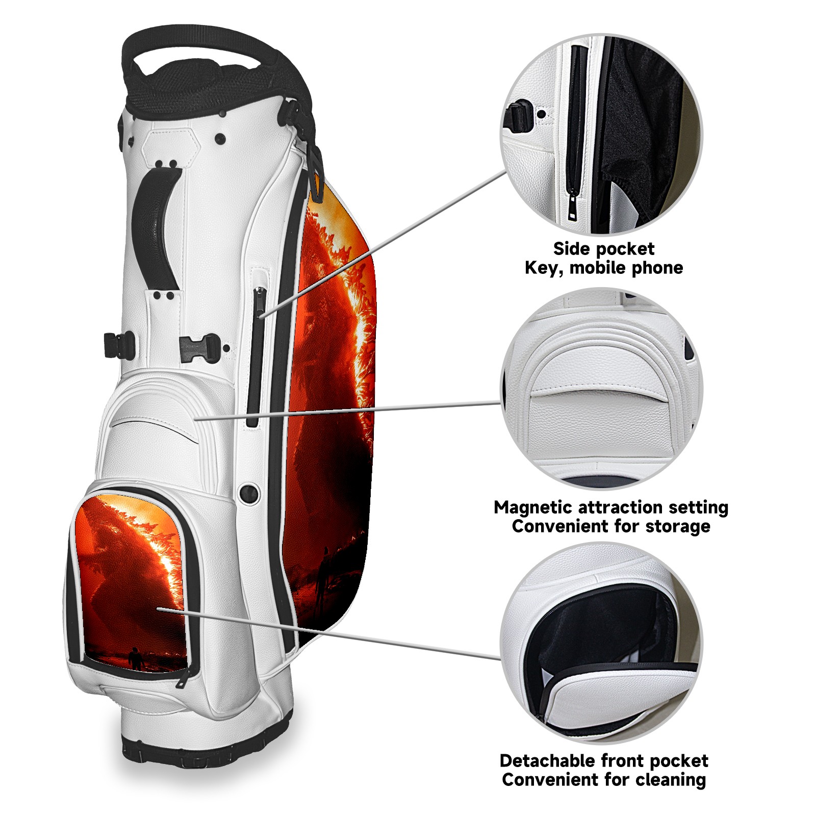 • <p>The Golf Stand Bag, designed specifically for golf enthusiasts, offers a choice of 5 - way and 14 - way top dividers. Its 5/14 - compartment design with independent full - size club compartments safeguards clubs from collisions. Equipped with a rain cover, waterproof zippered pockets (tested to resist moderate to heavy rain), and a high - performance cooler pouch that can keep drinks cold for hours, it ensures a convenient golfing experience. The bag features thickened, breathable neoprene shoulder straps and an adjustable chest buckle, reducing shoulder fatigue by 35% compared to regular bags, and its automatic aluminum alloy stand provides stable support on various terrains. Crafted from top - tier, water - resistant litchi - grain PU leather, with double - stitched edges, reliable zippers tested for over 15,000 cycles, and anti - abrasion bottom studs, it guarantees durability. You can personalize it with embroidery on the front pocket and rain cover side (15*15cm area), and it comes in classic black and white, with a matte finish and litchi - grain texture that combines business and leisure styles. Measuring 130 cm in height, 37 cm in width, and 31 cm in depth (including rain cover) and 90 cm x 31 cm x 37 cm (excluding rain cover), it strikes a balance between storage and portability, capable of holding 14 standard - sized clubs and other essentials, and it also includes a dust cover. It's truly the perfect choice for golfers.<br></p>